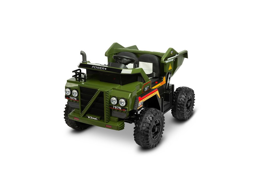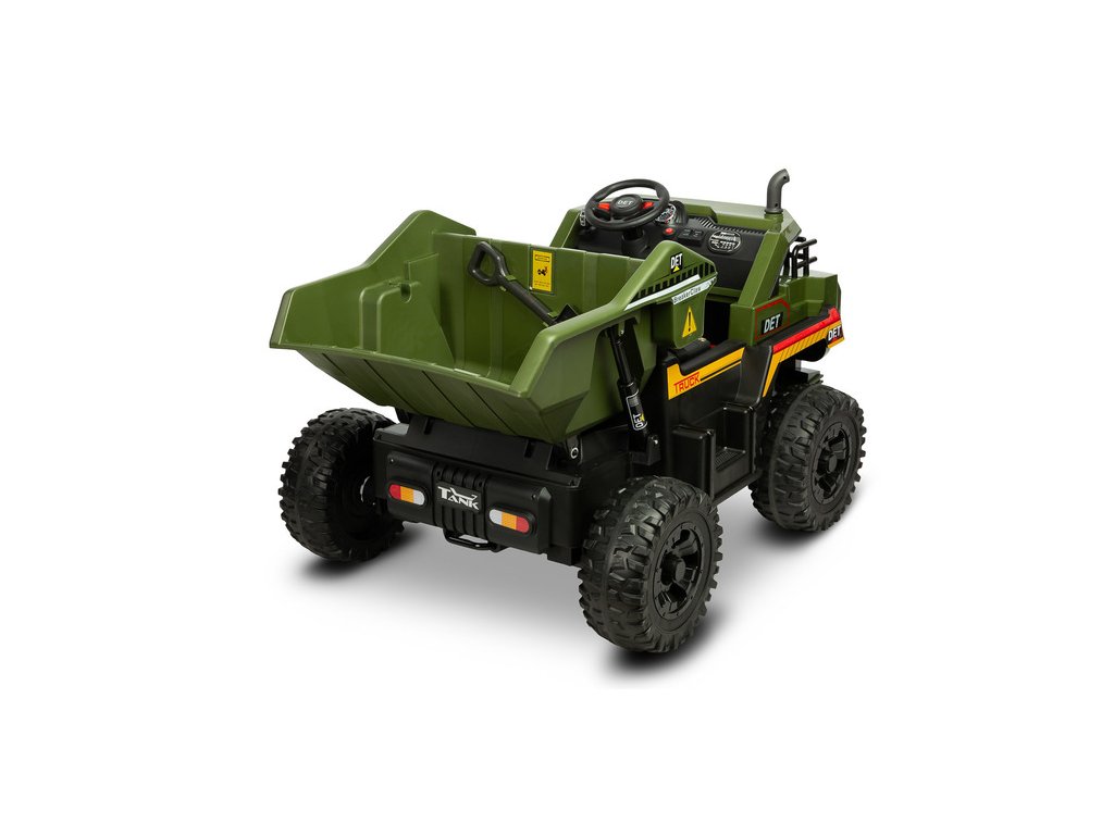Tank to pojazd na akumulator, będący wywrotką z prawdziwego zdarzenia. Dzięki niemu każde dziecko może przeżyć niezapomnianą przygodę w roli kierowcy wywrotki. Największą frajdę dają duże rozmiary samego pojazdu, odtwarzany przy uruchomieniu dźwięk odpalania potężnego silnika a przede wszystkim elektrycznie opuszczana duża skrzynia ładunkowa. W zestawie znajduje się łopatka, którą można załadować kiper. Zabawę dodatkowo umili panel multimedialny z bluetooth. Terenowe koła z wysokiej jakości pianki EVA oraz 4 mocne silniki pozwalają na jazdę z obciążeniem po trudnym terenie. Komfort jazdy zapewni podwójne siedzisko z ekoskóry oraz przednie i tylne amortyzatory. Pojazd posiada 2 prędkości poruszania się i bieg wsteczny. Bezpieczeństwo zabawy zapewnia wolny start, automatyczny hamulec i biodrowe pasy bezpieczeństwa. Wywrotką może sterować również rodzic przy pomocy pilota zdalnego sterowania.