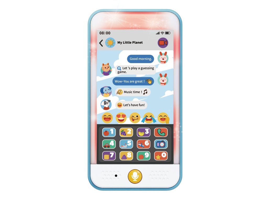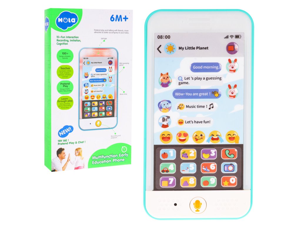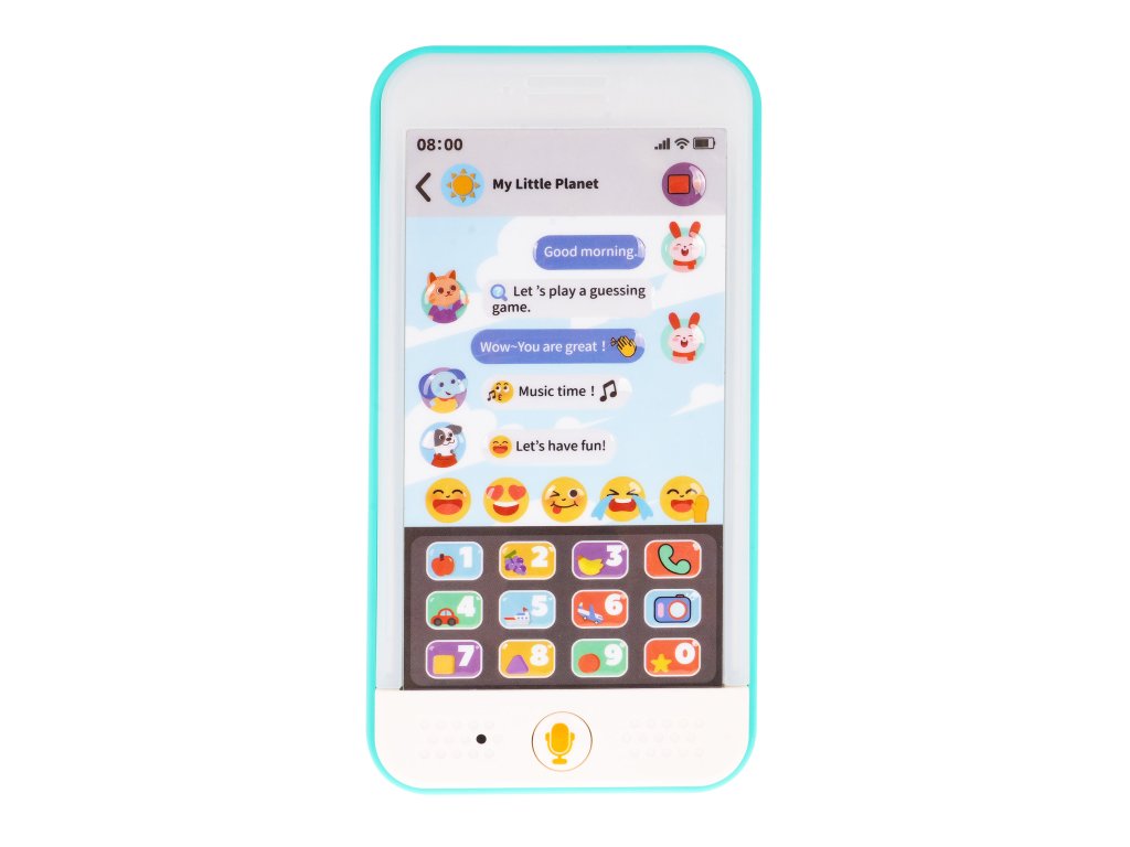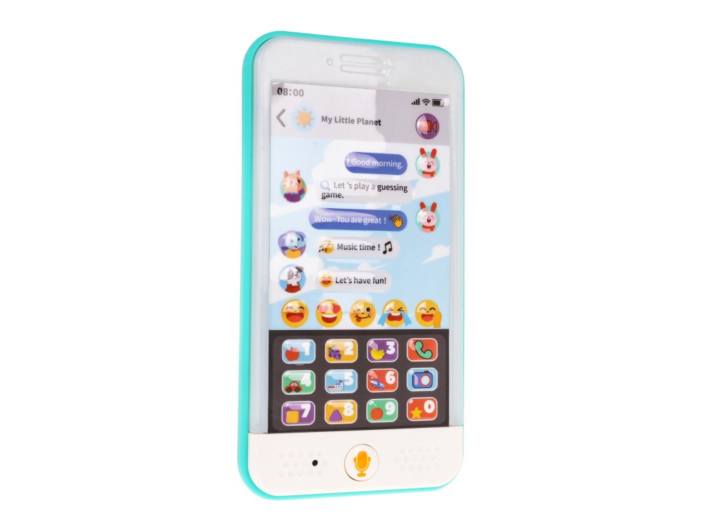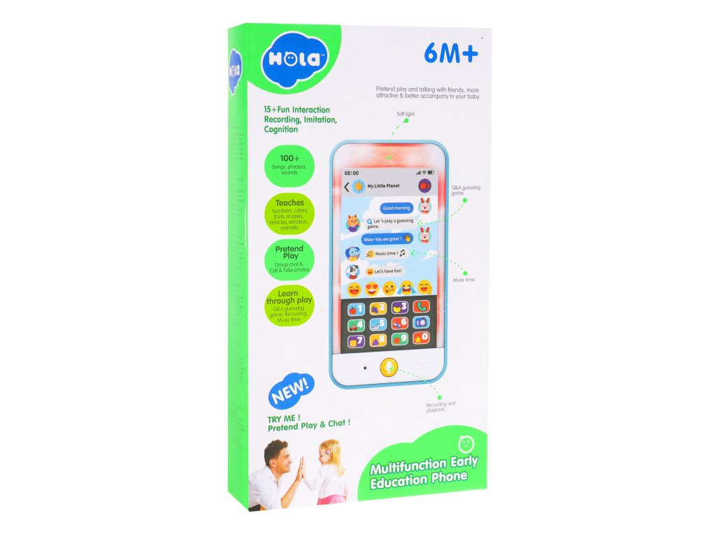 Interactive, multifunctional, baby-safe smartphone for children from 6 months of age. The smartphone is made of the best quality plastic and has no small parts or sharp edges. The toy has a volume control and works in two modes - question and answer and discovery mode. In question and answer mode, the toy will ask the child to find the correct button with a fruit, shape or number. He rewards the correct answer with a happy sound and the incorrect one with a mistake sound and encourages you to try again. In discovery mode, your child can pretend to play, chat, call, take photos and listen to music. When you press any button on the top of the tablet, the red LED flashes. The phone is made of durable, unbreakable material. Subtitles and sounds are in English. The toy is powered by 3 x AAA batteries, batteries are not included. Panel with buttons: - camera button - video call sound effects, - "Good morning" button - greeting in English, - "Let's play a guessing game" button - asking questions, asking to find the right button, - "Wow You are great" button - praise and applause, - "Music time" button - various cheerful melodies, - "Let's have fun" button - sounds of laughter, - emoticon buttons - sounds of laughter, crying, greetings, I love you, - buttons with animals - animal sounds, - numeric keyboard – teaches numbers 0-9, colors, shapes, names of fruits and objects, - handset button – various sounds of a ringing phone, - camera button - shutter sounds, - button with microphone – recording and playback approx. 15 seconds. Toy features: - blinking red LED on the top of the tablet, - volume control, - ability to record and play back (approx. 15 seconds), - two game modes (question and answer and discovery), - 100 background music, phrases and sounds, - teaches to recognize numbers, colors, shapes, vehicles, animals, - allows you to express emotions. |
