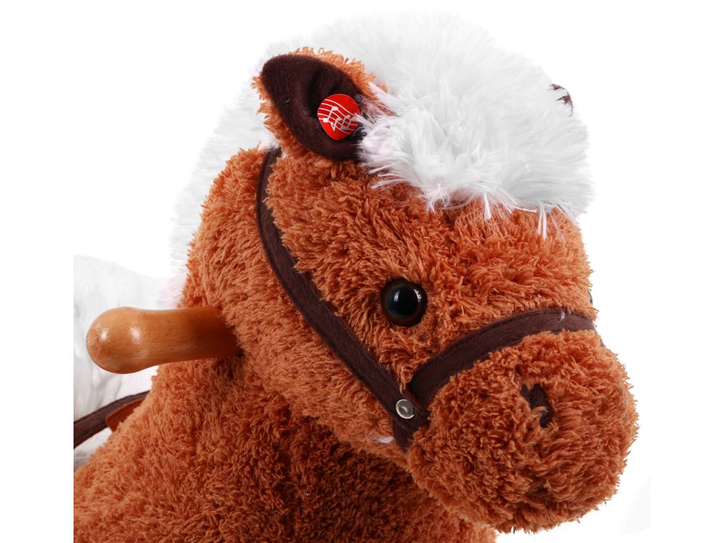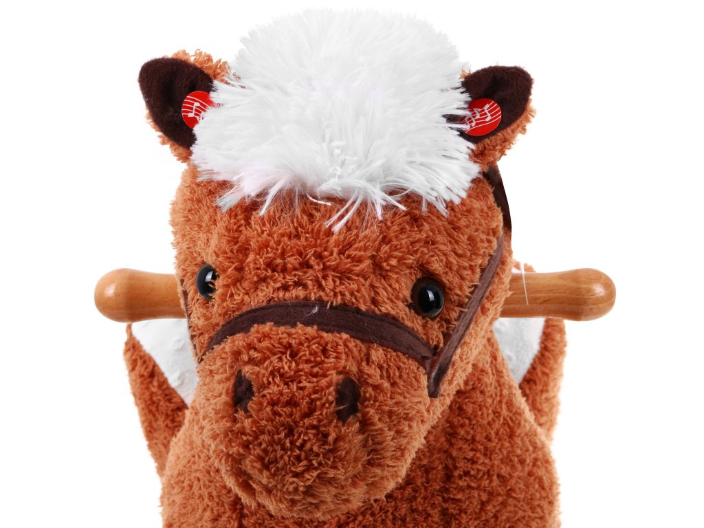 | The toy was made of very soft plush, very nice to the touch. An additional advantage is comfortable support and straps that allow for safe play. In the right ear of the tailstock there is a sensor, which when pressed triggers the sounds of a galloping horse and neigh, these sounds make the game more exciting. The intensity of sounds has been properly adapted to listening by the youngest children. Presented little horse for children is a great gift for the most demanding child, will bring a lot of joy and provide an unforgettable experience. His amazing, beautiful eyes encourage everyone to play. The horse additionally has wooden handles allowing for safe play. The toy is intended for children over 1 year and has a CE certificate. |