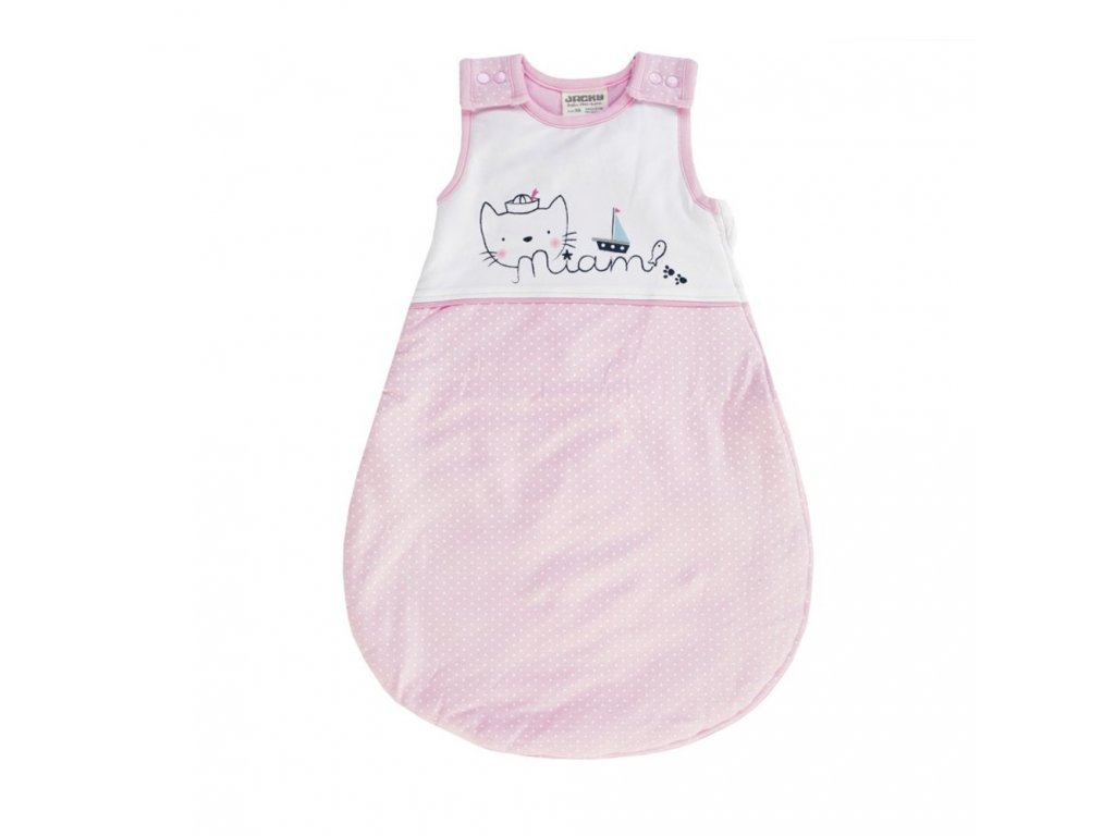 Letní spací pytel s kočičkou pro lepší spaní. Díky dostatečnému prostoru se miminko vyspí do růžova.