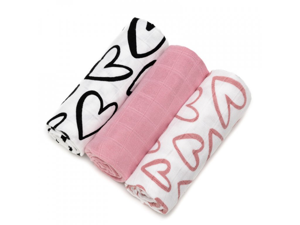 T-TOMI Pleny bambusové BIO 70x70 cm, 3 ks, Black hearts