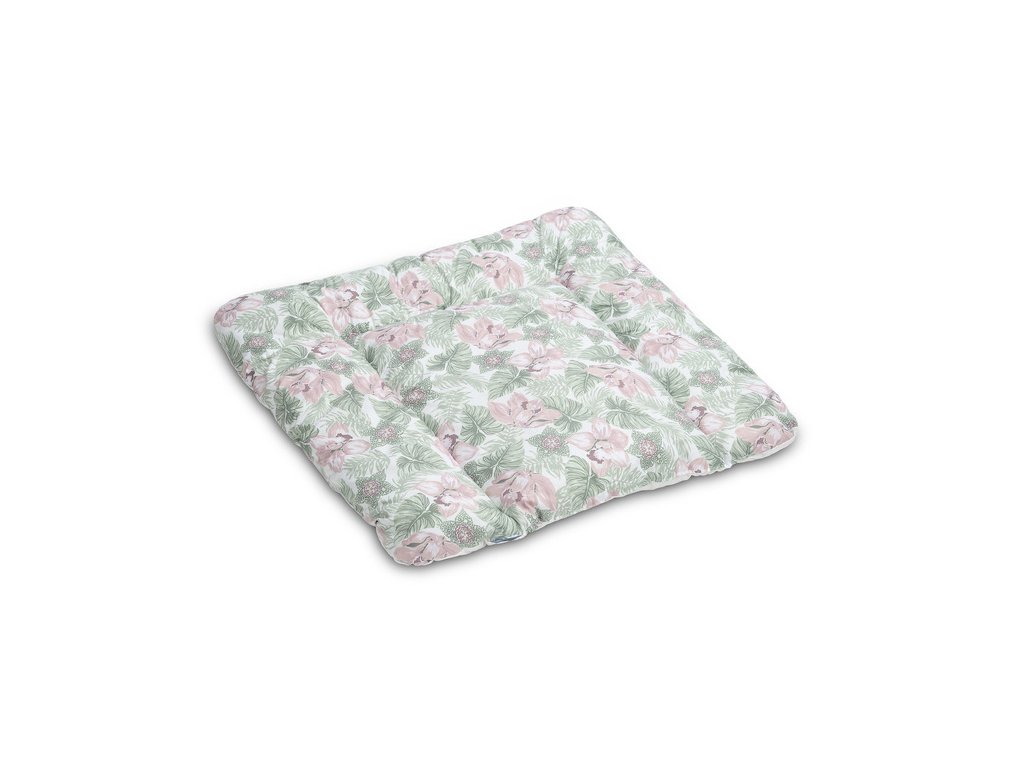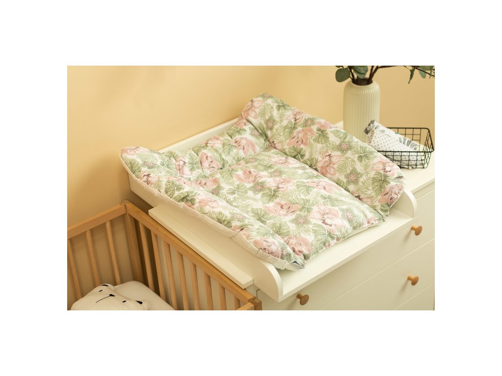 Tapicerka na komodę pozwala na wygodne i bezpieczne przewijanie dziecka. Górną warstwę stanowi wysokiej jakości bawełna, dzięki czemu nie podrażnia skóry a dziecko nie ma odczucia chłodu. Dolną warstwę stanowi nieprzemakalna folia. Jest ona w pełni bezpieczna dla zdrowia dziecka – nie zawiera ftalanów, metali ciężkich oraz innych szkodliwych substancji. W środku znajduje się miękkie poliestrowe wypełnienie, które zapewnia komfort podczas codziennej pielęgnacji. Tapicerka posiada uniwersalne rozmiary 75x70 cm, dzięki czemu pasuje do większości komód i nadstawek do przewijania.