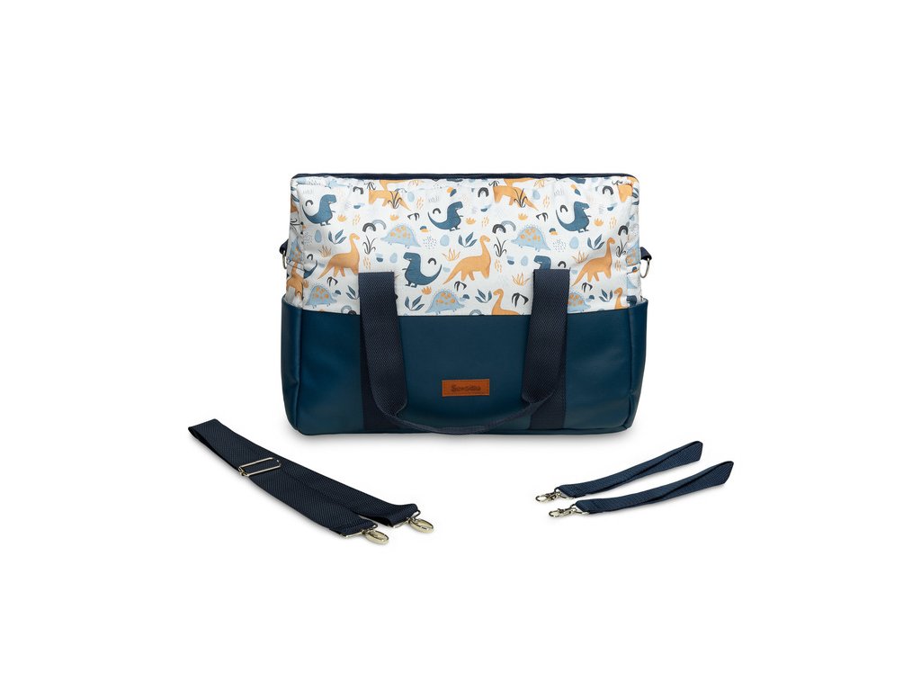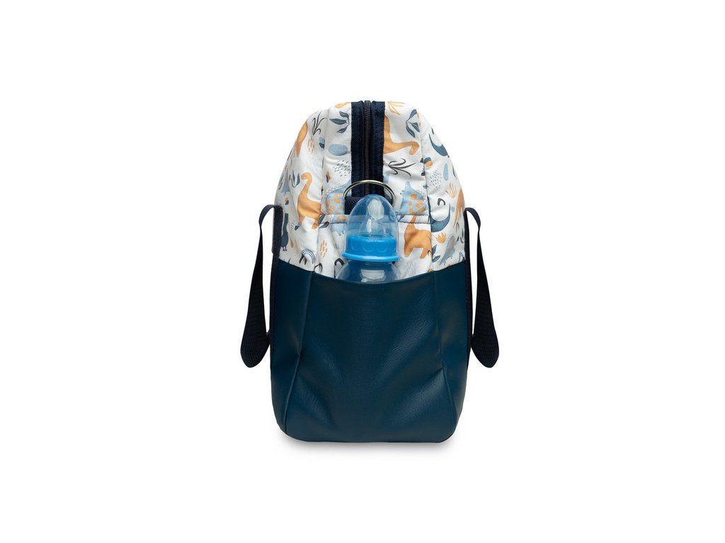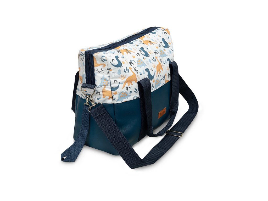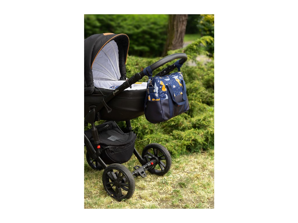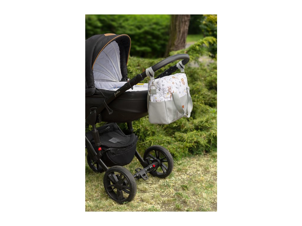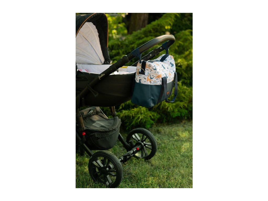 Taška z eko kůže je ideální nejen pro kočárek. Má mnoho výhod, jako jsou: dno z ekologické kůže, vnitřní kapsy, funkční přihrádky a podšívka odolná proti nečistotám. Na druhou stranu, barevná bavlna s potiskem dělá tašku fit moderní kočárky. Kromě toho je taška vybavena kovovým kováním, univerzálními háčky pro zavěšení na rám a praktickým ramenním popruhem. Bude k dispozici v 5 provedeních.