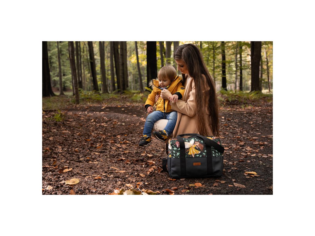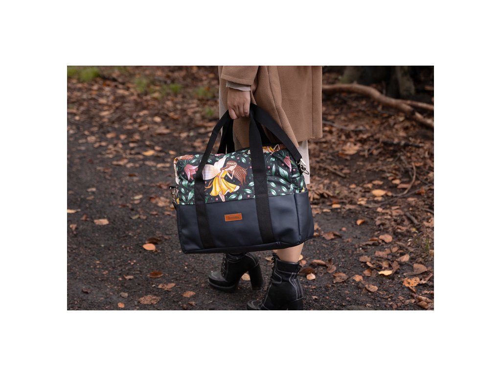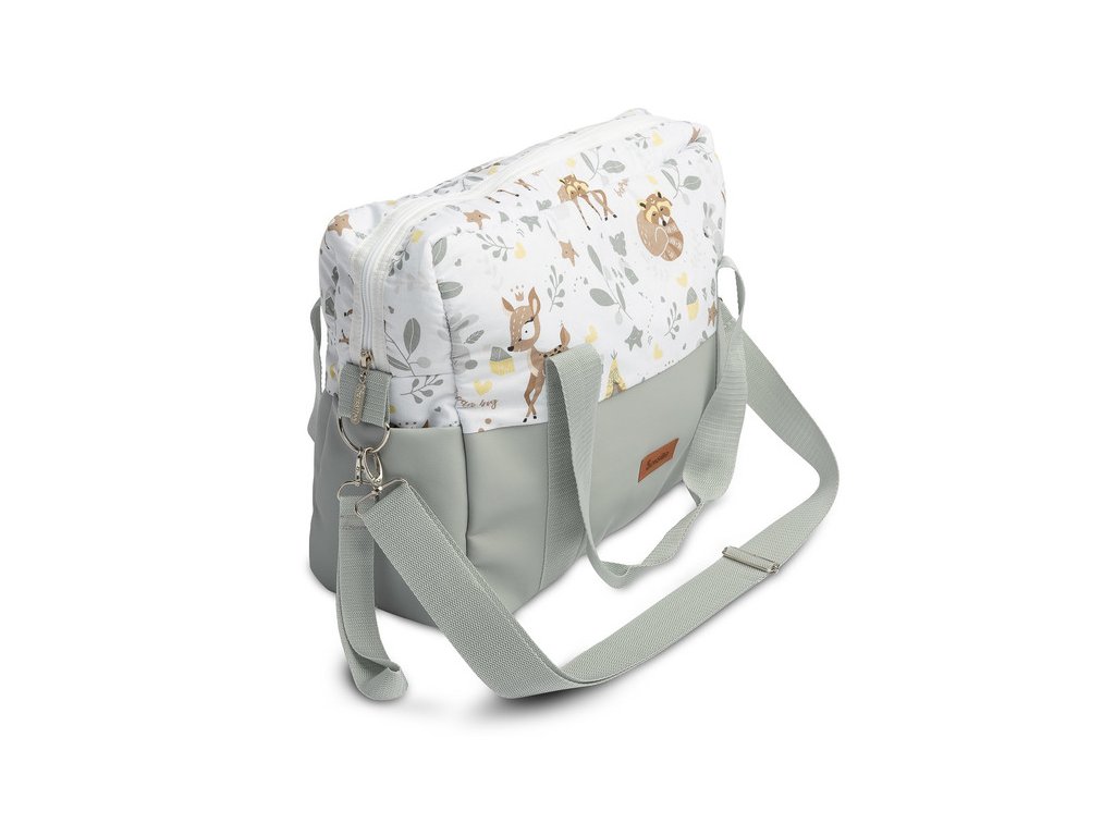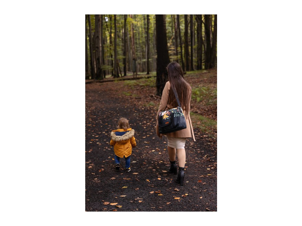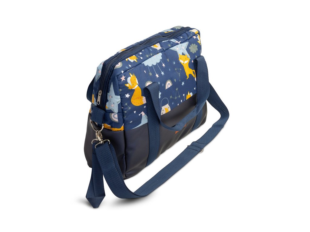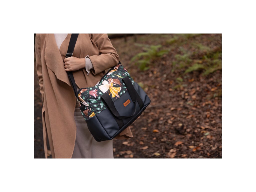 Taška z eko kůže je ideální nejen pro kočárek. Má mnoho výhod, jako jsou: dno z ekologické kůže, vnitřní kapsy, funkční přihrádky a podšívka odolná proti nečistotám. Na druhou stranu, barevná bavlna s potiskem dělá tašku fit moderní kočárky. Kromě toho je taška vybavena kovovým kováním, univerzálními háčky pro zavěšení na rám a praktickým ramenním popruhem. Bude k dispozici v 5 provedeních.