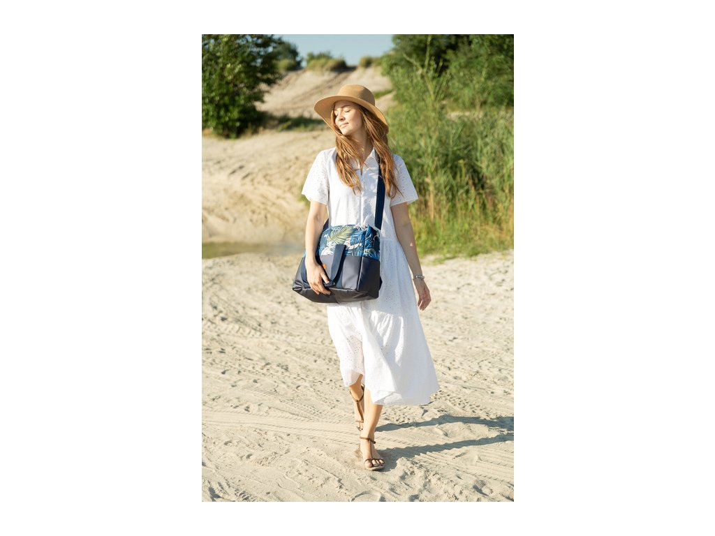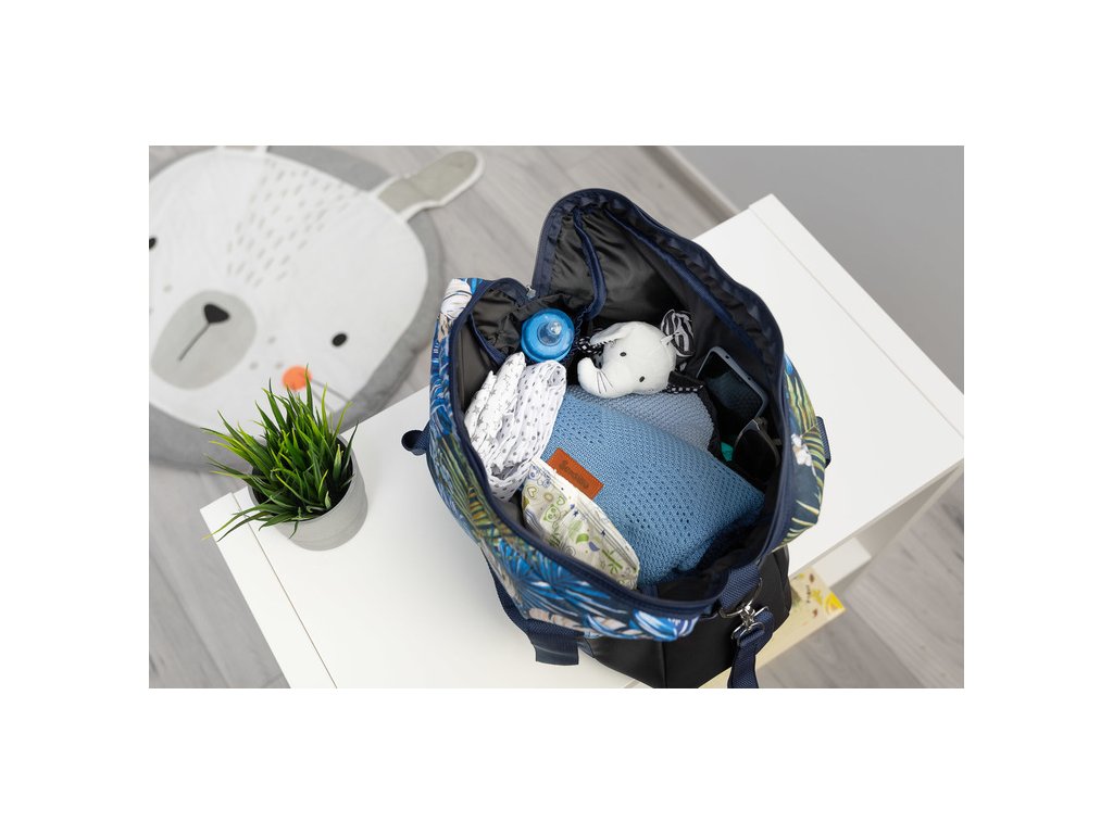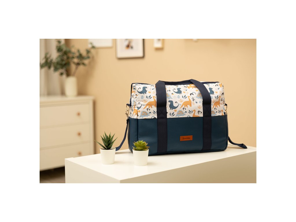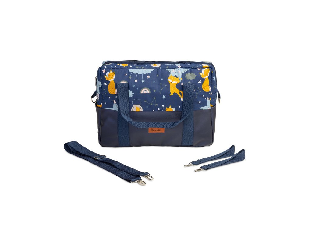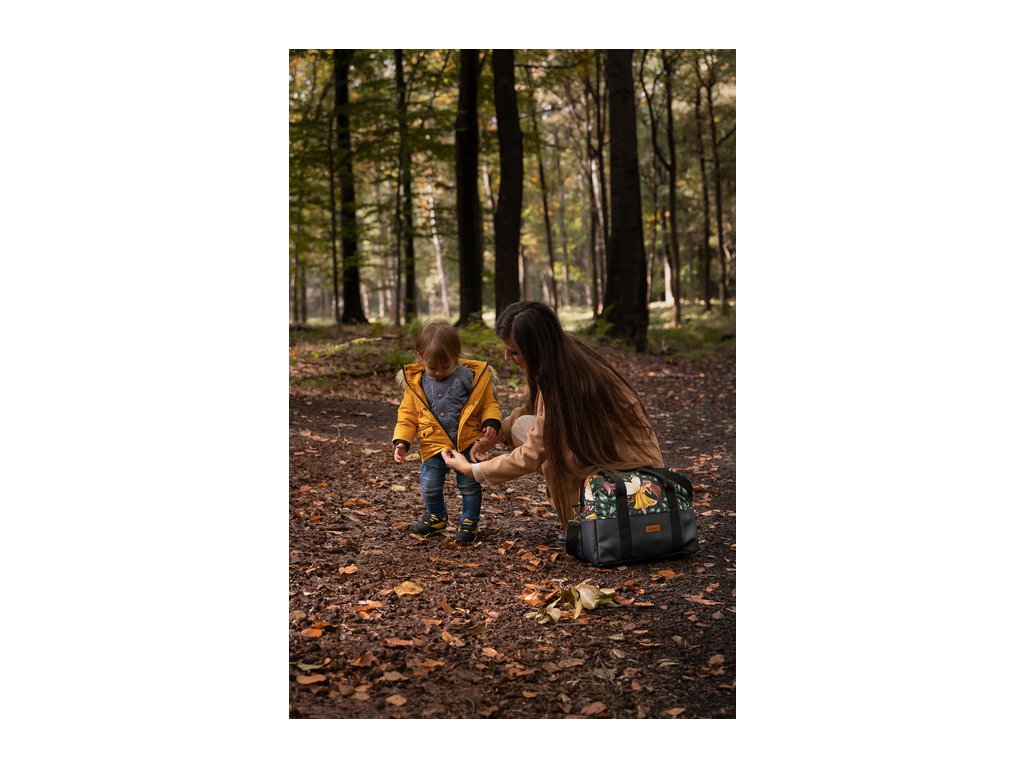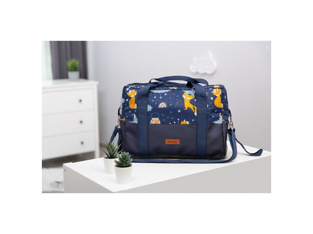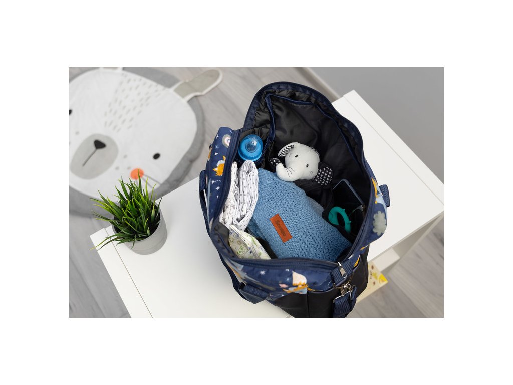 Taška z eko kůže je ideální nejen pro kočárek. Má mnoho výhod, jako jsou: dno z ekologické kůže, vnitřní kapsy, funkční přihrádky a podšívka odolná proti nečistotám. Na druhou stranu, barevná bavlna s potiskem dělá tašku fit moderní kočárky. Kromě toho je taška vybavena kovovým kováním, univerzálními háčky pro zavěšení na rám a praktickým ramenním popruhem. Bude k dispozici v 5 provedeních.