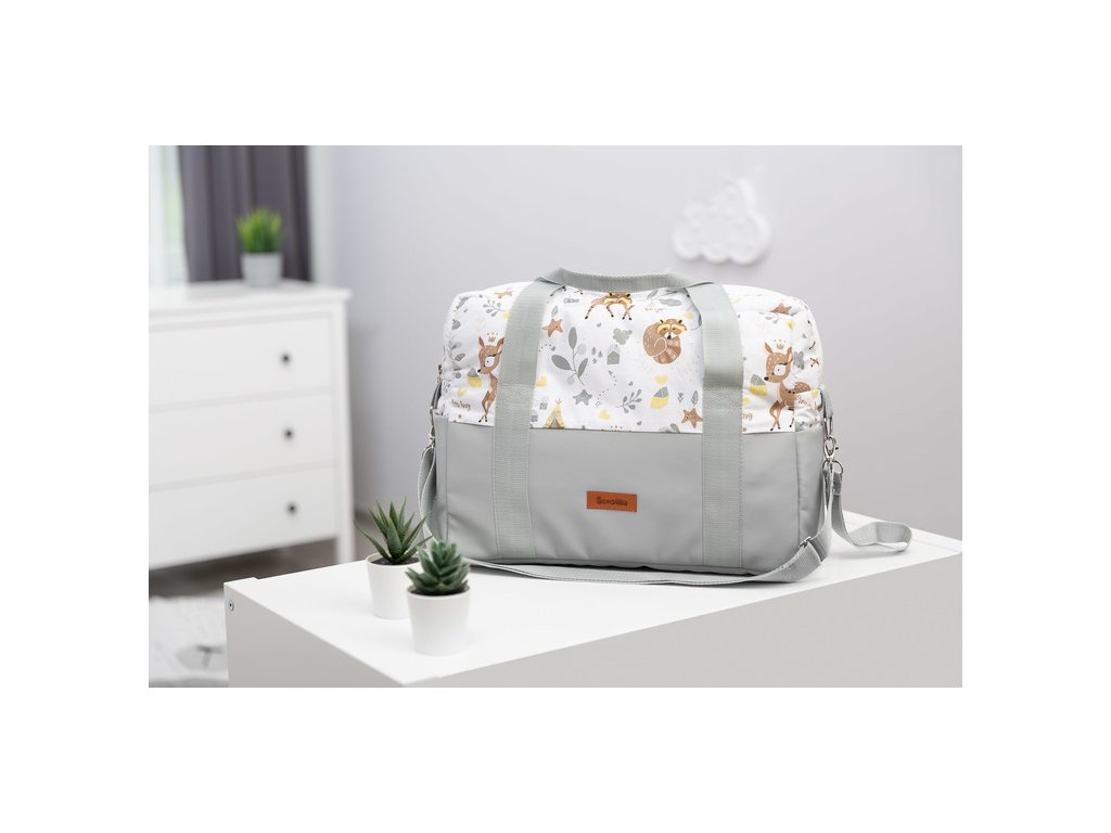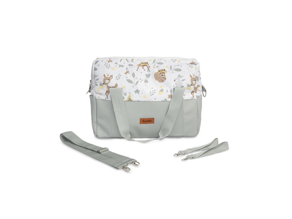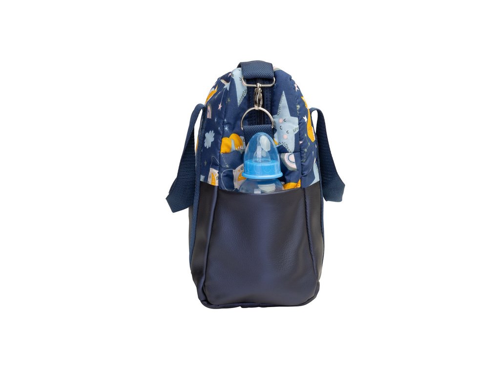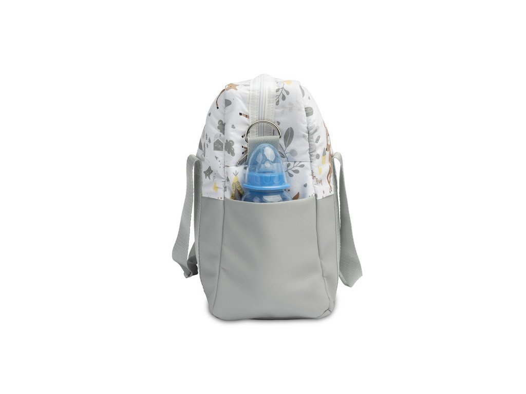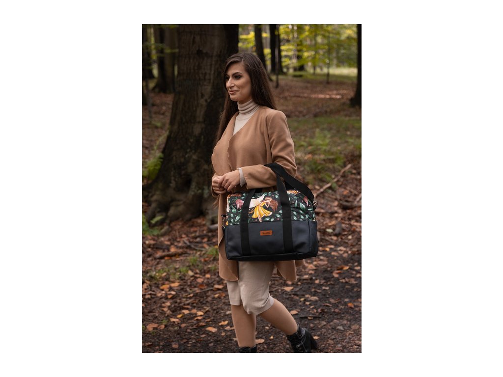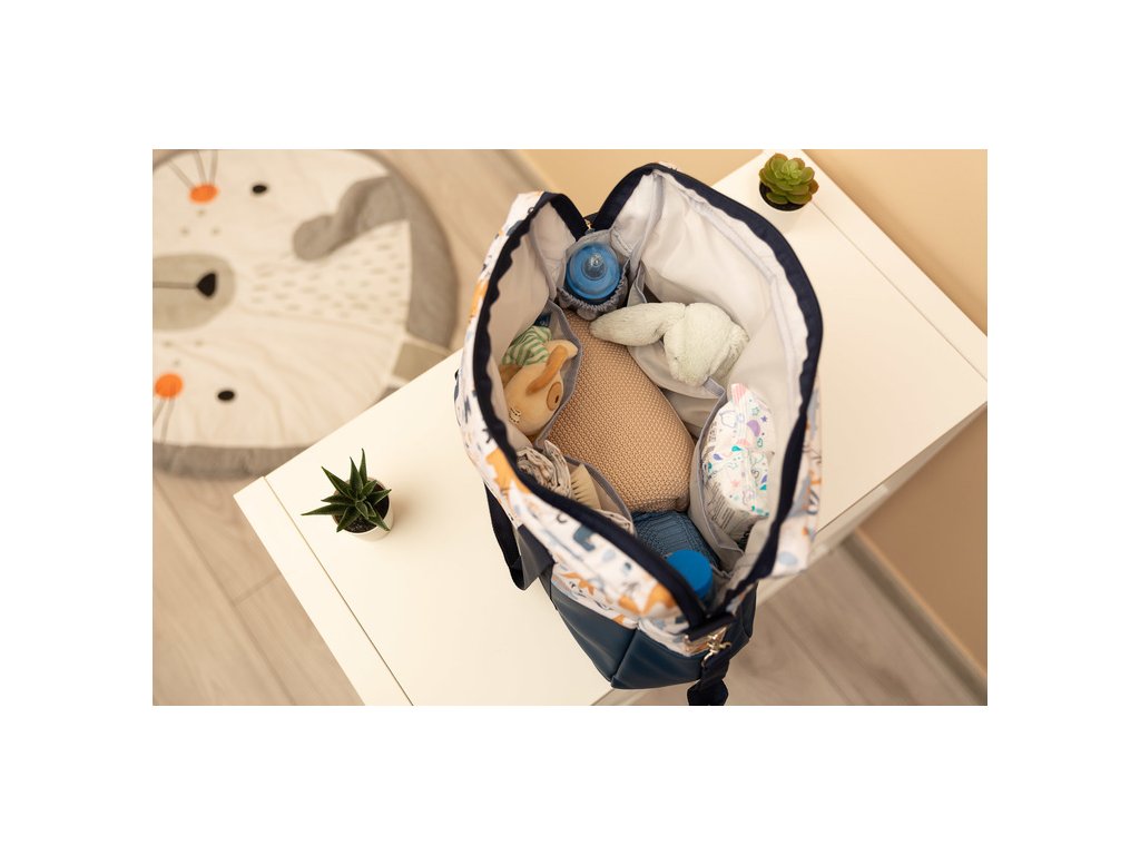 Taška z eko kůže je ideální nejen pro kočárek. Má mnoho výhod, jako jsou: dno z ekologické kůže, vnitřní kapsy, funkční přihrádky a podšívka odolná proti nečistotám. Na druhou stranu, barevná bavlna s potiskem dělá tašku fit moderní kočárky. Kromě toho je taška vybavena kovovým kováním, univerzálními háčky pro zavěšení na rám a praktickým ramenním popruhem. Bude k dispozici v 5 provedeních.