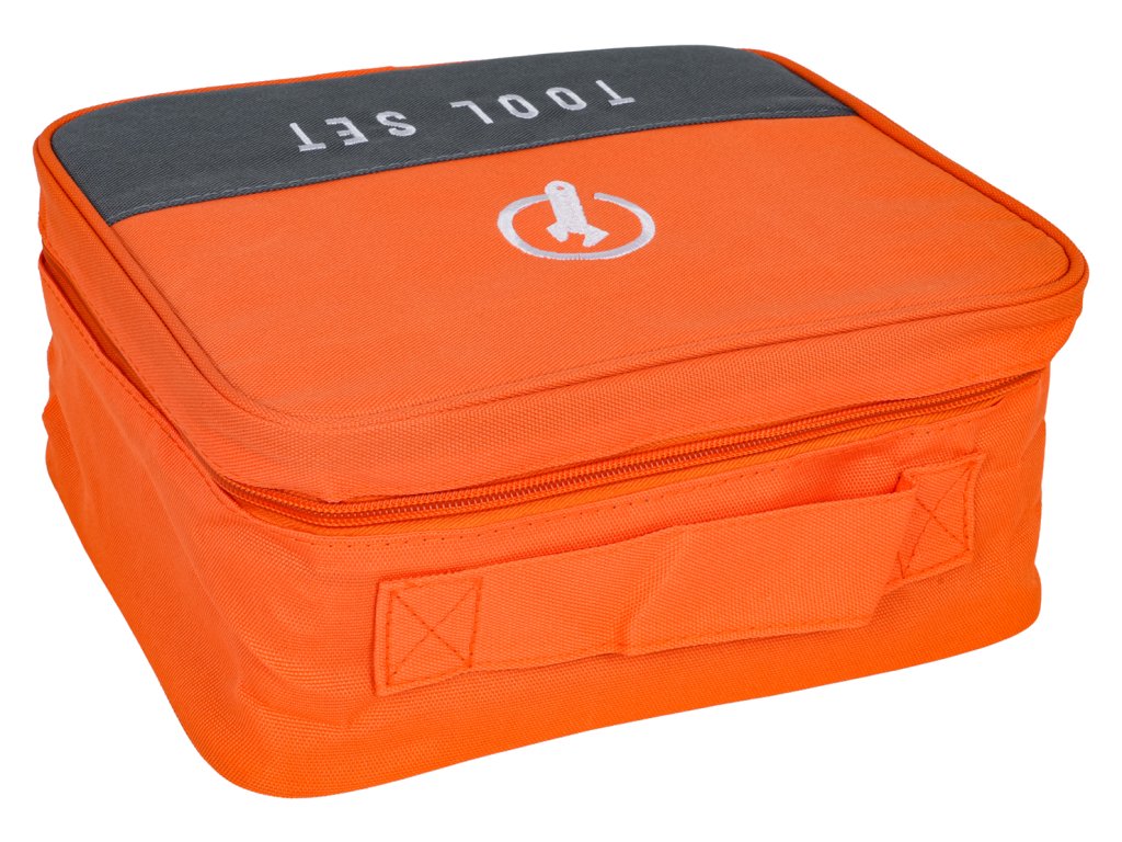 - tool bag approx. 25.5 cm x 21.5 cm x 11.5 cm, - grinder approx. 27 cm x 12.5 cm x 7 cm, - adjustable wrench approx. 20 cm x 5.5 cm x 2 cm, - screwdriver approx. 14 cm x 16 cm x 5 cm, - safety glasses approx. 13 cm x 6.5 cm x 4 cm, - screws approx. 3.5 cm long, - packaging approx. 27 cm x 22 cm x 11.5 cm. |
