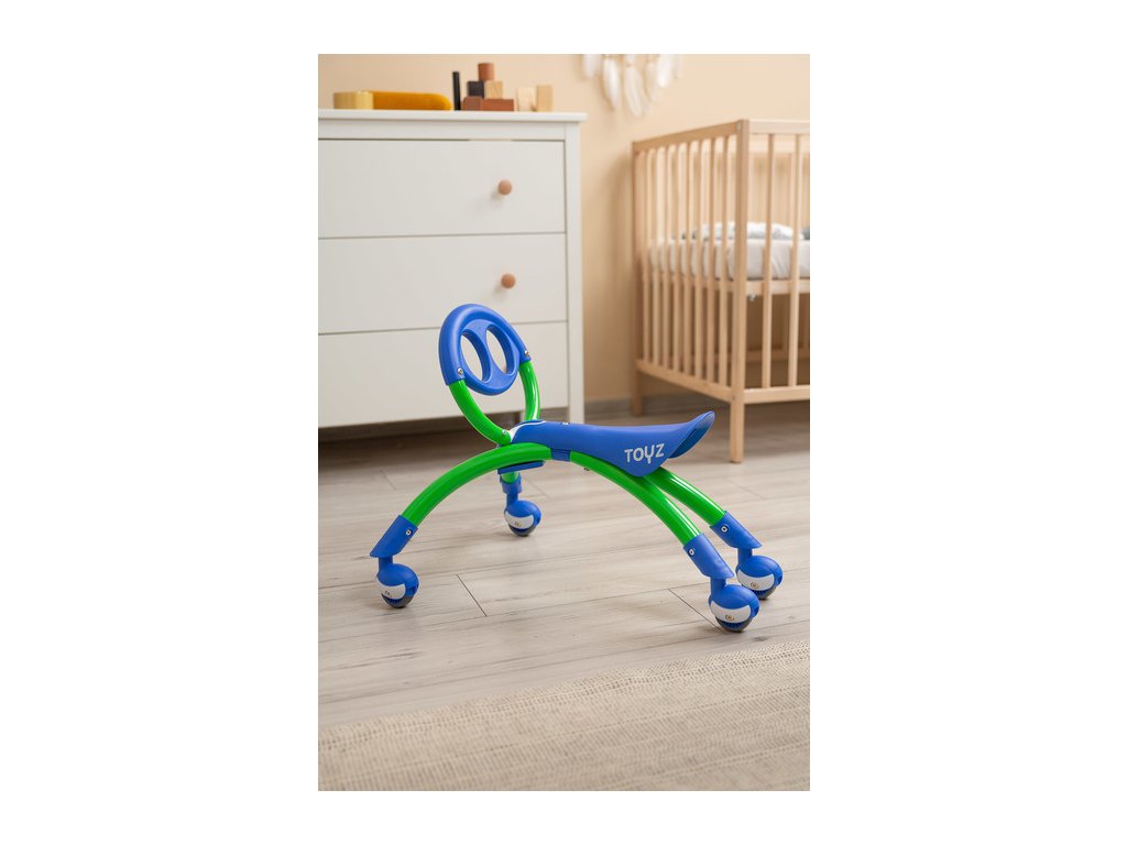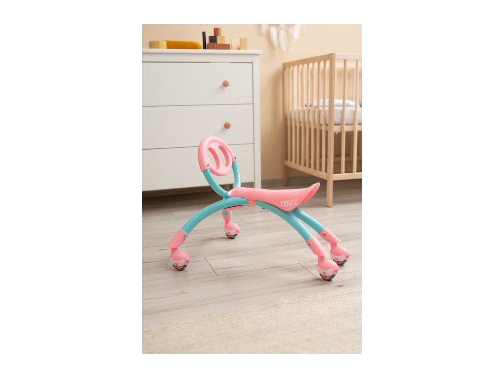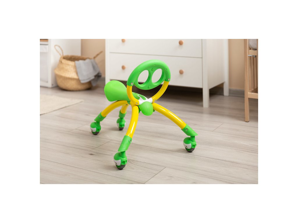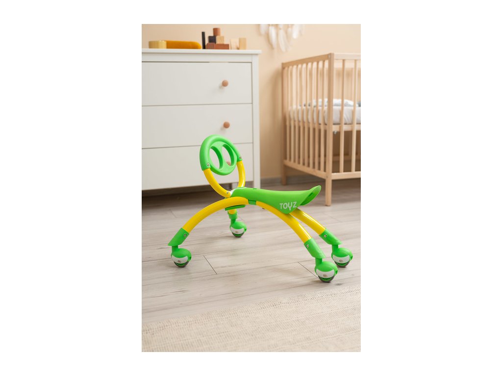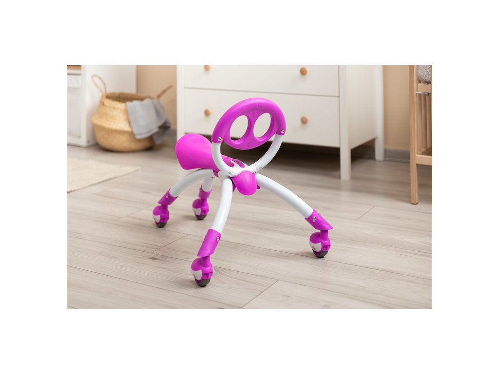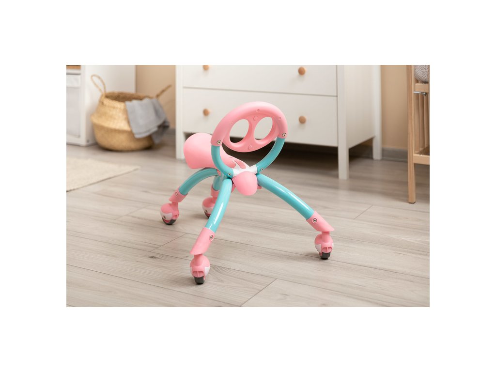 - Hračka 2 v 1, která podporuje vývoj – tlačná funkce (pro dítě ve věku 9-12 měsíců) a jezdec (pro dítě ve věku 12 až 36 měsíců)