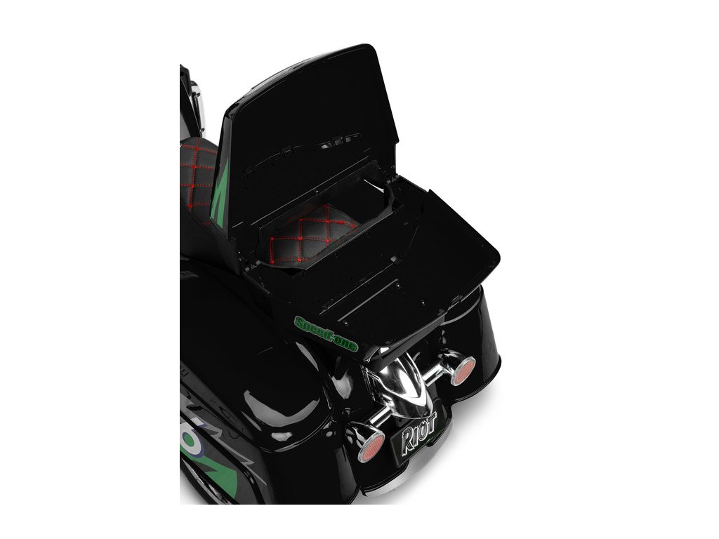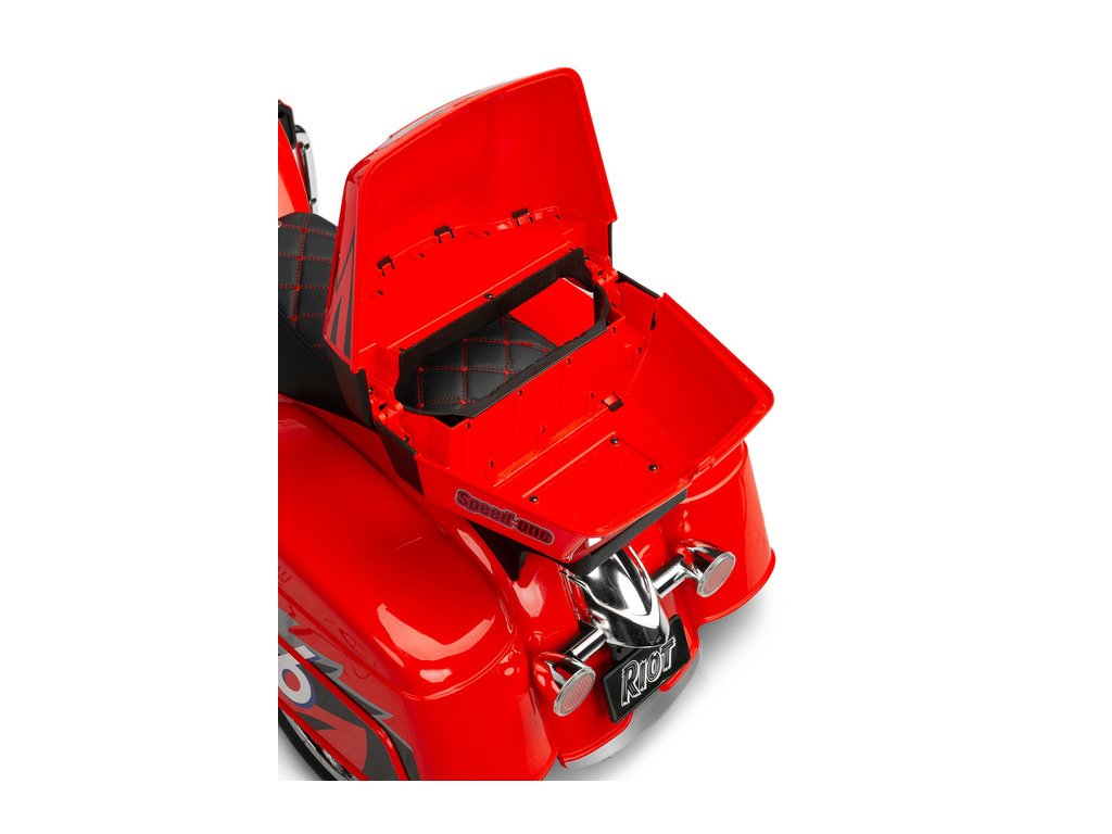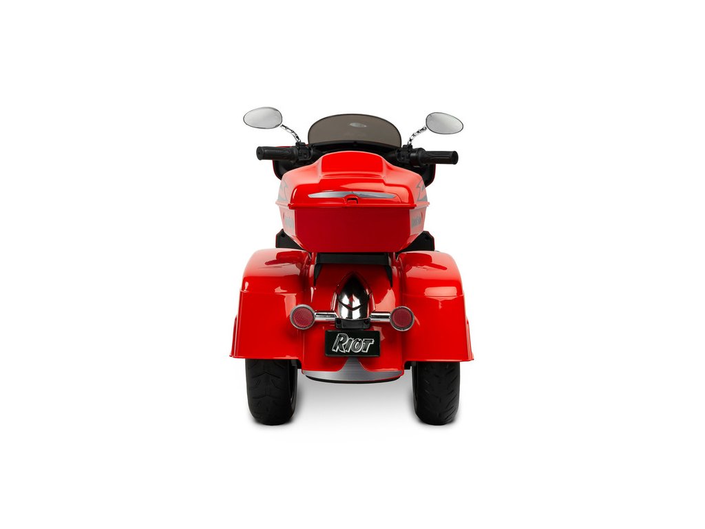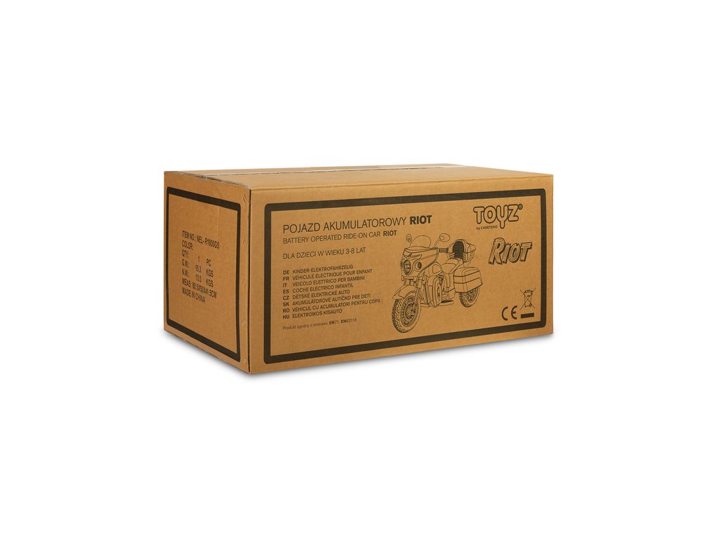 Riot je unikátní tříkolová motorka od společnosti Toyz, díky které budou moci děti zažít motocyklové dobrodružství. Stejně jako u skutečného motocyklu má Riot snadno ovladatelný plyn v řídítkách a brzdový pedál. Jízdní komfort zaručují pevná kola z EVA pěny, pohodlné sedadlo z ekokůže a multimediální panel s Bluetooth. K dispozici je také tlačítko klaksonu v multimediálním panelu a tlačítko pro zapnutí sirén v policejním modelu.