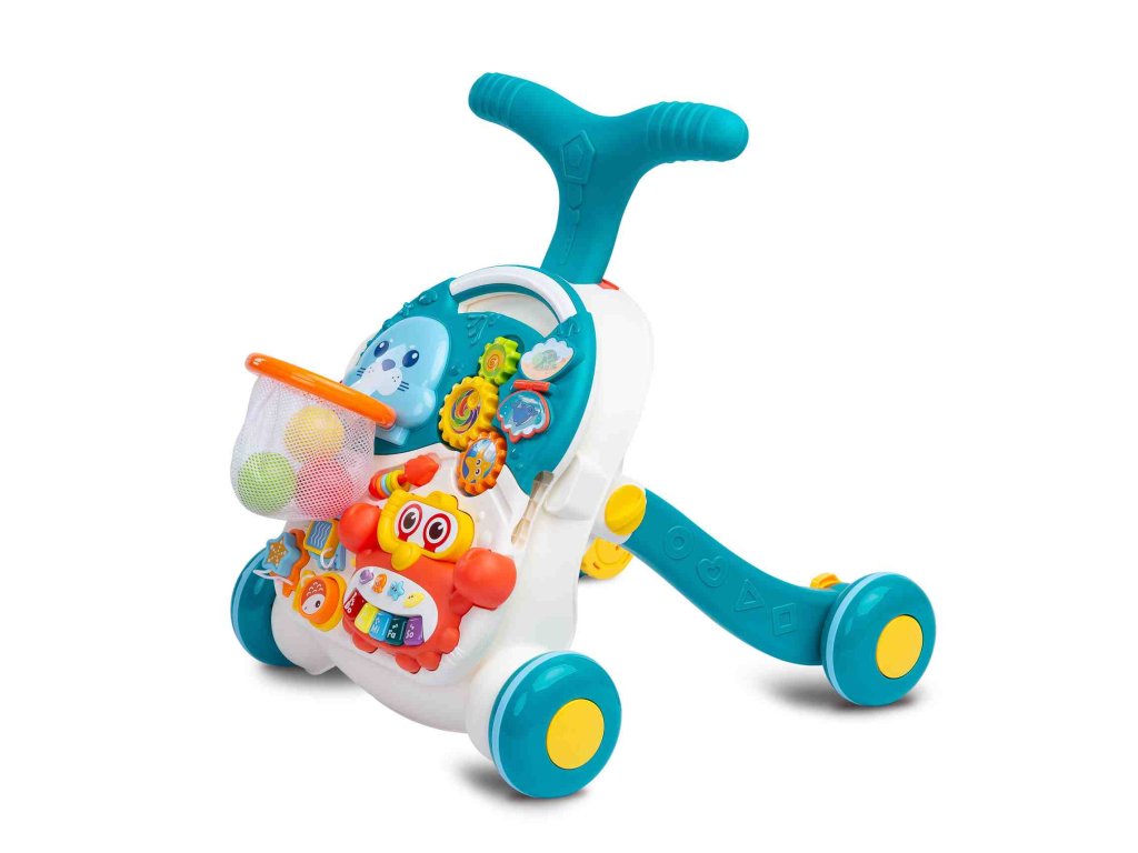 Spark je vzdělávací hračka z řady TOYZ Activity, ideální pro dítě, které již začalo dělat první krůčky. Díky kombinaci více možností v jedné hračce zabaví batole na mnoho hodin. Může fungovat jako odstrkovadlo nebo interaktivní stůl se spoustou atrakcí. Čas zábavy zpříjemní koš, do kterého může házet 3 plastové míčky s chrastítkem, bateriové a výsuvné piano ve tvaru kraba, točící se ozubená kola a mnoho dalších překvapení. Přední panel lze sejmout a proměnit v hrací stolek.Nejdůležitější vlastnosti: