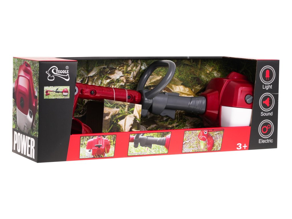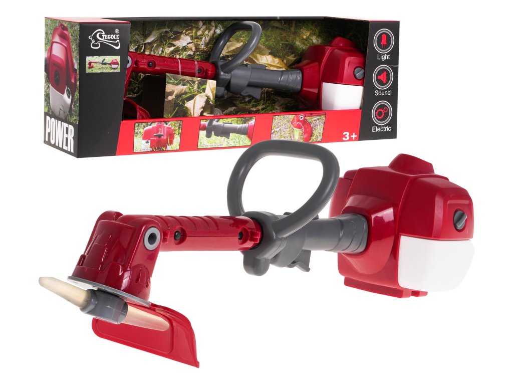 An interactive trimmer with sound and light effects is intended for children from 3 years of age. The toy is powered by 3 x AA 1.5 V batteries, batteries are not included. The trimmer is made of the highest quality materials and has no sharp edges or elements that could hurt a child. The blade is rubber, rounded and has an additional cover. To start playing, pull up the element located at the back of the handle. You will then hear the sound of the engine starting and running. After pressing and holding the button located at the bottom of the telescopic tube, you will hear a sound characteristic of the trimmer's operation and the blade will start spinning, illuminating in green. The telescopic tube on which the blade is mounted has adjustable length and blade angle adjustment. Trimmer features: - sound effects: sound of engine starting, sound of trimmer operation, - lighting effects: illuminated blade, - adjustable length of the telescopic tube, - blade angle adjustment. |