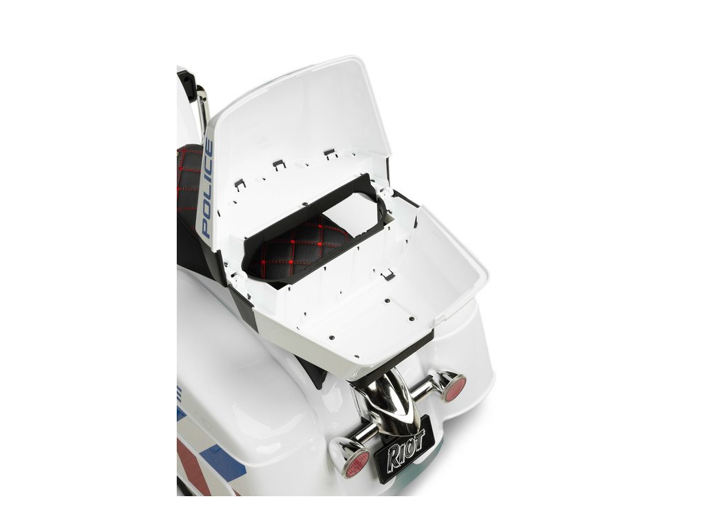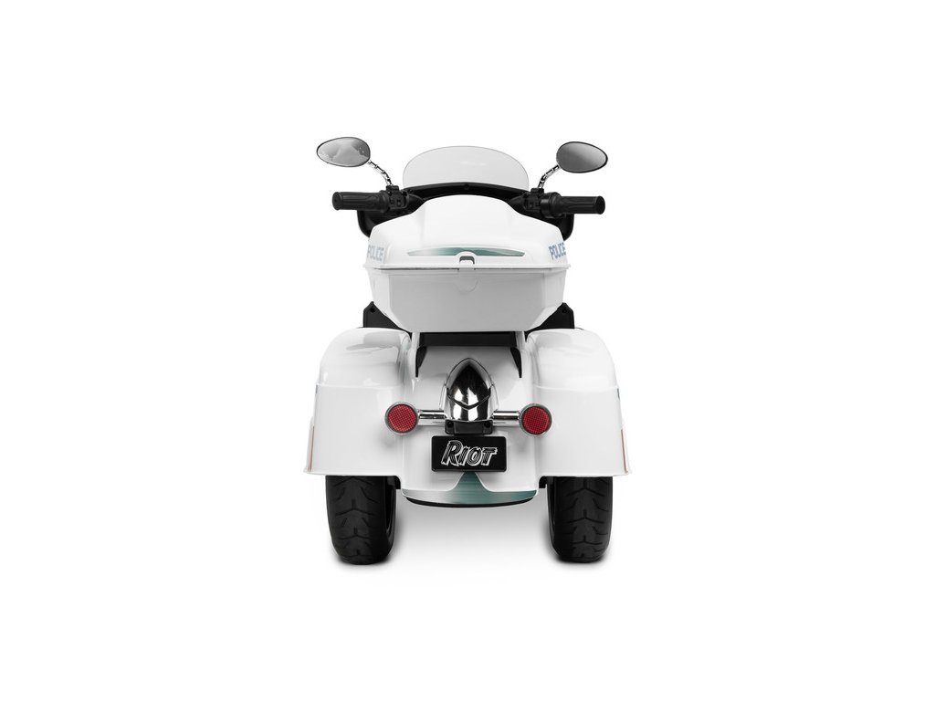 Riot je unikátní tříkolová motorka od společnosti Toyz, díky které budou moci děti zažít motocyklové dobrodružství. Stejně jako u skutečného motocyklu má Riot snadno ovladatelný plyn v řídítkách a brzdový pedál. Jízdní komfort zaručují pevná kola z vysoce kvalitní EVA pěny, pohodlné sedadlo z ekokůže a multimediální panel s Bluetooth. K dispozici je také tlačítko klaksonu v multimediálním panelu a tlačítko pro zapnutí sirén v policejním modelu.