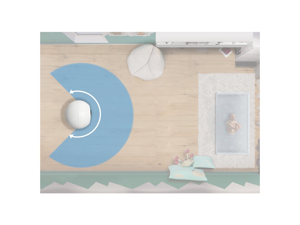 - Adaptivní noční osvětlení, které se přizpůsobuje osvětlení dětského pokoje a ukolébavkám a tichým zvukům hraným přímo z dětského oddělení, které se aktivuje, jakmile je detekován zvuk