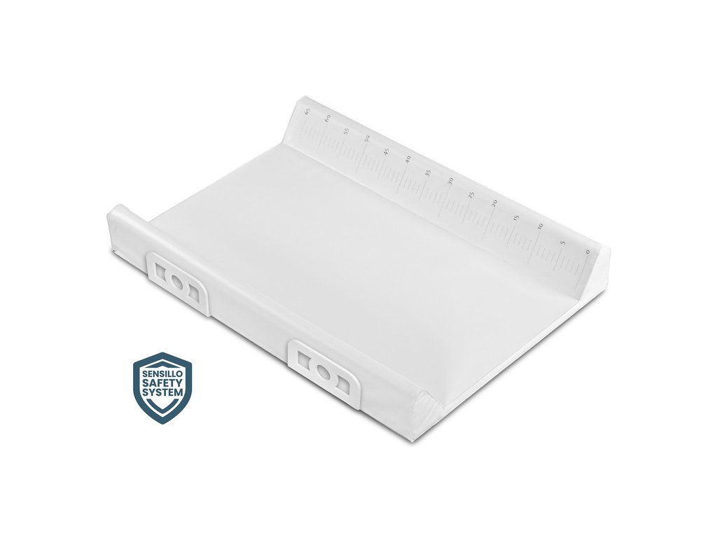 Ztužený přebalovací pult Sensillo byl připraven pro pohodlnou péči o nejmenší. Přiložené nožičky umožňují bezpečnou a stabilní instalaci přímo na 60 cm širokou postýlku. Přebalovací pult lze také připevnit na komodu nebo jinou stabilní půdu. Přebalovací pult se vyznačuje inovativním bezpečnostním systémem Sensillo, který zabraňuje vypadávání dítěte díky dodatečným bočním výztuhám. Pro výrobu jsme použili nejkvalitnější materiály , které zajišťují maximální bezpečnost a komfort používání. Plátno pokryté přebalovacím pultem Sensillo je zcela bezpečné pro zdraví dítěte – neobsahuje ftaláty, těžké kovy a jiné škodlivé látky.