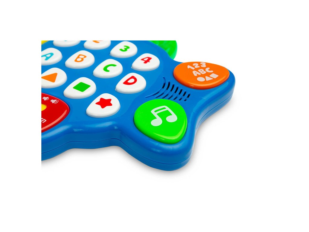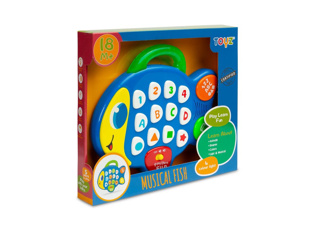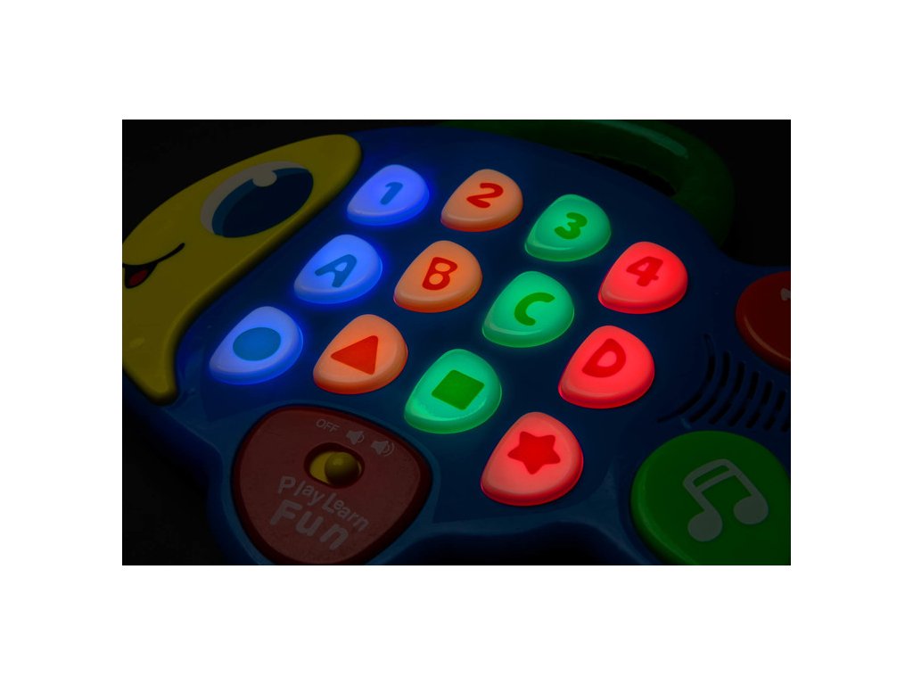 Vzdělávací hračka Muzyczna Rybka od společnosti TOYZ je perfektní hračkou pro nejmenší. Podsvícená klávesnice s barevnými tlačítky vám pomůže naučit se základní tvary, písmena a čísla v angličtině.