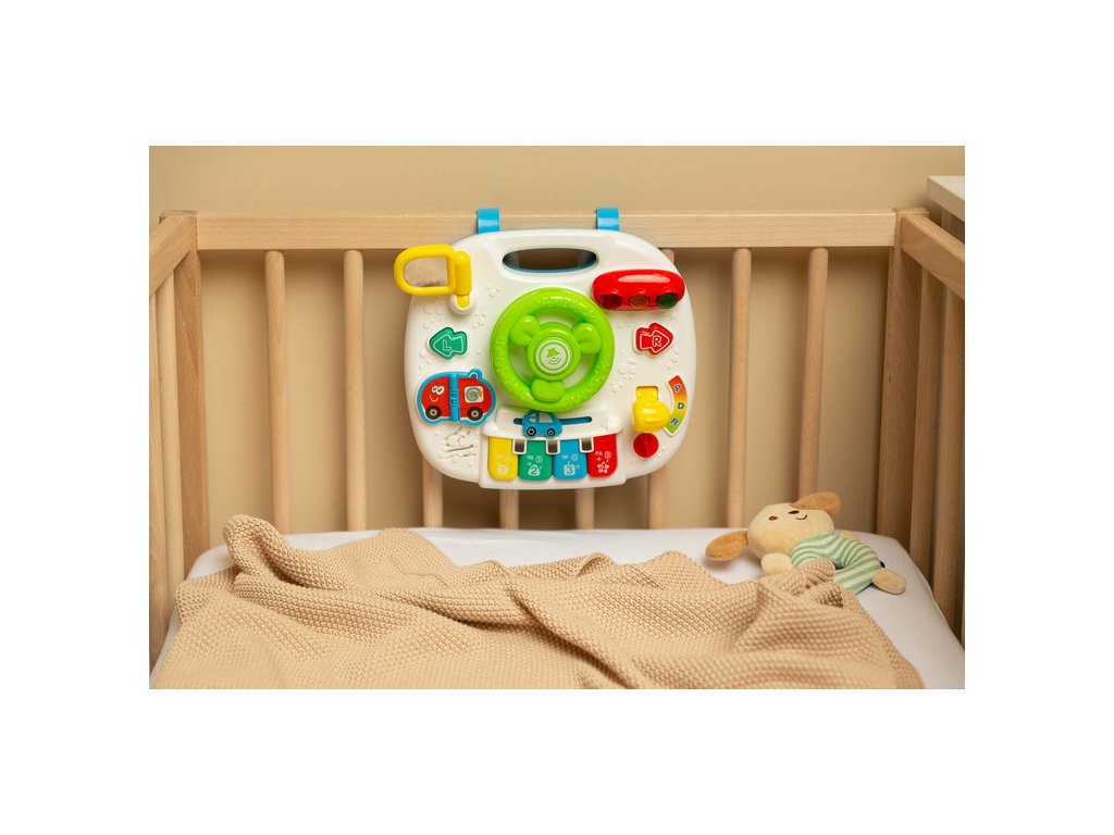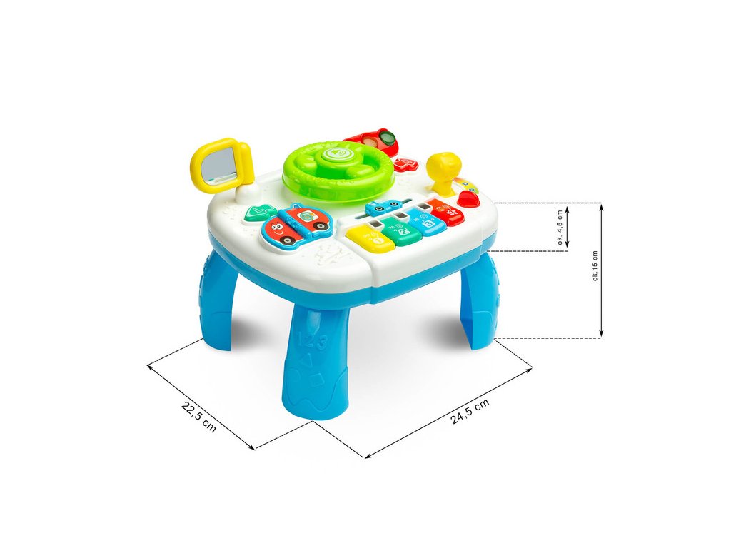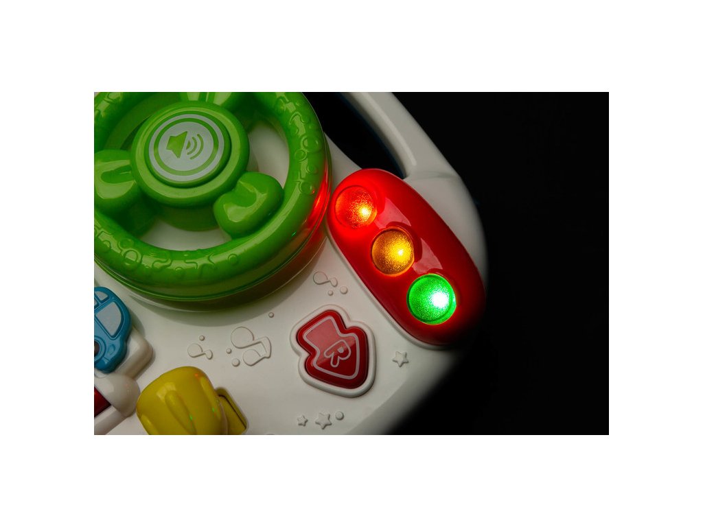 Malý stůl řidiče je nádherná vzdělávací hračka od společnosti TOYZ, která vašemu dítěti poskytne dlouhé hodiny skvělé zábavy. Stůl je vybaven tlačítky a světly, které ladí s reproduktorem, který vytváří příjemné melodie a zvuky vozu.