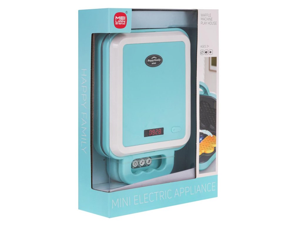 - suitable for children from 3 years of age, - excellently made with attention to detail, - safe for children, - sound effects: sound of frying waffles, sound of frying ending, - light effects: blue backlit panel with function buttons, diodes inside the waffle maker , - looks like the real thing, - imitates baking waffles. |
