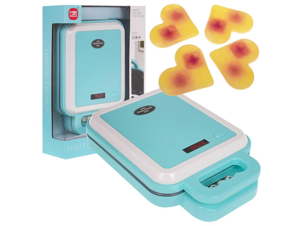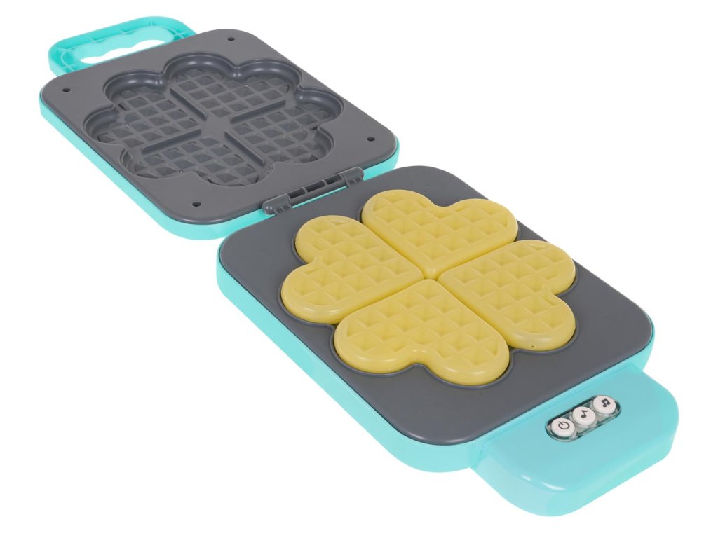 Interactive waffle maker with sound and light effects for children from 3 years of age. The waffle maker looks like a real one and is made of the best quality materials. The set includes 4 heart-shaped waffles. The waffle maker produces a characteristic sound of baking waffles. The waffles change color, becoming increasingly brown, thanks to 4 diodes placed inside, which gently heat them up. The toy is powered by 3 x AA 1.5 V batteries (not included).