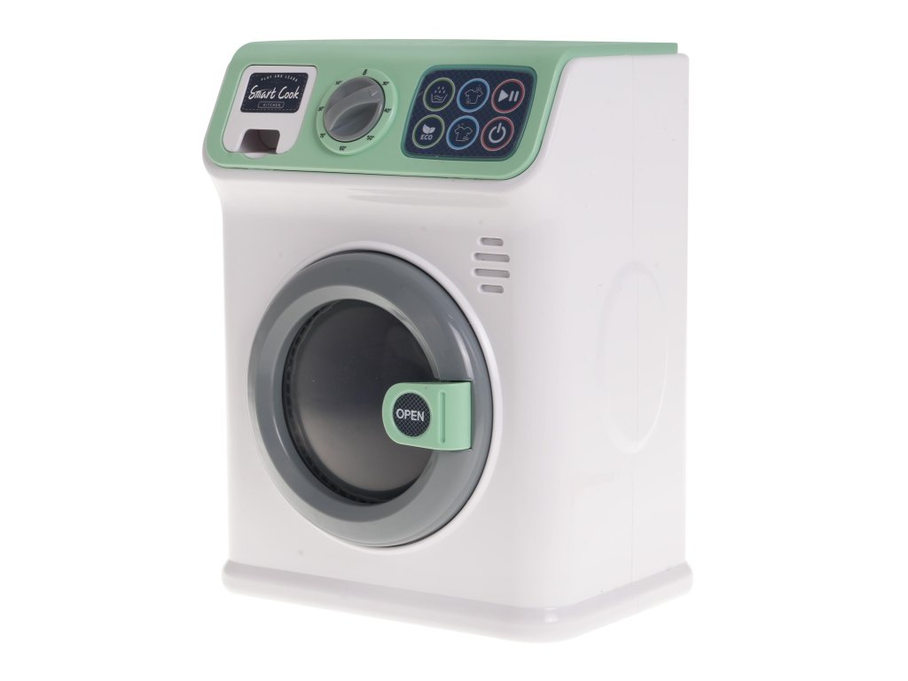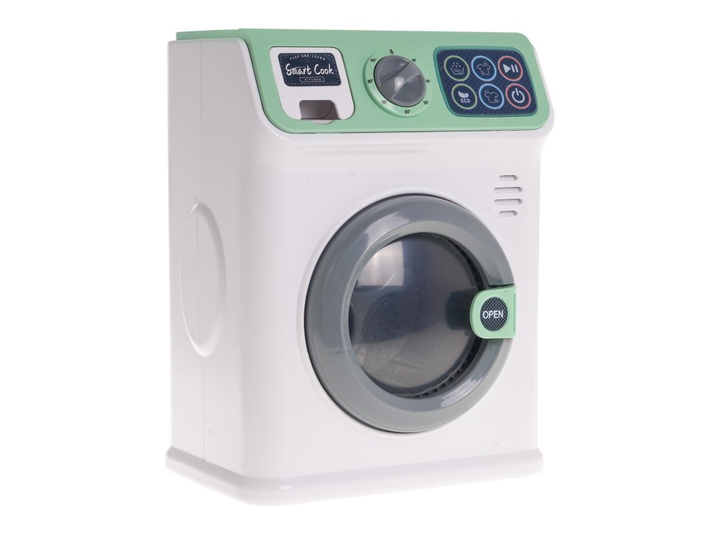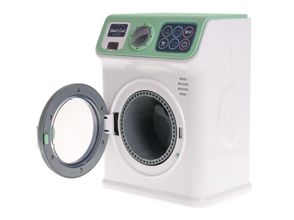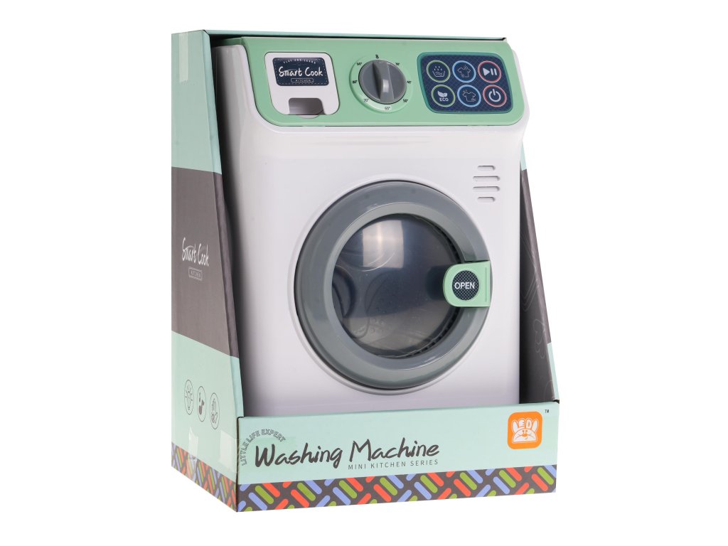 An interactive washing machine with sound and light effects, an opening drum and a detergent drawer is intended for children over 3 years of age. The toy looks and makes sounds just like a real washing machine. It has a backlit touch panel for selecting washing programs and a knob for changing the washing temperature. The toy is powered by 3 x AA 1.5V batteries, batteries are not included. Washing machine features: - illuminated panel with program selection, - sound: water pumping, drum rotation, sound made by the temperature change knob, - touch panel for changing programs, - opening detergent compartment, - opening and rotating drum, - movable knob for changing the temperature. |