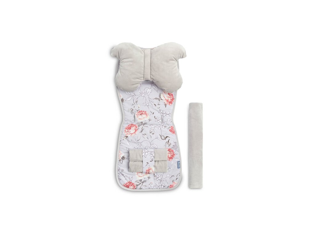 Komplet deluxe składa się z dwustronnej wkładki do wózka, poduszki motylek oraz nakładek na pałąk i pasy. Zarówno wkładka jak i poduszka, z jednej strony obszyte są bawełną 100%, a z drugiej posiadają miły w dotyku materiał. Wkładka jest miękka, ale jednocześnie nie spłyca siedziska. Przeznaczona do wózków spacerowych i głębokich, posiada otwory na pasy dzięki czemu pasuje do każdego wózka. Oprócz pełnienia praktycznej funkcji ochrony przed zabrudzeniami i poprawy komfortu podróżowania, komplet ożywi wnętrze wózka nadając mu wyrazisty charakter.