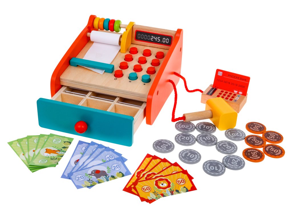 Wooden, safe, toy for children from the age of two. Solidly made, colorful, has rich equipment. By playing with this cash, the child develops creativity, imagination and learns to play various roles. | |