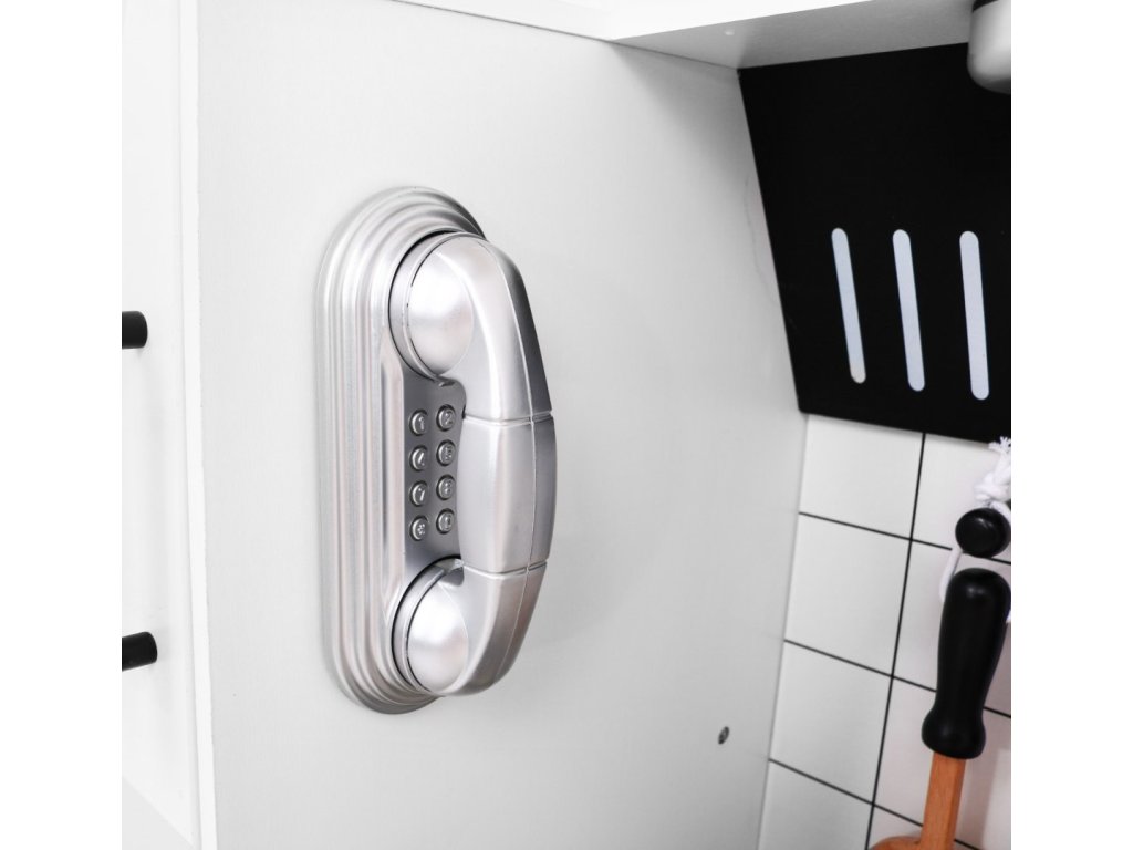 - illuminated hood, - flashing lights on the water dispenser, - illuminated, flashing heating plates, - cooking and frying noises, - sounds of "pouring water" from the dispenser, - opened fridge, - open cooker, - washing machine that can be opened, - opening microwave, - faucet with movable valves, - movable knobs in the oven. | |