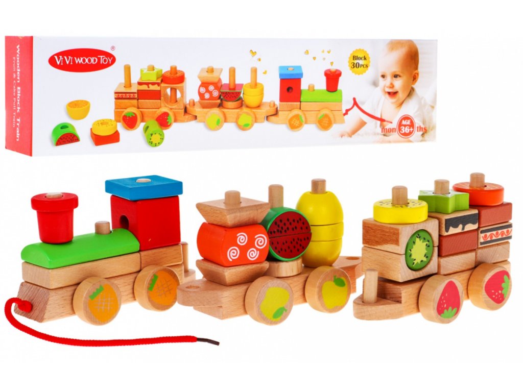 | A wooden locomotive is a toy intended for children from three years of age. The locomotive consists of 30 elements, each element is made of wood painted with safe, non-toxic paints. Playing with the locomotive develops the child's imagination, motor skills and manual skills. |
