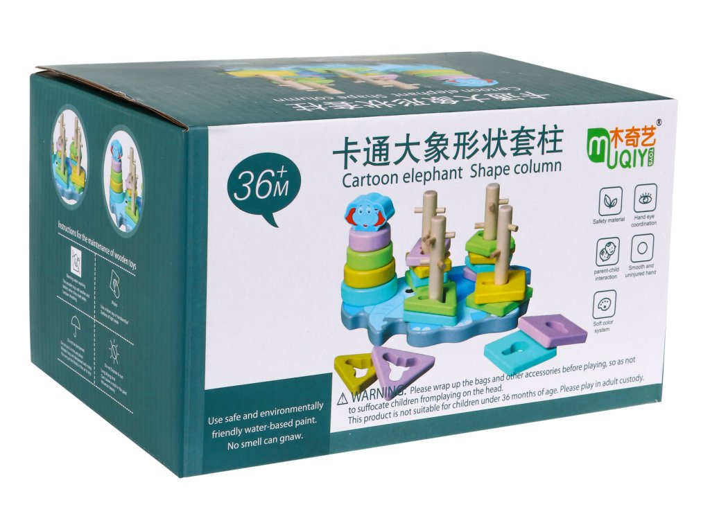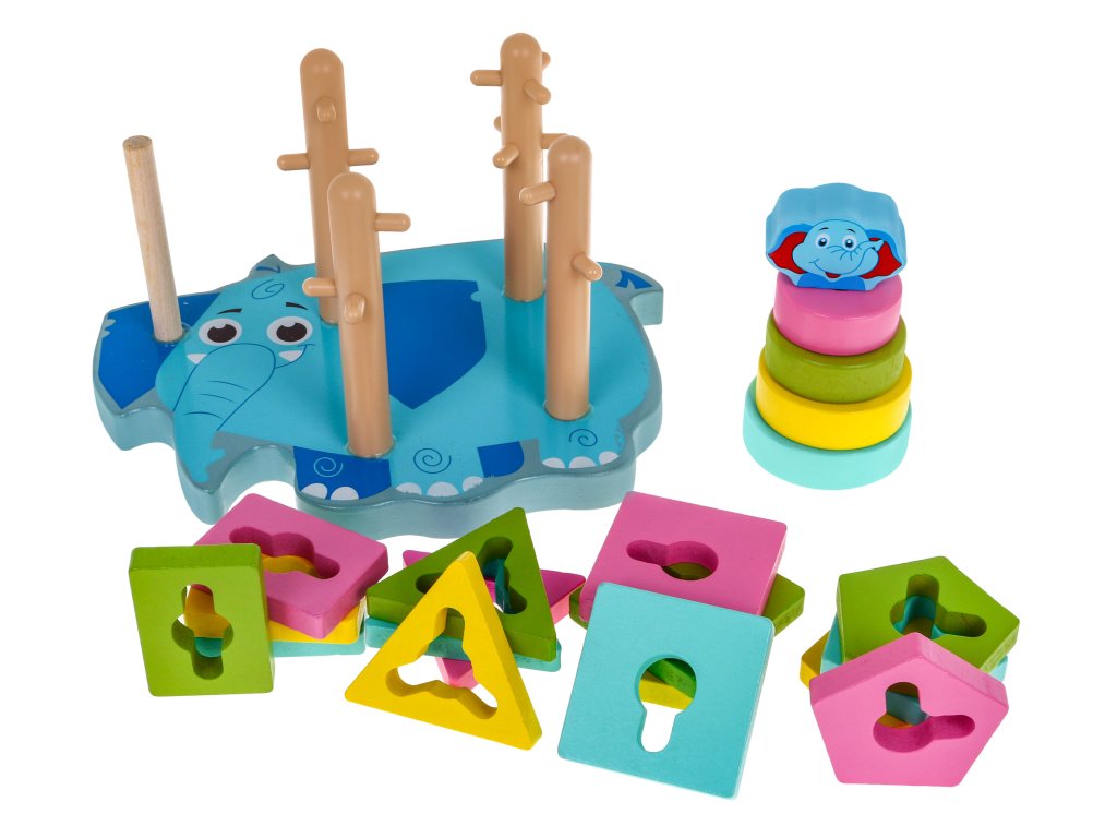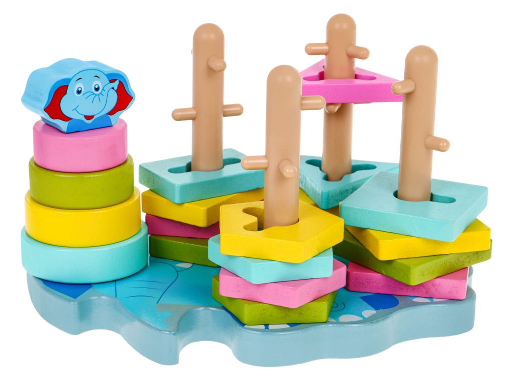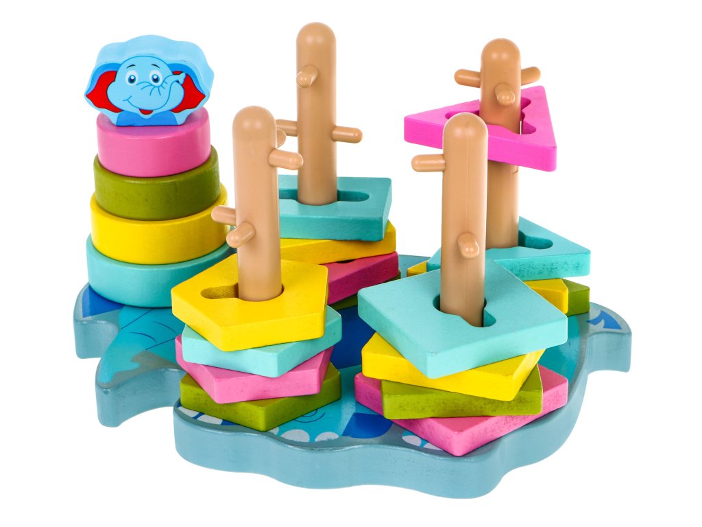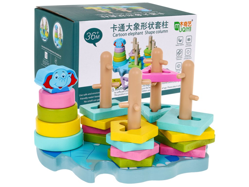 | A safe, colorful, wooden toy for children over 36 months of age. It consists in the assembly and disassembly of the blocks on the pins located on the elephant-shaped base. The pins have protruding elements, which makes the task difficult, because the child must additionally adjust the shape of the block to the pin and then move the block from top to bottom. The toy develops imagination, motor skills, manual skills, exercises small hands, teaches to distinguish colors and shapes. It is made of high-quality wood, painted with safe water-based paint, is durable and resistant to damage, and will last for years. |