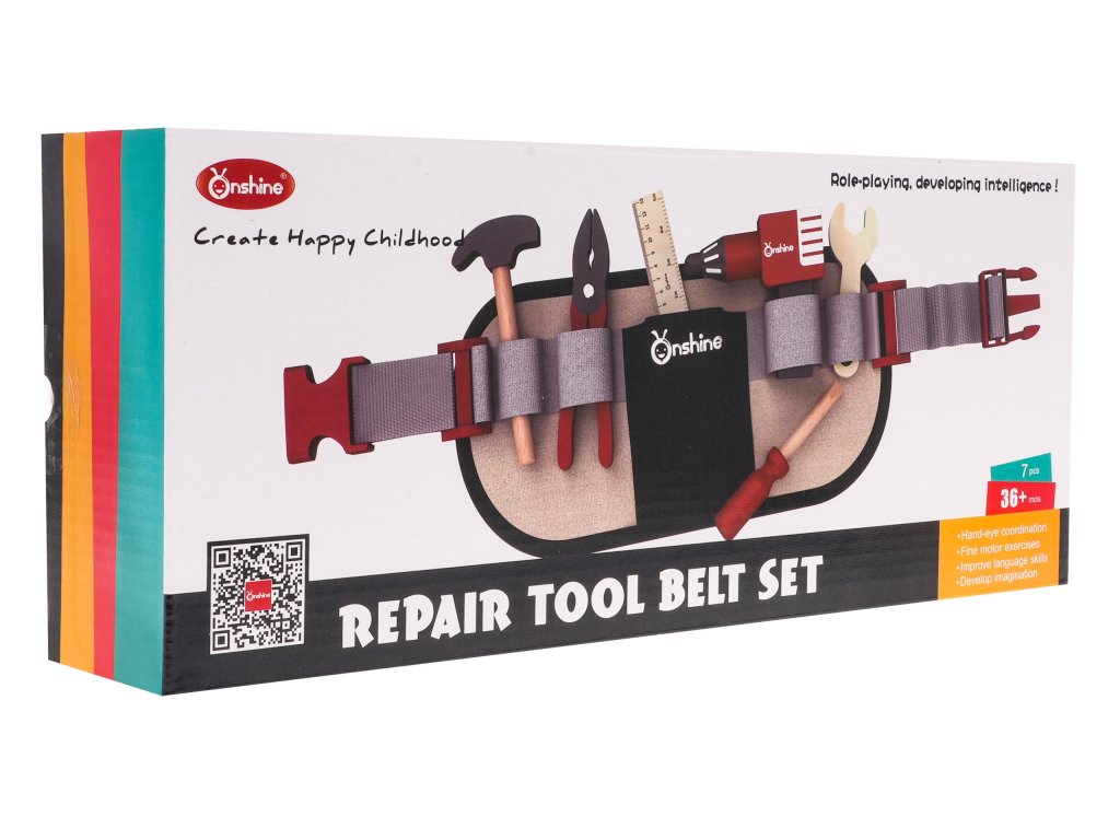 A tool set with a belt is a must-have for every little DIY enthusiast from the age of 3. Tools such as a hammer, pliers, screwdriver, screwdriver, tape measure or open-end wrench are made of wood, are safe and durable, and do not have sharp edges. The tool belt is adjustable and fastened with a snap, has a pocket in the middle and 5 compartments into which all the accessories of the set can be placed. |