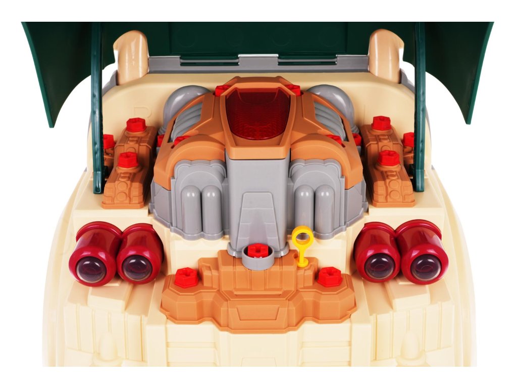 - the sound of starting the engine, driving, reversing, - horn on the steering wheel, - emergency signal, - shining headlights, - engine lighting, - tool compartment, - gear shift lever, - comfortable carrying handle, - movable steering wheel. |