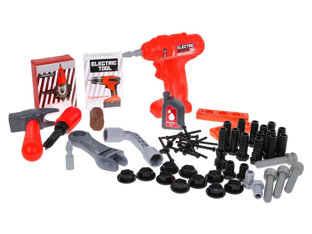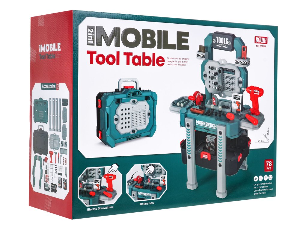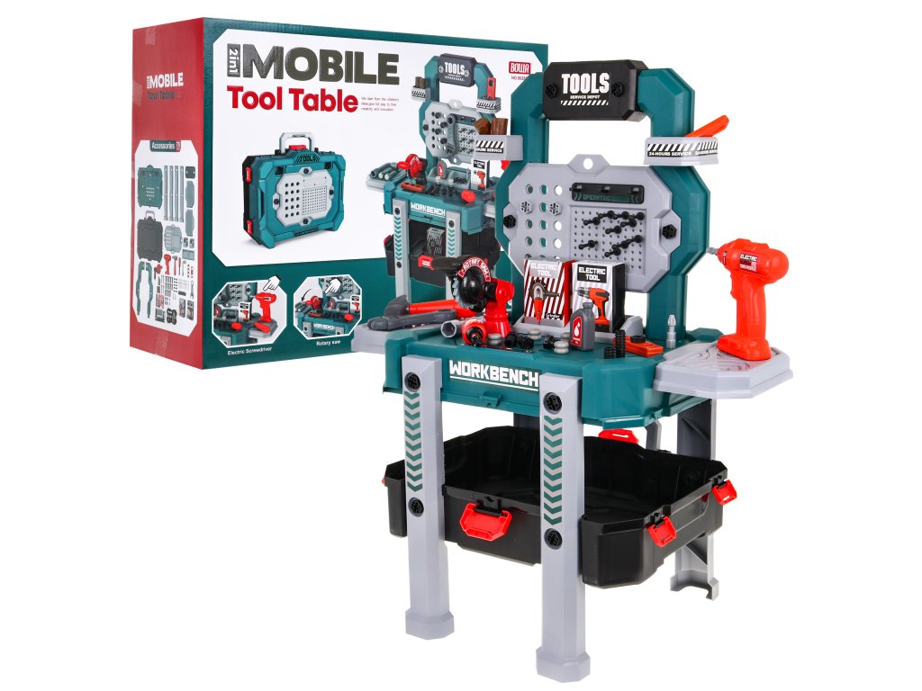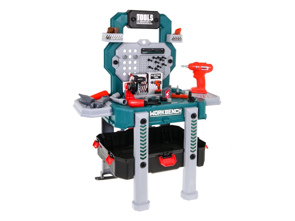 | A well-equipped workshop with a drill, saw and accessories is a proposal for children from 3 years of age. The set consists of 78 elements that resemble real tools. The drill / driver makes noises when screwing in and out and has two interchangeable bits. The individual tools can be freely arranged on the practical stand. After the fun is over, all the elements can be closed in a large tool case with a convenient carrying handle. The toy is powered by 2 x AA batteries (not included). |