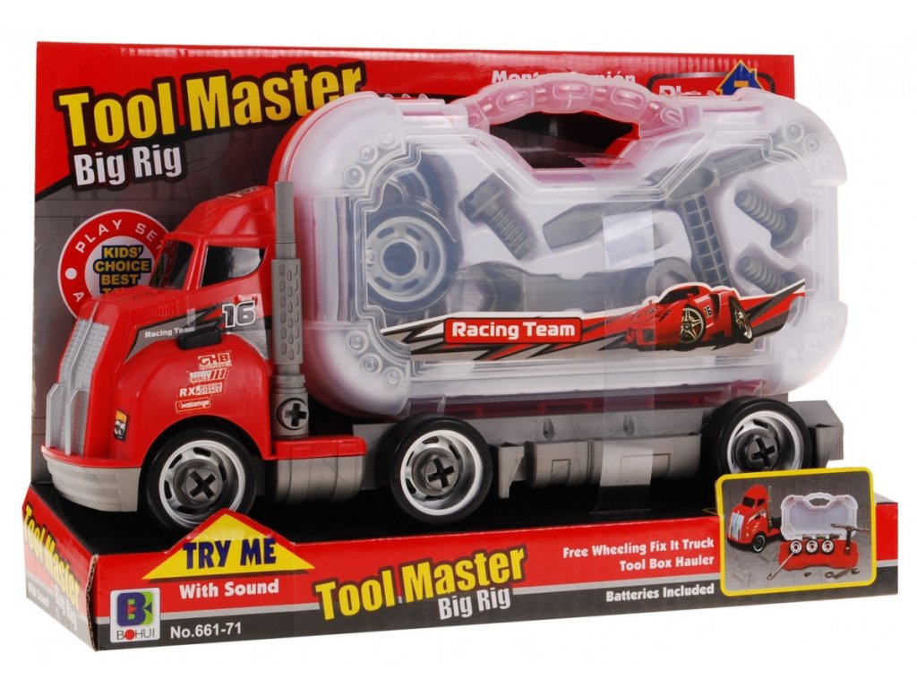 - ring wrench, socket wrench with flat and cross screwdriver, - a set of screws, - wheels for the truck, - suitcase. The toy is powered by 2 AA (2x1,5V) batteries, not included. | |