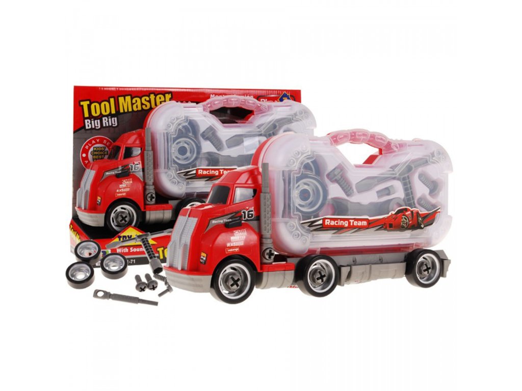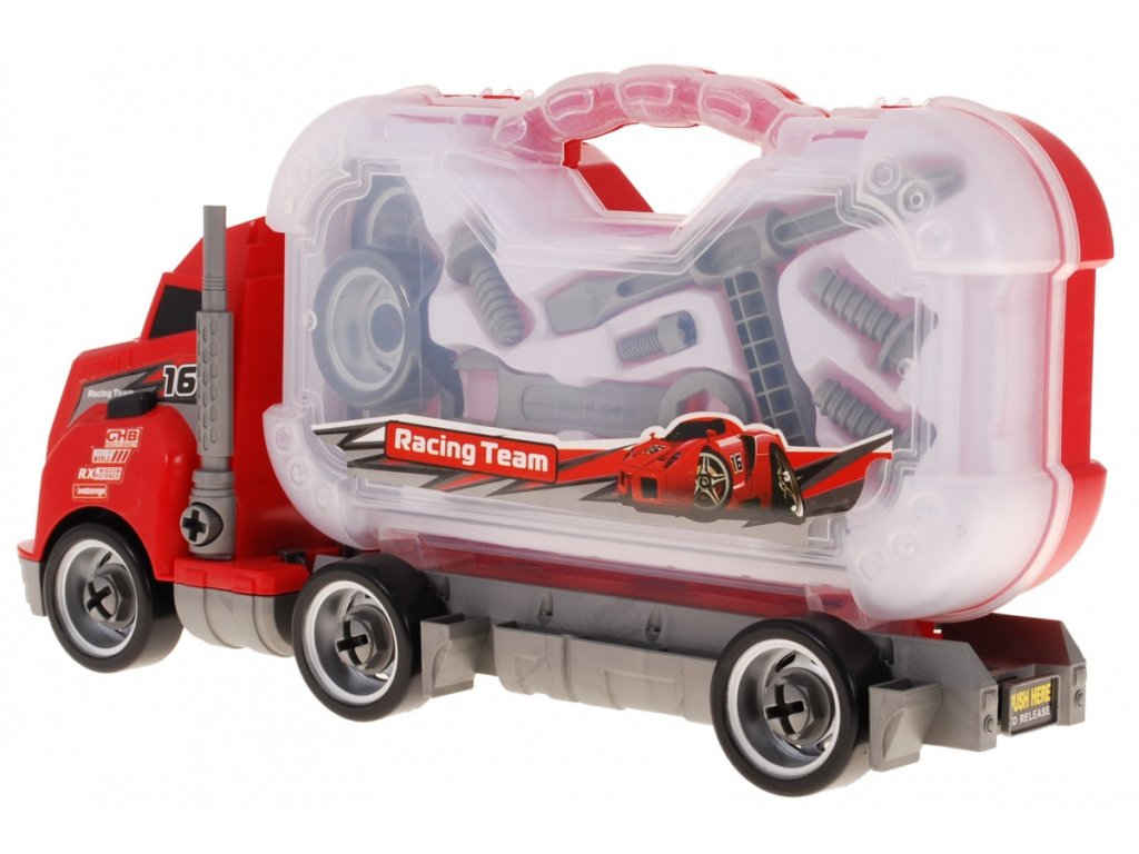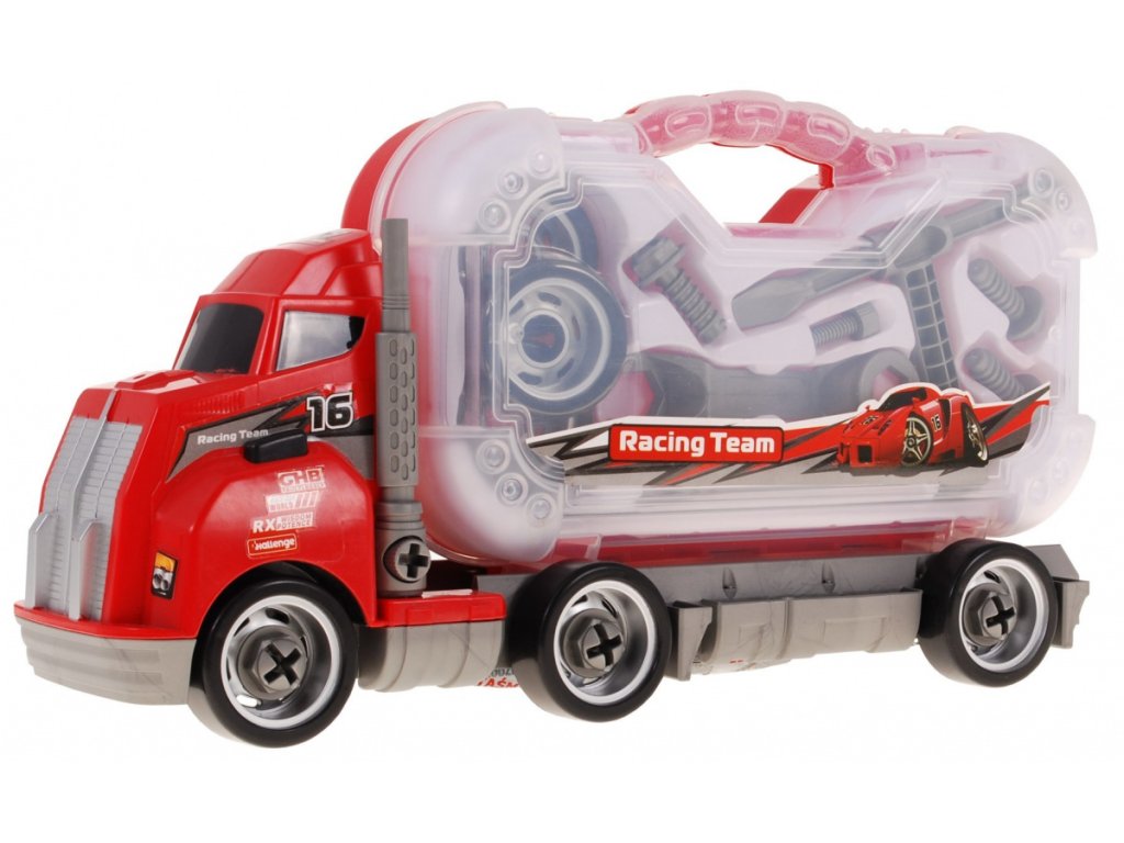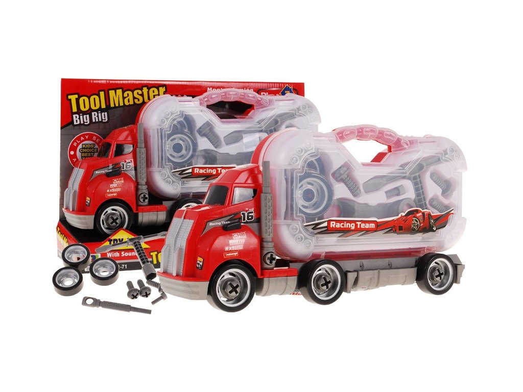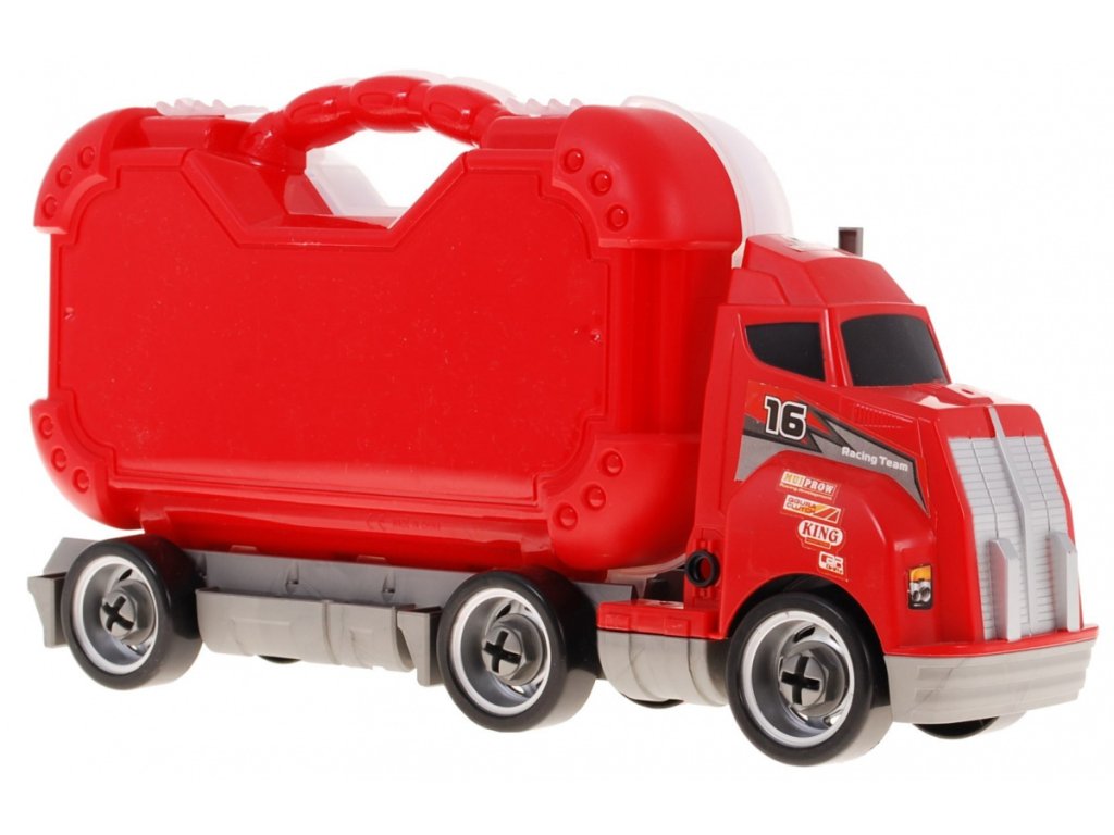 | The individual elements of the workshop were placed in a practical and at the same time convenient suitcase located on the semi-trailer of the truck. We can also dismantle the truck. This fantastic combination of the workshop and the car makes the set an ideal educational toy. An additional fun diversification is the possibility of assembling a truck. In addition, the truck issues the sounds of a moving car. |