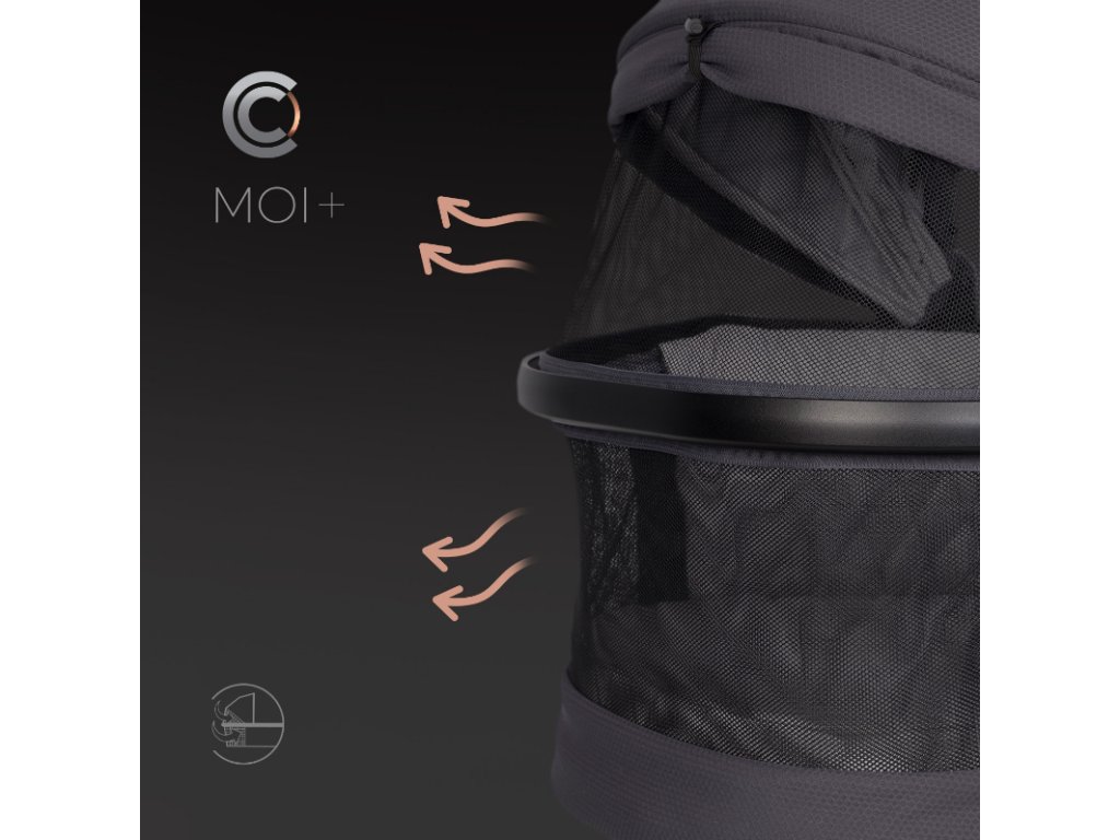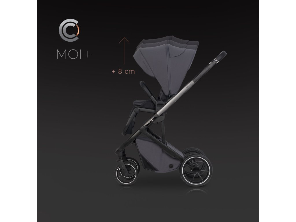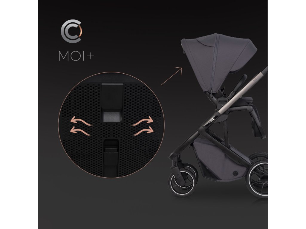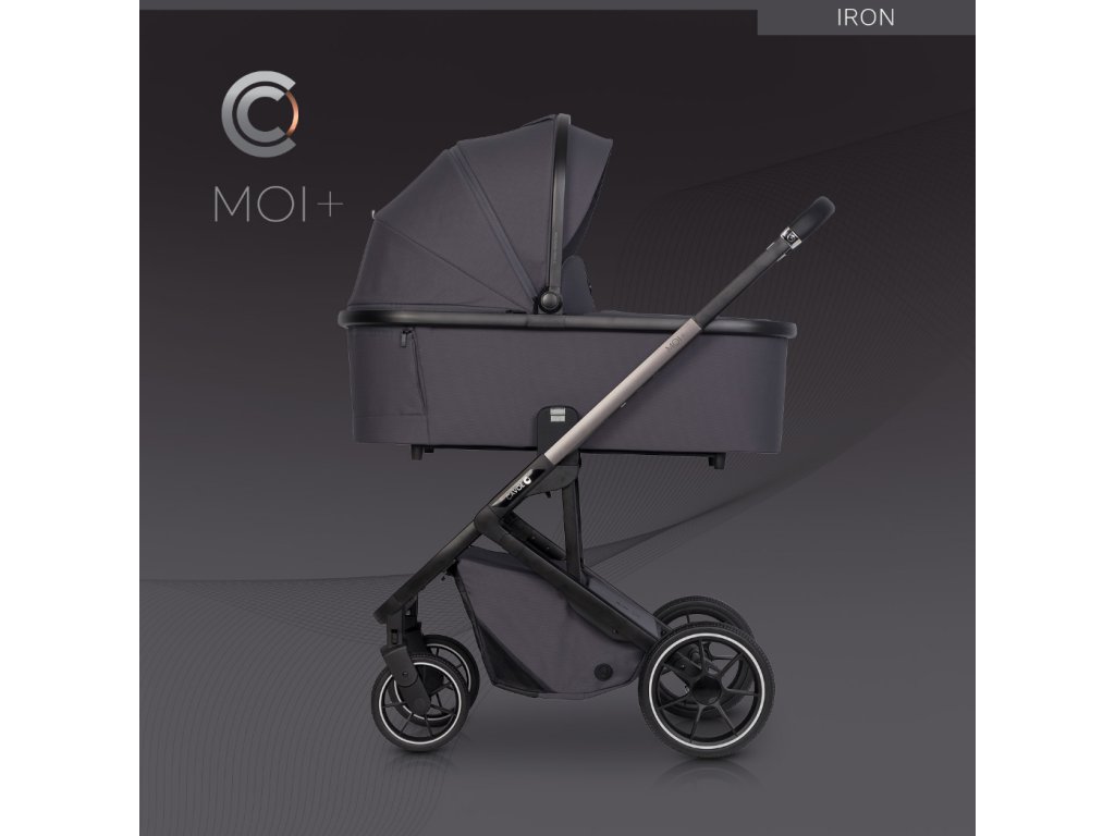 Wózek dziecięcy Cavoe Moi+ Iron Wózek dziecięcy MOI+ marki CAVOE jest udoskonaloną wersją popularnego modelu MOI. Co oznacza PLUS w nazwie modelu? Otóż najnowsze MOI+ posiada większe siedzisko. Oparcie uzyskało wysokość 50 cm. To jednak nie wszystko. Innowacyjna funkcja 3-stopniowej regulacji wysokości budki przeciwsłonecznej pozwala dodatkowo zwiększyć przestrzeń dla dziecka o 8 cm, co w rezultacie może oznaczać nawet dodatkowy rok użytkowania wózka. W rezultacie MOI+ „rośnie” razem z Twoim dzieckiem. Gondola do wózka dziecięcego MOI+ również otrzymała dodatkową funkcjonalność dzięki zastosowaniu przycisków z pamięcią (funkcja Memory Buttons). Funkcja ta pozwala zdemontować gondolę przy użyciu jednej ręki. Po prostu wciśnij przyciski po obu stronach gondoli i unieś ją do góry trzymając za wygodny uchwyt w budce. MOI+ jest innowacyjnym wózkiem dziecięcym łączącym niepowtarzalny styl z wszechstronną funkcjonalnością. Posiada teleskopowy system składania, dzięki któremu składa się do niezwykle małych rozmiarów, niezależnie od tego, czy siedzisko zamontowane jest przodem czy tyłem do kierunku jazdy. MOI+ po złożeniu nadal stoi na kołach, co ogranicza ryzyko przypadkowego ubrudzenia tapicerki, czy porysowania konstrukcji. Złożony wózek można również postawić w pionie i ciągnąć za sobą na kołach jak walizkę. Niska waga i kompaktowe rozmiary ułatwiają przenoszenie wózka. MOI+ marki CAVOE oferowany jest jako wózek spacerowy lub w postaci zestawu z gondolą (wózek 2w1) i fotelikiem samochodowym CAVOE 0+ ISOFIX Ready (wózek 3w1). Dzięki możliwości dokupienia uniwersalnych adapterów istnieje możliwość zamontowania na stelażu wózka również fotelików innych znanych globalnych marek. Kompaktowe rozmiary i niska waga wózka połączone zostały z dobrą amortyzacją i dużymi gumowymi kołami. Koła są bezdętkowe i posiadają całoroczny bieżnik, dzięki któremu wózek sprawdzi się o każdej porze roku. Teleskopowa regulacja wysokości prowadnicy pozwoli dopasować wózek do wzrostu osoby prowadzącej. Prowadnica wysuwa się daleko poza linię tylnych kół, więc wysoka osoba nie będzie zahaczać stopami o elementy wózka oraz ułatwione będzie podbicie wózka na przykład wjeżdżając na krawężnik. Siedzisko wózka MOI+ certyfikowane jest dla dzieci od narodzin do 22 kg. Posiada dwie miękkie wkładki, które można zdemontować, gdy dziecko będzie już nieco większe. Nowością jest zastosowanie antypoślizgowej tkaniny na płaszczyźnie siedziska, która zapobiega przed ześlizgiwaniem się dziecka. Rozwiązanie to od dawna stosowane jest w nosidełkach dziecięcych, ale po raz pierwszy wykorzystane zostało w wózku dziecięcym. Tkanina posiada silikonowe bąbelki, które sprawiają, że dziecko siedzi w optymalnej pozycji, co ogranicza ryzyko występowania wad postawy w przyszłości. Siedzisko można zamontować w obu kierunkach i również w obu kierunkach wózek można złożyć. Budka przeciwsłoneczna jest duża i posiada dodatkową zamykaną sekcję, która pozwoli osłonić dziecko przed nisko operującym słońcem. Projektanci nie zapomnieli również o wentylacji. Oprócz typowych wentylatorów znajdujących się w budce przeciwsłonecznej, siedzisko wózka MOI+ posiada specjalny system wentylacji w skorupie oparcia. Gondola wózka MOI+ jest duża i wygodna. Jej wewnętrzna długość to 78 cm, więc z pewnością wystarczy do czasu jak dziecko przesiądzie się do siedziska. Gondola jest bardzo lekka i zgrabna. Można ją złożyć na płasko na czas transportu lub przechowywania. W przedniej części gondoli znajduje się duży zamykany panel wentylacyjny, który w połączeniu z wentylatorem w budce, doskonale sprawdzi się ciepłe letnie dni. Gondola posiada plastikowe stopki, dzięki czemu nie ubrudzi się po postawieniu na ziemi. Funkcja Memory Buttons (przyciski z pamięcią) umożliwia wygodny demontaż za pomocą jednej ręki. Duży koszyk na zakupy pomieści niezbędne bagaże, ale jeśli potrzebujesz dodatkowej przestrzeni, to możesz dokupić praktyczną torbę zawieszaną na prowadnicy wózka. Posiada ona formę eleganckiego kuferka, który po całkowitym rozsunięciu wszystkich suwaków, zmienia się w matę do przewijania dziecka. W zestawie z wózkiem w wersji spacerowej otrzymujesz pokrowiec przeciwdeszczowy, moskitierę i ocieplacz na zimę. W zestawie z gondolą znajduje się osobny pokrowiec przeciwdeszczowy i osobna moskitiera, które idealnie pasują do jej kształtów. Do wózka MOI+ dedykowany jest fotelik samochodowy CAVOE 0+ ISOFIX Ready. Można do niego również dokupić dedykowaną bazę ISOFIX, która zdecydowanie ułatwi montaż fotelika i zwiększy bezpieczeństwo. Adaptery marki CAVOE pasują również do fotelików samochodowych innych znanych marek. O szczegółową listę fotelików zapytaj sprzedawcę. Marka CAVOE łączy w sobie najwyższą jakość wykonania z modnym nowoczesnym stylem. Projektanci inspirowali się najnowszymi paryskimi trendami modowymi w wyniku czego produkty CAVOE wyróżniają się odważną formą i kolorystyką. Dzięki wyjątkowej funkcjonalności wózki dziecięce CAVOE zapewnią wygodę użytkowania zarówno Tobie jak i Twojemu dziecku. Spacer z CAVOE to komfort i bezpieczeństwo w dobrym stylu. SPECYFIKACJA - nowoczesny wózek wielofunkcyjny przeznaczony dla dzieci od narodzin do 22 kg, - certyfikat zgodności z normą EN 1888-1:2018 i EN 1888-2:2018, - 3-stopniowa regulacja wysokości budki przeciwsłonecznej (wózek „rośnie” razem z dzieckiem) - podwyższone oparcie do 50 cm - przepinane siedzisko (możliwość montażu przodem i tyłem do kierunku jazdy), - możliwość złożenia wózka razem z siedziskiem zamontowanym przodem i tyłem do kierunku jazdy, - teleskopowa regulacja wysokości rączki (prowadnicy), - regulacja podnóżka, - możliwość ciągnięcia złożonego wózka jak walizki, - duże ło