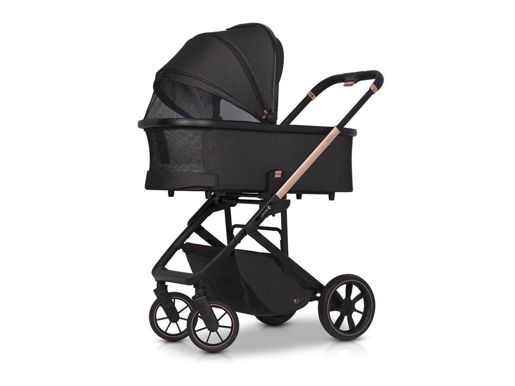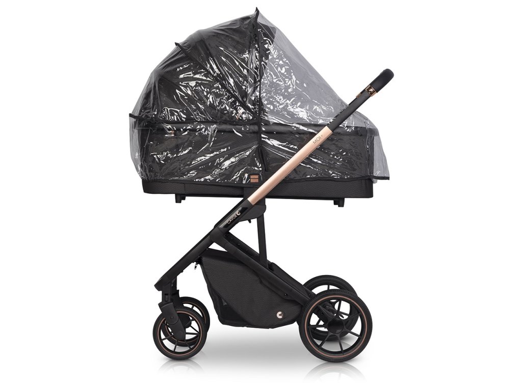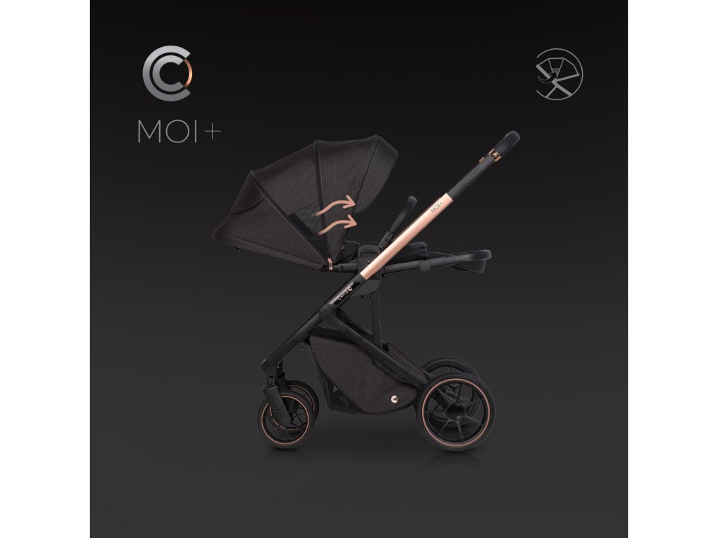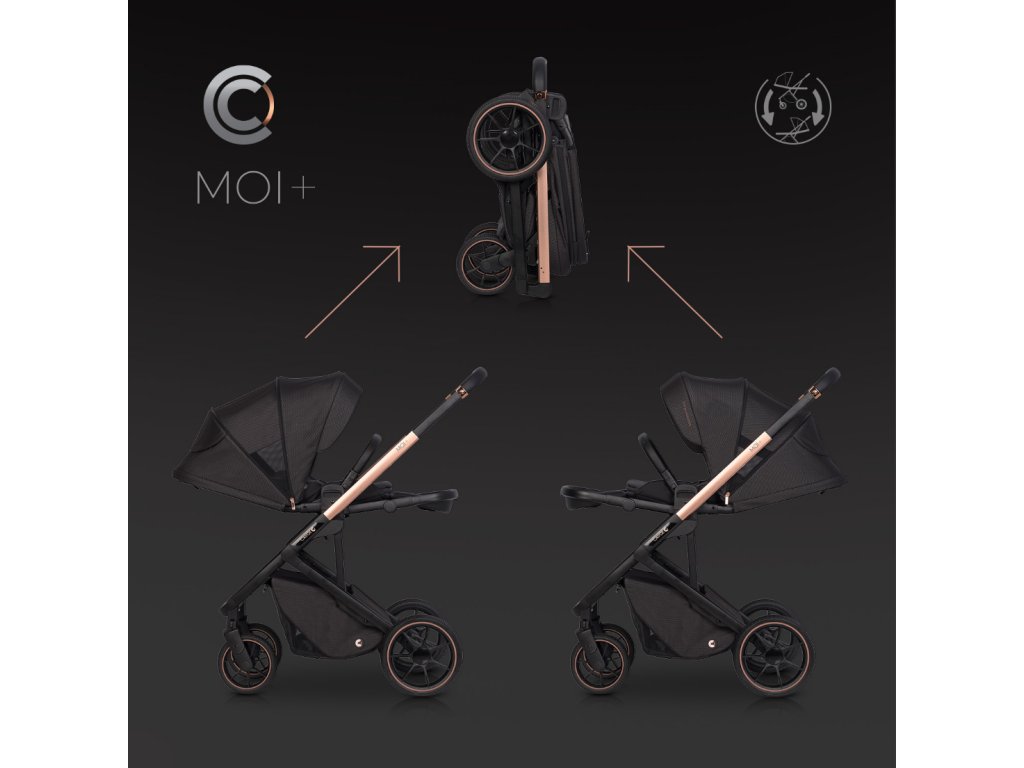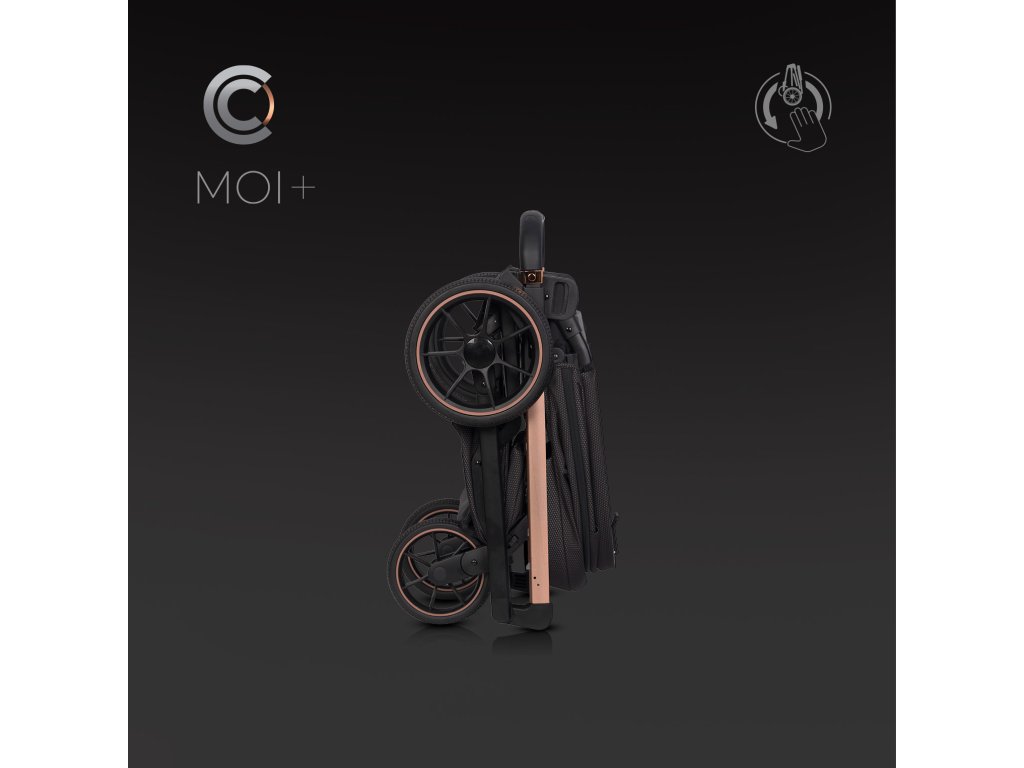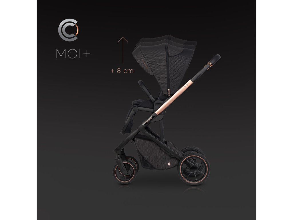 Wózek dziecięcy Cavoe Moi+ Meteorite Wózek dziecięcy MOI+ marki CAVOE jest udoskonaloną wersją popularnego modelu MOI. Co oznacza PLUS w nazwie modelu? Otóż najnowsze MOI+ posiada większe siedzisko. Oparcie uzyskało wysokość 50 cm. To jednak nie wszystko. Innowacyjna funkcja 3-stopniowej regulacji wysokości budki przeciwsłonecznej pozwala dodatkowo zwiększyć przestrzeń dla dziecka o 8 cm, co w rezultacie może oznaczać nawet dodatkowy rok użytkowania wózka. W rezultacie MOI+ „rośnie” razem z Twoim dzieckiem. Gondola do wózka dziecięcego MOI+ również otrzymała dodatkową funkcjonalność dzięki zastosowaniu przycisków z pamięcią (funkcja Memory Buttons). Funkcja ta pozwala zdemontować gondolę przy użyciu jednej ręki. Po prostu wciśnij przyciski po obu stronach gondoli i unieś ją do góry trzymając za wygodny uchwyt w budce. MOI+ jest innowacyjnym wózkiem dziecięcym łączącym niepowtarzalny styl z wszechstronną funkcjonalnością. Posiada teleskopowy system składania, dzięki któremu składa się do niezwykle małych rozmiarów, niezależnie od tego, czy siedzisko zamontowane jest przodem czy tyłem do kierunku jazdy. MOI+ po złożeniu nadal stoi na kołach, co ogranicza ryzyko przypadkowego ubrudzenia tapicerki, czy porysowania konstrukcji. Złożony wózek można również postawić w pionie i ciągnąć za sobą na kołach jak walizkę. Niska waga i kompaktowe rozmiary ułatwiają przenoszenie wózka. MOI+ marki CAVOE oferowany jest jako wózek spacerowy lub w postaci zestawu z gondolą (wózek 2w1) i fotelikiem samochodowym CAVOE 0+ ISOFIX Ready (wózek 3w1). Dzięki możliwości dokupienia uniwersalnych adapterów istnieje możliwość zamontowania na stelażu wózka również fotelików innych znanych globalnych marek. Kompaktowe rozmiary i niska waga wózka połączone zostały z dobrą amortyzacją i dużymi gumowymi kołami. Koła są bezdętkowe i posiadają całoroczny bieżnik, dzięki któremu wózek sprawdzi się o każdej porze roku. Teleskopowa regulacja wysokości prowadnicy pozwoli dopasować wózek do wzrostu osoby prowadzącej. Prowadnica wysuwa się daleko poza linię tylnych kół, więc wysoka osoba nie będzie zahaczać stopami o elementy wózka oraz ułatwione będzie podbicie wózka na przykład wjeżdżając na krawężnik. Siedzisko wózka MOI+ certyfikowane jest dla dzieci od narodzin do 22 kg. Posiada dwie miękkie wkładki, które można zdemontować, gdy dziecko będzie już nieco większe. Nowością jest zastosowanie antypoślizgowej tkaniny na płaszczyźnie siedziska, która zapobiega przed ześlizgiwaniem się dziecka. Rozwiązanie to od dawna stosowane jest w nosidełkach dziecięcych, ale po raz pierwszy wykorzystane zostało w wózku dziecięcym. Tkanina posiada silikonowe bąbelki, które sprawiają, że dziecko siedzi w optymalnej pozycji, co ogranicza ryzyko występowania wad postawy w przyszłości. Siedzisko można zamontować w obu kierunkach i również w obu kierunkach wózek można złożyć. Budka przeciwsłoneczna jest duża i posiada dodatkową zamykaną sekcję, która pozwoli osłonić dziecko przed nisko operującym słońcem. Projektanci nie zapomnieli również o wentylacji. Oprócz typowych wentylatorów znajdujących się w budce przeciwsłonecznej, siedzisko wózka MOI+ posiada specjalny system wentylacji w skorupie oparcia. Gondola wózka MOI+ jest duża i wygodna. Jej wewnętrzna długość to 78 cm, więc z pewnością wystarczy do czasu jak dziecko przesiądzie się do siedziska. Gondola jest bardzo lekka i zgrabna. Można ją złożyć na płasko na czas transportu lub przechowywania. W przedniej części gondoli znajduje się duży zamykany panel wentylacyjny, który w połączeniu z wentylatorem w budce, doskonale sprawdzi się ciepłe letnie dni. Gondola posiada plastikowe stopki, dzięki czemu nie ubrudzi się po postawieniu na ziemi. Funkcja Memory Buttons (przyciski z pamięcią) umożliwia wygodny demontaż za pomocą jednej ręki. Duży koszyk na zakupy pomieści niezbędne bagaże, ale jeśli potrzebujesz dodatkowej przestrzeni, to możesz dokupić praktyczną torbę zawieszaną na prowadnicy wózka. Posiada ona formę eleganckiego kuferka, który po całkowitym rozsunięciu wszystkich suwaków, zmienia się w matę do przewijania dziecka. W zestawie z wózkiem w wersji spacerowej otrzymujesz pokrowiec przeciwdeszczowy, moskitierę i ocieplacz na zimę. W zestawie z gondolą znajduje się osobny pokrowiec przeciwdeszczowy i osobna moskitiera, które idealnie pasują do jej kształtów. Do wózka MOI+ dedykowany jest fotelik samochodowy CAVOE 0+ ISOFIX Ready. Można do niego również dokupić dedykowaną bazę ISOFIX, która zdecydowanie ułatwi montaż fotelika i zwiększy bezpieczeństwo. Adaptery marki CAVOE pasują również do fotelików samochodowych innych znanych marek. O szczegółową listę fotelików zapytaj sprzedawcę. Marka CAVOE łączy w sobie najwyższą jakość wykonania z modnym nowoczesnym stylem. Projektanci inspirowali się najnowszymi paryskimi trendami modowymi w wyniku czego produkty CAVOE wyróżniają się odważną formą i kolorystyką. Dzięki wyjątkowej funkcjonalności wózki dziecięce CAVOE zapewnią wygodę użytkowania zarówno Tobie jak i Twojemu dziecku. Spacer z CAVOE to komfort i bezpieczeństwo w dobrym stylu. SPECYFIKACJA - nowoczesny wózek wielofunkcyjny przeznaczony dla dzieci od narodzin do 22 kg, - certyfikat zgodności z normą EN 1888-1:2018 i EN 1888-2:2018, - 3-stopniowa regulacja wysokości budki przeciwsłonecznej (wózek „rośnie” razem z dzieckiem) - podwyższone oparcie do 50 cm - przepinane siedzisko (możliwość montażu przodem i tyłem do kierunku jazdy), - możliwość złożenia wózka razem z siedziskiem zamontowanym przodem i tyłem do kierunku jazdy, - teleskopowa regulacja wysokości rączki (prowadnicy), - regulacja podnóżka, - możliwość ciągnięcia złożonego wózka jak walizki, - duże