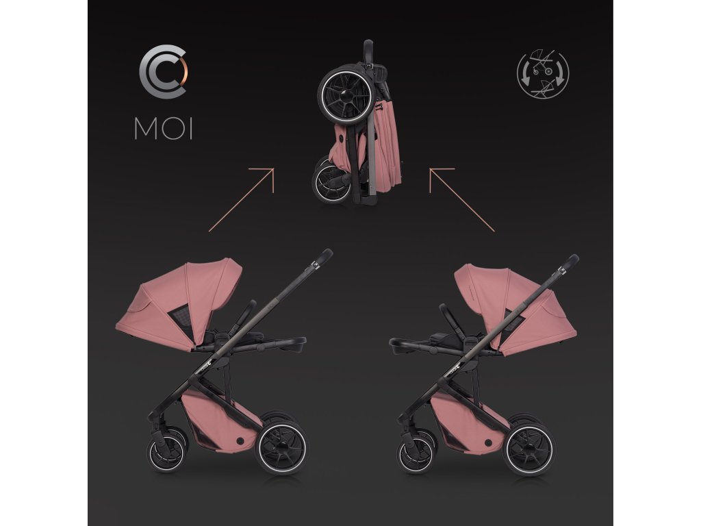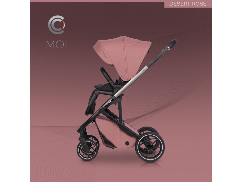 Wózek dziecięcy Cavoe Moi Desert Rose MOI marki CAVOE jest innowacyjnym wózkiem dziecięcym łączącym niepowtarzalny styl z wszechstronną funkcjonalnością. Posiada innowacyjny teleskopowy system składania, dzięki któremu składa się do niezwykle małych rozmiarów, niezależnie od tego, czy siedzisko zamontowane jest przodem czy tyłem do kierunku jazdy. MOI po złożeniu nadal stoi na kołach, więc nie ma ryzyka przypadkowego ubrudzenia tapicerki, czy porysowania konstrukcji. Złożony wózek można również postawić w pionie i ciągnąć za sobą na kołach jak walizkę. Niska waga i kompaktowe rozmiary ułatwiają przenoszenie wózka. MOI marki CAVOE oferowany jest jako wózek spacerowy lub w postaci zestawu z gondolą (wózek 2w1) i fotelikiem samochodowym CAVOE 0+ ISOFIX Ready (wózek 3w1). Dzięki uniwersalnym adapterom istnieje możliwość zamontowania na stelażu wózka również fotelików innych znanych globalnych marek (szczegółowa lista fotelików dostępna u sprzedawców). Kompaktowe rozmiary i niska waga wózka połączone zostały z dobrą amortyzacją i dużymi gumowymi kołami. Koła są bezdętkowe i posiadają całoroczny bieżnik, dzięki któremu wózek sprawdzi się o każdej porze roku. Teleskopowa regulacja wysokości prowadnicy pozwoli dopasować wózek do wzrostu osoby prowadzącej. Prowadnica wysuwa się daleko poza linię tylnych kół, więc wysoka osoba nie będzie zahaczać stopami o elementy wózka oraz ułatwione będzie podbicie wózka na przykład wjeżdżając na krawężnik. Siedzisko wózka MOI certyfikowane jest dla dzieci od narodzin do 22 kg. Posiada dwie miękkie wkładki, które można zdemontować, gdy dziecko będzie już nieco większe. Nowością jest zastosowanie antypoślizgowej tkaniny na płaszczyźnie siedziska, która zapobiega przed ześlizgiwaniem się dziecka. Rozwiązanie to od dawna stosowane jest w nosidełkach dziecięcych, ale po raz pierwszy wykorzystane zostało w wózku dziecięcym. Tkanina posiada silikonowe bąbelki, które sprawiają, że dziecko siedzi w optymalnej pozycji, co ogranicza ryzyko występowania wad postawy w przyszłości. Siedzisko można zamontować w obu kierunkach i również w obu kierunkach wózek można złożyć. Budka przeciwsłoneczna jest duża i posiada dodatkową zamykaną sekcję, która pozwoli osłonić dziecko przed nisko operującym słońcem. Projektanci nie zapomnieli również o wentylacji. Oprócz typowych wentylatorów znajdujących się w budce przeciwsłonecznej, siedzisko wózka MOI posiada wentylowane oparcie. Gondola wózka MOI jest duża i wygodna. Jej wewnętrzna długość to 78 cm, więc z pewnością wystarczy do czasu jak dziecko przesiądzie się do siedziska. Gondola jest bardzo lekka i zgrabna. Można ją złożyć na płasko na czas transportu lub przechowywania. W przedniej części gondoli znajduje się duży zamykany panel wentylacyjny, który w połączeniu z wentylatorem w budce, doskonale sprawdzi się ciepłe letnie dni. Gondola posiada plastikowe stopki, dzięki czemu nie ubrudzi się po postawieniu na ziemi. Duży koszyk na zakupy pomieści niezbędne bagaże, ale jeśli potrzebujesz dodatkowej przestrzeni, to możesz dokupić praktyczną torbę zawieszaną na prowadnicy wózka. Posiada ona formę eleganckiego kuferka, który po całkowitym rozsunięciu wszystkich suwaków, zmienia się w matę do przewijania dziecka. W zestawie z wózkiem w wersji spacerowej otrzymujesz pokrowiec przeciwdeszczowy, moskitierę i ocieplacz na zimę. W zestawie z gondolą znajduje się osobny pokrowiec przeciwdeszczowy i osobna moskitiera, które idealnie pasują do jej kształtów. Do wózka MOI dedykowany jest fotelik samochodowy CAVOE 0+ ISOFIX Ready. Można do niego również dokupić dedykowaną bazę ISOFIX, która zdecydowanie ułatwi montaż fotelika i zwiększy bezpieczeństwo. Adaptery marki CAVOE pasują również do fotelików samochodowych innych znanych marek. Marka CAVOE łączy w sobie najwyższą jakość wykonania z modnym nowoczesnym stylem. Projektanci inspirowali się najnowszymi paryskimi trendami modowymi w wyniku czego produkty CAVOE wyróżniają się odważną formą i kolorystyką. Dzięki wyjątkowej funkcjonalności wózki dziecięce CAVOE zapewnią wygodę użytkowania zarówno Tobie jak i Twojemu dziecku. Spacer z CAVOE to komfort i bezpieczeństwo w dobrym stylu. SPECYFIKACJA - nowoczesny wózek wielofunkcyjny przeznaczony dla dzieci od narodzin do 22 kg, - certyfikat zgodności z normą EN 1888-1:2018 i EN 1888-2:2018, - przepinane siedzisko (możliwość montażu przodem i tyłem do kierunku jazdy), - możliwość złożenia wózka razem z siedziskiem zamontowanym przodem i tyłem do kierunku jazdy, - teleskopowa regulacja wysokości rączki (prowadnicy), - regulacja podnóżka, - możliwość ciągnięcia złożonego wózka jak walizki, - duże łożyskowane koła z gumowymi oponami (świetna przyczepność również na śniegu), - siedzisko spacerowe wyposażone w 5-punktowe pasy bezpieczeństwa przystosowane dla dzieci od narodzin do 22 kg (siedzisko 0+), - system wkładek redukcyjnych na siedzisku, - antypoślizgowa tkanina na płaszczyźnie siedziska, - barierka bezpieczeństwa i prowadnica obszyte skórą ekologiczną, - pełna folia przeciwdeszczowa zasłaniająca całą tapicerkę wózka, - ocieplacz na zimę, - budka przeciwsłoneczna siedziska spacerowego z dodatkową rozpinaną sekcją (możliwość pochylenia budki i osłonięcia dziecka przed nisko operującym słońcem), - samonastawne przednie koła z możliwością blokady do jazdy prosto, - system składania jedną ręką, - koszyk na zakupy pod wózkiem (łatwy dostęp do koszyka dzięki klapce w tylnej części), - możliwość dokupienia gondoli (długość wewnętrzna 78 cm), - gondola wyposażona w osobna folię przeciwdeszczową, moskitierę, uchwyt do przenoszenia, budkę przeciwsłoneczną z dodatkową odpinaną sekcją, plastikowe stopki oraz panel wenty