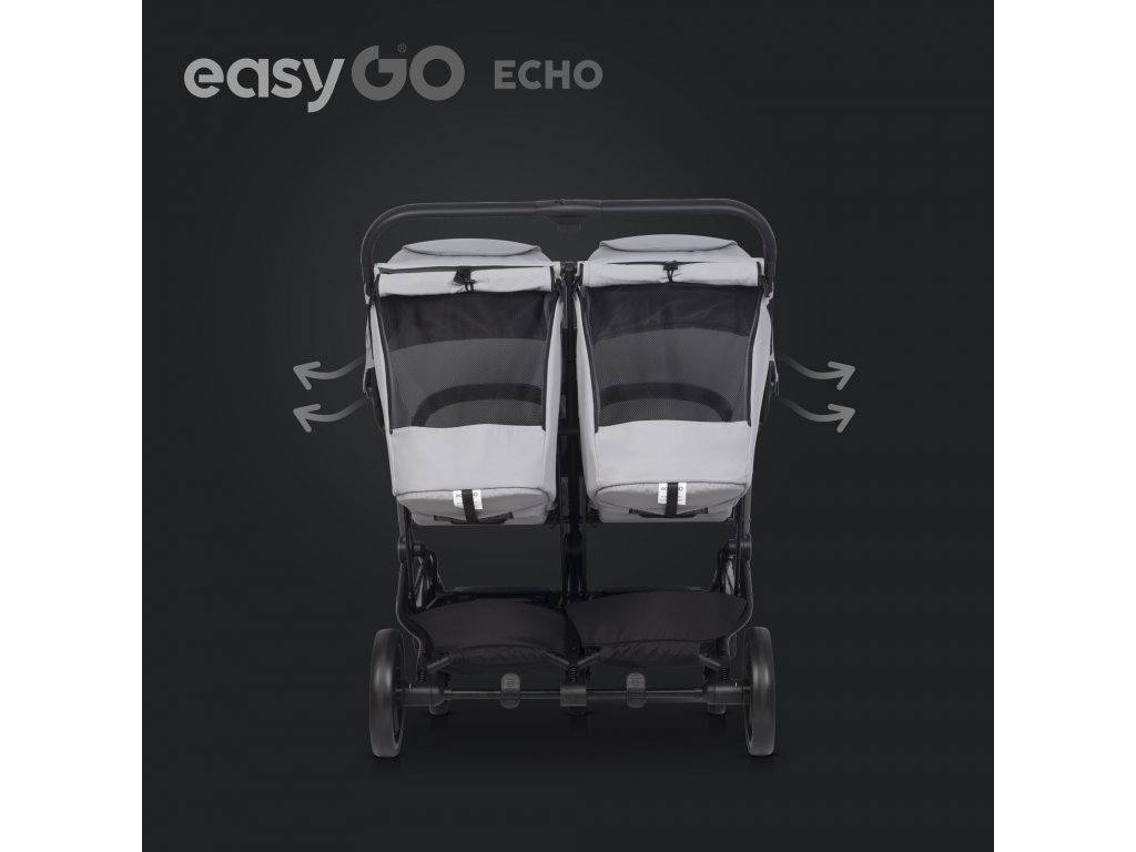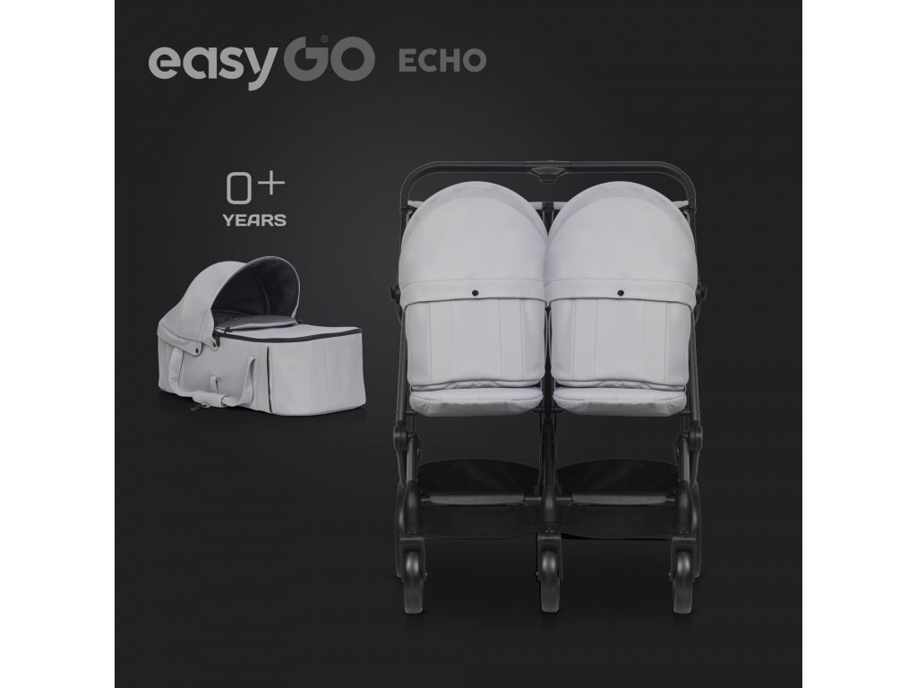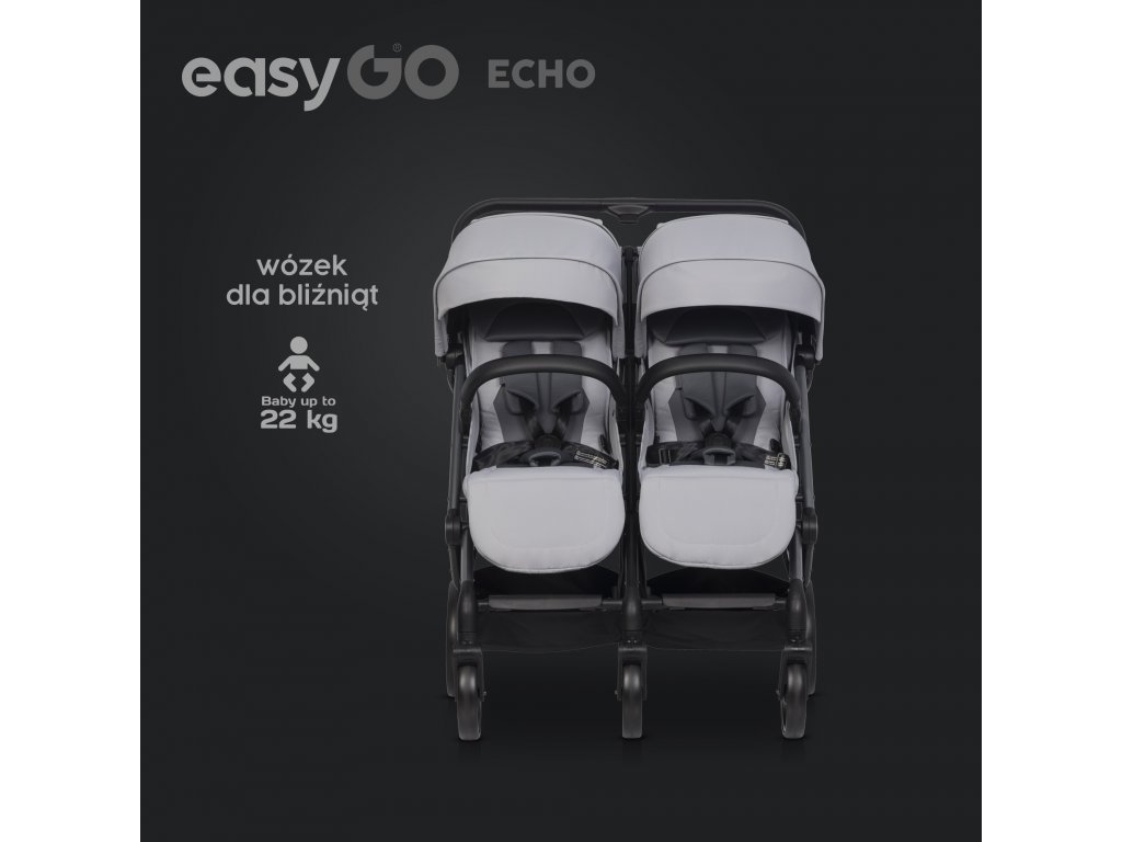 Takto vznikl kočárek EasyGo ECHO – spojující pohodlí dětí s pohodlím rodičů. ECHO je kočárek pro dvojčata nebo děti rok co rok, ale lze jej rozšířit na sadu 2 v 1 nebo kombinaci jednoho sedadla a jednoho nosiče zakoupením dalších dětských vložk, často nazývaných měkké přenosové postýlky. Sedadla jsou umístěna vedle sebe a jsou certifikovaná pro děti od narození až do 22 kg.