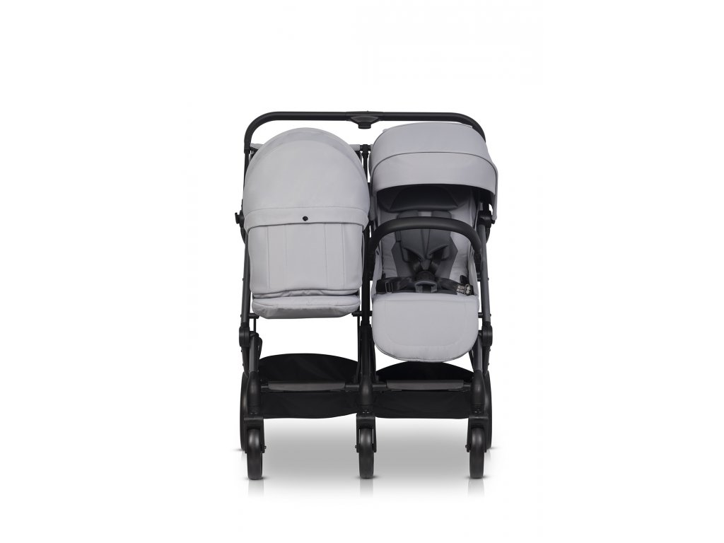 Rám kočárku je profilován tak, že zadní kola nevyčnívají za linii sedadel a šířka kočárku je pouze 78 cm, přičemž sedadla jsou pohodlně zachována. Kočárek je vybaven dešťovou fólií s větracími otvory, která zakrývá celé čalounění kočárku, a dvěma teplými návleky na nohy, které vám pomohou