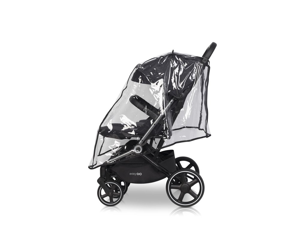V sadě s kočárkem získáte dešťovou fólii s odvětrávači, která pokrývá celé čalounění kočárku a 2 teplé potahy na nohy, abyste si mohli užívat procházku za všech povětrnostních podmínek.