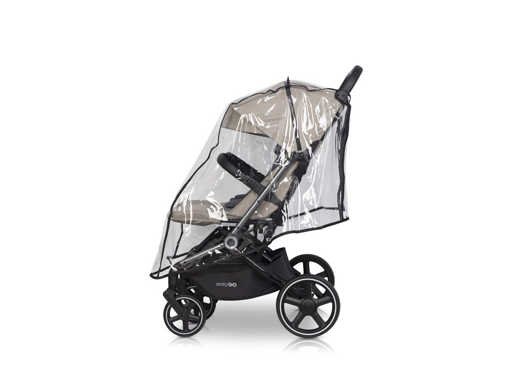 V sadě s kočárkem získáte dešťovou fólii s odvětrávači, která pokrývá celé čalounění kočárku a 2 teplé potahy na nohy, abyste si mohli užívat procházku za všech povětrnostních podmínek.