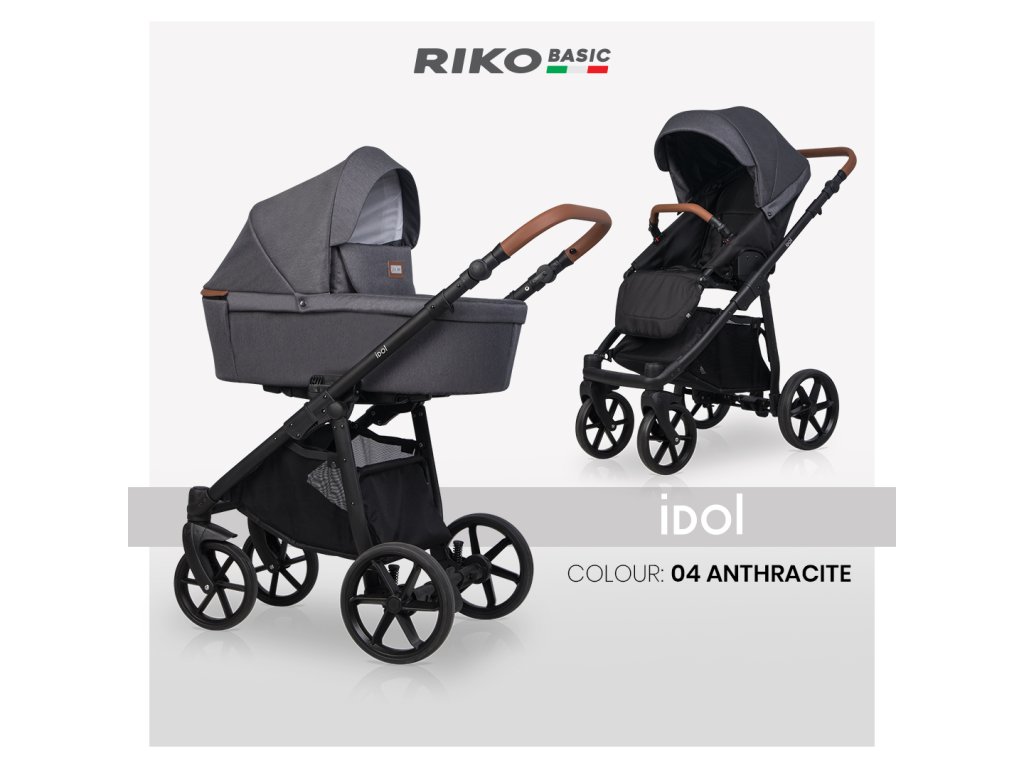 Wózek dziecięcy 2w1 IDOL marki RIKO BASIC – super jakość w niskiej cenie Czy dobry wózek dziecięcy koniecznie musi być drogi? IDOL marki RIKO BASIC jest dowodem na to, że nie. Ten nowoczesny wielofunkcyjny model wózka dziecięcego posiada wszystko to co powinien mieć dobry wózek dziecięcy: świetną amortyzację z regulacją twardością, duże lekkie koła z poliuretanu, przekładane siedzisko, dużą gondolę z panelem wentylacyjnym i siateczką w przedniej części, regulowaną wysokość rączki oraz modny atrakcyjny wygląd w tym skórzaną rączkę i barierkę. Jak udało się firmie RIKO osiągnąć tak niską cenę za tak dobry wózek? Projektanci zrezygnowali ze wszystkich dodatków, które nie są niezbędne, aby wózek spełniał swoje podstawowe funkcje. Jeśli nie są dla ciebie ważne drogie elementy dekoracyjne, czy najnowsze dostępne na rynku rozwiązania konstrukcyjne, a chcesz po prostu kupić nowy wygodny i bezpieczny wózek z gwarancją polskiego producenta, to RIKO BASIC IDOL będzie doskonałym wyborem. Dodatkowym efektem spowodowanym minimalistycznym charakterem wózka jest obniżona waga. IDOL jest najlżejszym wózkiem z kolekcji RIKO BASIC. Jego stelaż waży zaledwie 7,5 kg, a cały wózek w wersjach z gondolą i siedziskiem waży poniżej 13 kg, co jest bardzo dobrym wynikiem dla wózka wielofunkcyjnego o takich gabarytach. Wózek dziecięcy IDOL dostępny jest w wersji 2w1 z siedziskiem i gondolą lub 3w1 po dokupieniu fotelika samochodowego. Oba zestawy są bardzo atrakcyjne cenowo. W zestawie z wózkiem znajduje się praktyczna torba z systemem mocowań do rączki wózka oraz ciepły pokrowiec na nóżki dziecka, który z pewnością przyda się w zimne dni. Pod wózkiem zamocowany został pojemny i wytrzymały kosz, do którego bez problemu zmieścisz wszystkie potrzebne podczas spaceru drobiazgi lub codzienne zakupy. IDOL marki RIKO BASIC jest również doskonałą alternatywą dla wózków używanych. Po co kupować niehigieniczny wózek z drugiej ręki o nieznanej historii, kiedy w tej samej cenie można mieć nowy bezpieczny wózek od renomowanego polskiego producenta. Postaw na spacery w stylu BASIC! SPECYFIKACJA TECHNICZNA - wózek wielofunkcyjny przeznaczony dla dzieci od narodzin do 22 kg, - amortyzacja wszystkich kół, - tylna amortyzacja z regulacją twardości, - dwukierunkowe przekładane siedzisko, - duża gondola z bawełnianą wyściółką i materacykiem, - panel wentylacyjny w przedniej części gondoli, - regulowana budka przeciwsłoneczna z daszkiem, - regulacja wysokości rączki, - rączka i barierka obszyte estetyczną skórą ekologiczną, -hamulec postojowy, - 5-punktowe pasy bezpieczeństwa, - 4-stopniowa regulacja wysokości oparcia, - regulowany podnóżek, - obrotowe przednie koła z możliwością zablokowania do jazdy prosto, - lekkie łożyskowane bezdętkowe koła z oponami z poliuretanu, - możliwość zakupu w wersji 2w1 lub 3w1 (wersja z fotelikiem samochodowym), - pokrowiec zimowy na nóżki, - praktyczna torba zawieszana na prowadnicy. WYMIARY I WAGI: Rozłożony stelaż z kołami: 105 x 102 x 58 cm Złożony stelaż z kołami: 58 x 35 x 80 cm Złożony stelaż z siedziskiem i kołami: 58 x 80 x 50 cm Zakres regulacji rączki (od ziemi): 70 – 102 cm Wymiary siedziska: Szerokość siedziska: 34 cm Wysokość oparcia: 47 cm Głębokość siedziska: 27 cm Długość podnóżka: 23 cm Wewnętrzny wymiar gondoli: Szerokość: 38 cm Długość: 78 cm Wysokość: 19 cm Waga: Stelaż z kołami: 7,50 kg Gondola: 4,90 kg Siedzisko: 5,30 kgDoplňkové parametry