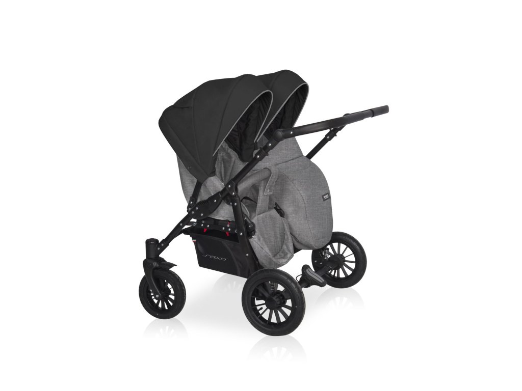 Děti jsou umístěny vedle sebe, takže SAXO se snadno řídí a snadno narazí na obrubník, i když jsou uvnitř dvě děti. Velká nafukovací kola a skvělá tlumitelnost zajišťují, že kočárek je dokonale ovládán po jakémkoli povrchu, ať už jde o rovnou promenádu, štěrkovou cestu nebo lesní stezku. Také pro něj žádná sezóna není děsivá.
