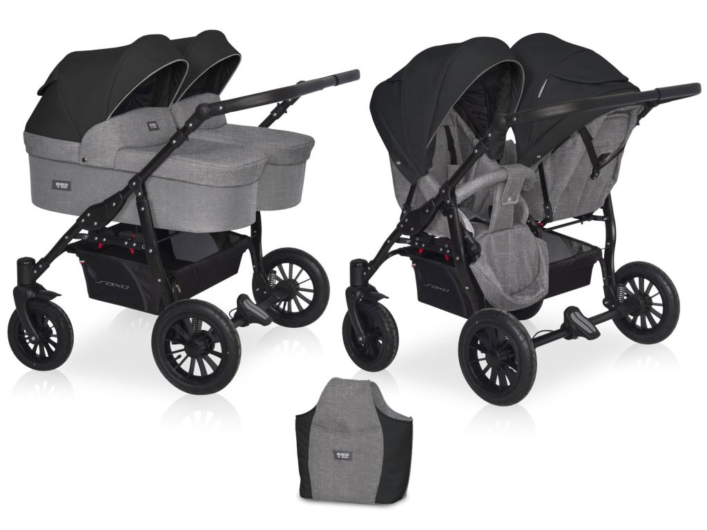 SAXO 2-v-1 dvojkočárek od RIKO BASIC je ekonomickým řešením pro ty z vás, kteří měli dvojnásobné štěstí. Navzdory atraktivní ceně je kočárek SAXO twin plně funkční 2v1. Sada obsahuje 2 přenosné lehátka a 2 sedačky pro kočárek, stejně jako praktickou tašku připevněnou na rukojeti kočárku.