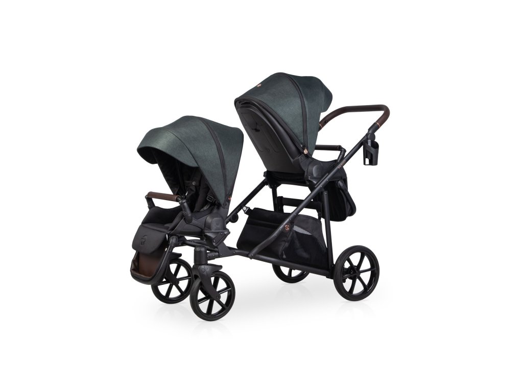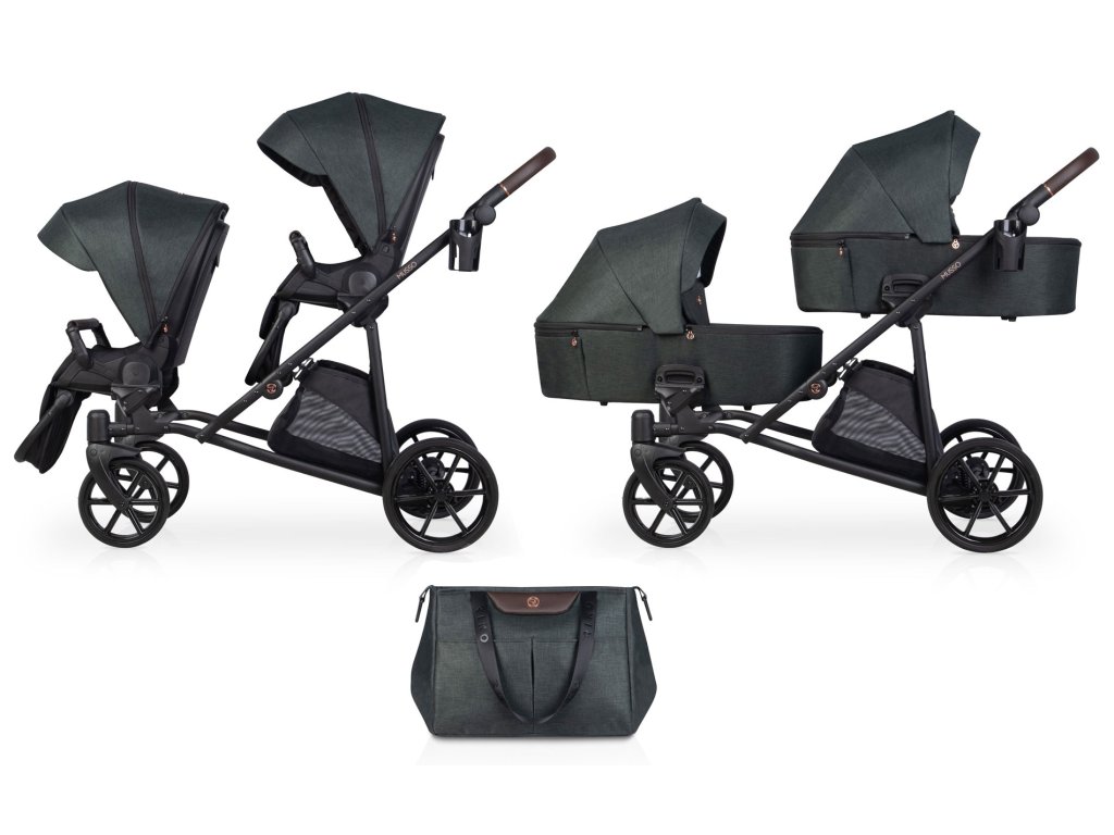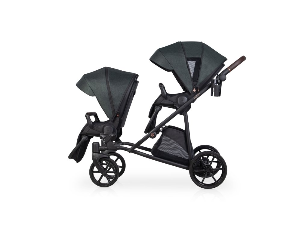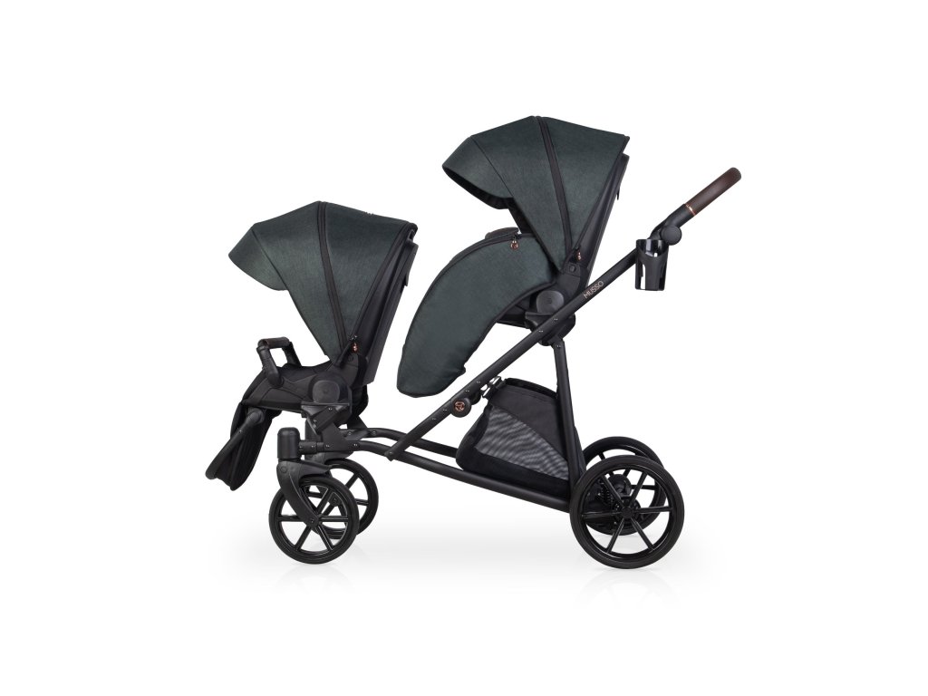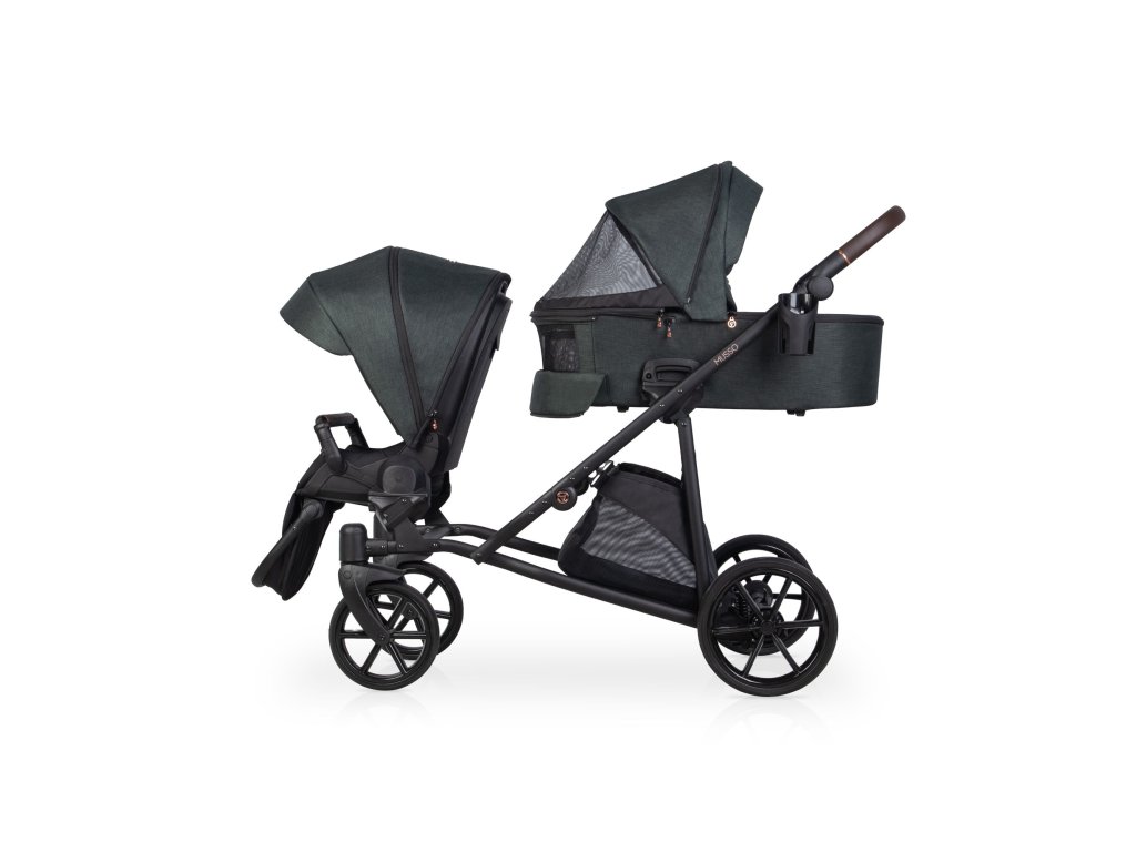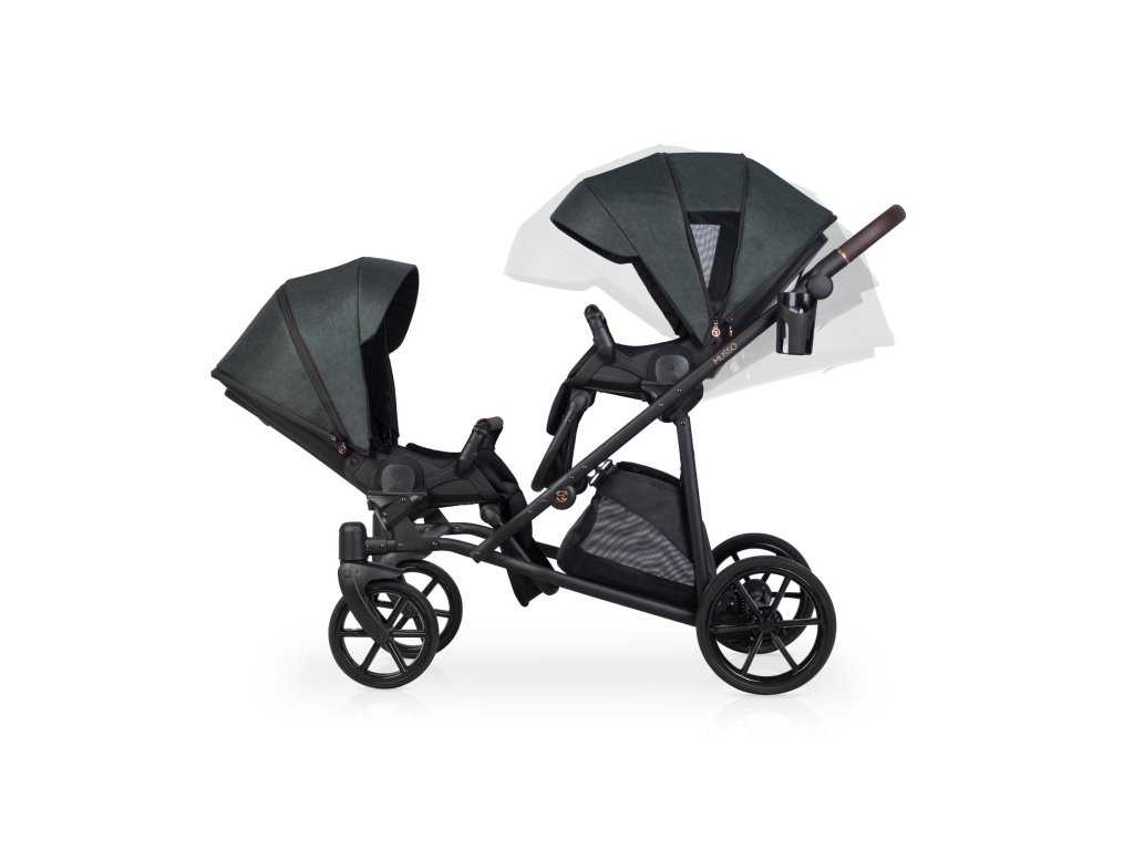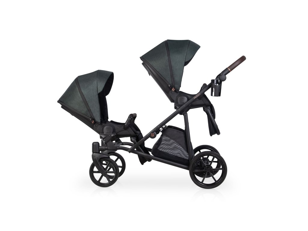 Kočárek pro dvojčata nebo děti rok co rok MUSSO by RIKO - pro dvě děti Společnost RIKO je jedním z předních výrobců kočárků v Evropě. Více než 20 let zkušeností s výrobou kočárků vede ke stále modernějším a lepším výrobkům. V roce 2024 prošla značka RIKO kompletní metamorfózou, když začala vyrábět prémiové kočárky z nejkvalitnějších materiálů a v nejvyšším standardu zpracování, který je na trhu k dispozici. Výrobky jsou moderní a funkční a jejich kvalita je zaručena vlastními stroji na testování odolnosti a zkušeným týmem kontrolorů kvality. Kočárek MUSSO pro dvě děti od společnosti RIKO může být buď kočárkem pro dvojčata, nebo pro dvě děti různého věku až do hmotnosti 22 kg. Základní verze je rám se dvěma sedačkami kočárku určený pro děti od 6 měsíců do 22 kg. Navíc lze dokoupit jednu nebo dvě korbičky a vytvořit tak multifunkční kočárek 2 v 1 pro dvojčata (se dvěma korbičkami a dvěma sedadly) nebo pro děti od jednoho roku (s jednou korbičkou a jedním sedadlem). Rozšířením sady o jednu nebo dvě autosedačky RIKO COSMO by AVIONAUT získáte kočárek 3 v 1. Díky možnosti použití univerzálních adaptérů na autosedačky pro děti ve výškové skupině 40-87 cm lze do kočárku MUSSO instalovat autosedačky jiných známých značek s univerzálními klipy tzv. Tandemový kočárek RIKO MUSSO umožňuje až 16 různých konfigurací kočárkové sedačky, korbičky a autosedačky. Obě autosedačky je možné umístit po i proti směru jízdy, stejně jako po i proti směru jízdy. RIKO MUSSO je jedním z mála kočárků na trhu, který také umožňuje libovolnou konfiguraci kombinace jedné autosedačky s jednou autosedačkou, včetně možnosti montáže autosedačky na přední modul po směru jízdy, zatímco autosedačka je namontována na zadní modul. Na rámu kočárku lze samozřejmě současně vozit dvě korbičky nebo dvě autosedačky. Volitelně lze kočárek MUSSO vybavit také adaptéry na nánožníky, které dále zvyšují jeho funkčnost a pohodlí. Adaptéry umožňují zvětšit vzdálenost mezi jednotlivými moduly, což se bude hodit zejména při použití verze se dvěma korbičkami nebo dvěma autosedačkami. U takových kombinací se použitím posilovacích adaptérů na zadním modulu zvýší světlá výška a zajistí pohodlnější přístup k dětem. Kočárek RIKO MUSSO pro dvě děti lze složit společně s oběma sedačkami do kompaktní velikosti pro tento typ kočárku. Hmotnost kočárku také není pro dvojitý tandemový kočárek vysoká. Samotný rám včetně kol váží pouhých 9,5 kg, což je vynikající hodnota. Díky "sendvičovým" skládacím sedačkám a plochému skládacímu korbičce se vám kočárek vejde do kufru auta. Gondoly kočárku RIKO MUSSO se liší pro přední a zadní modul. Při výběru verze kočárku s jednou korbičkou uveďte v objednávce, zda si vybíráte korbičku pro přední (spodní) nebo zadní (horní) modul. Nosné korby mají odlišné uspořádání adaptérů, takže je možný větší počet konfigurací kočárku. Díky dvěma velkým větracím panelům jsou nosítka ideální pro teplé letní dny, kdy umožňují cirkulaci vzduchu. Přední větrací panel se síťkou bude pro vaše dítě fungovat také jako okno. Oba panely jsou pevně uzavíratelné pomocí zipů, takže nosítko je celoroční. Součástí základní verze kočárku je rám s koly a košíkem, dvě autosedačky, dva nánožníky, dvě dešťové fólie, dvě moskytiéry, dvě bezpečnostní zábrany a velká stylová taška s upevňovacím systémem na madlo kočárku. Autosedačka RIKO COSMO je určena pro kočárky RIKO a je vyráběna systémem Dual Branding renomovaného výrobce autosedaček Avionaut. Autosedačka má nové evropské schválení R129 platné od září 2023 a je k dispozici také ve verzi I-SIZE se základnou ISOFIX DOCK 2 od společnosti Avionaut. Díky možnosti zakoupení univerzálních adaptérů lze na rám kočárku připevnit i autosedačky jiných značek, pokud jsou vybaveny univerzálními klipy typu "Maxi Cosi" (podrobnosti si vyžádejte u svého prodejce). TECHNICKÉ SPECIFIKACE: - multifunkční kočárek pro děti od narození do 22 kg splňující normy EN 1888-1:2018 a EN 1888-2:2018, - tandemový kočárek určený pro dvojčata nebo dvě děti různého věku do 22 kg, - dvě plnohodnotné sedačky s obousměrným uchycením, - možnost složení kočárku společně s oběma sedačkami, - možnost montáže jedné nebo dvou korbiček pro děti do 9 kg, - možnost montáže jedné nebo dvou autosedaček RIKO COSMO by AVIONAUT nebo jiných autosedaček pro skupinu 40-87 cm, které mají tzv. univerzální klipy typu "maxi Cosi". univerzální maxi cosi přípojky - 16 různých konfigurací (podle toho, kterou verzi si vyberete) - výškově nastavitelné madlo pro přenášení - parkovací brzda ovládaná stisknutím horní části - plochá skládací korbička - větrací panel v korbičce - bavlněné polstrování v korbičce - pětibodové bezpečnostní pásy s magnetickou sponou - kvalitní kůže na madlo a popruh pro přenášení - houpací popruh pro přenášení, - systém tlumení nárazů na všech kolech, - nastavitelná tvrdost odpružení zadních kol, - odlehčená kola s gelovými pneumatikami (polyuretan), - košík pod kočárkem, - taška připevněná na rukojeti, - otočná přední kola s aretací pro přímou jízdu, - čtyřstupňové nastavení opěradla od pololehu do úplného sedu, - prodlužovací sluneční stříška na sedadle kočárku, - pláštěnka, - moskytiéra, - nánožník. Rozměry rámu: rozložený rám s koly: 119 x 102 x 60 cm Folded frame with wheels: Složený rám se sedadlem a koly: 104 x 49 x 60 cm: 104 x 57 x 60 cm Rozsah nastavení rukojeti (od země): 60 - 109 cm Rozměry sedadla: 60 - 109 cm Rozm