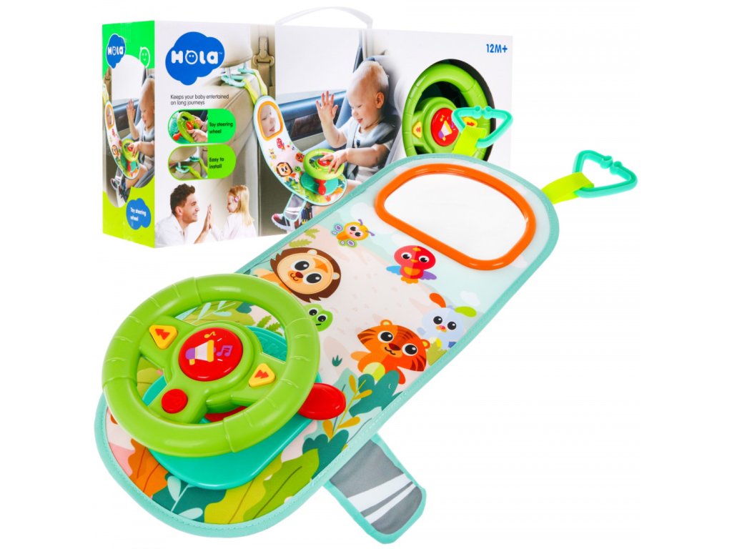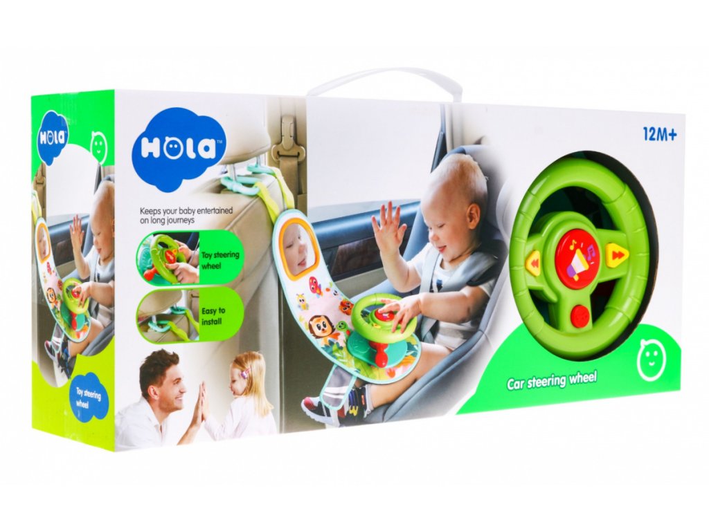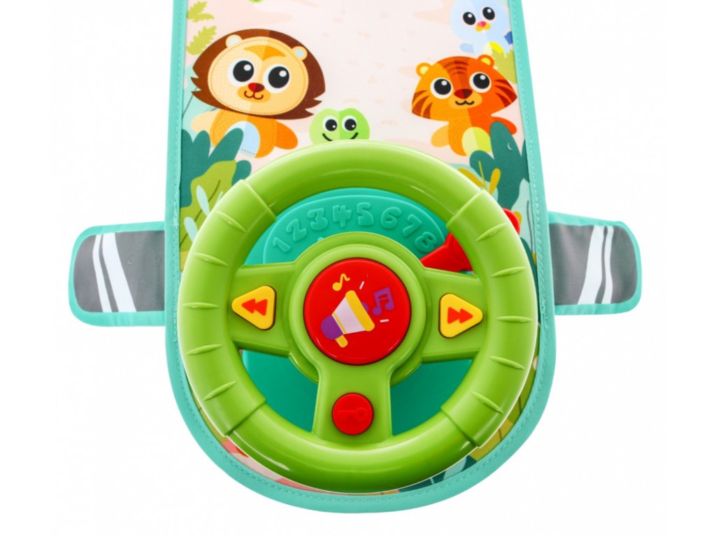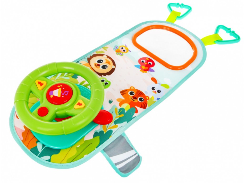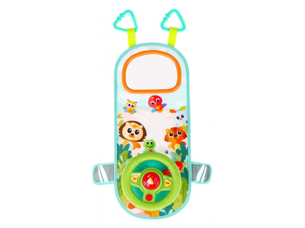 | An interactive set for children from 12 months of age will make your toddler's travel time more pleasant. Your treasure will feel like a real driver and will be able to imitate the parent's movements while driving. Sounds and lights stimulate baby's sensory development. The young driver's kit makes the sound of blinkers, vehicle opening, starting and driving, there is also the sound of a horn and a melody. Lights flash on buttons with blinkers. The toy has a volume control function. Easily attaches to the seat headrest. There is a large mirror at the top of the kit. The toy is powered by 4 x AA 1.5V batteries which are not included in the set. |