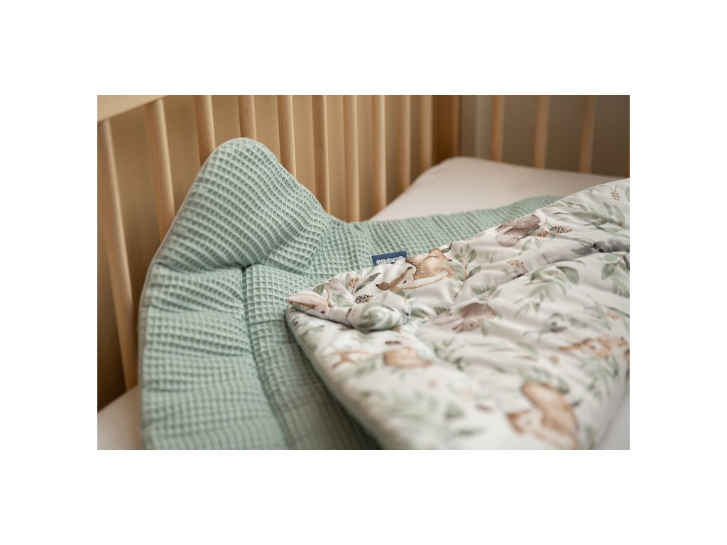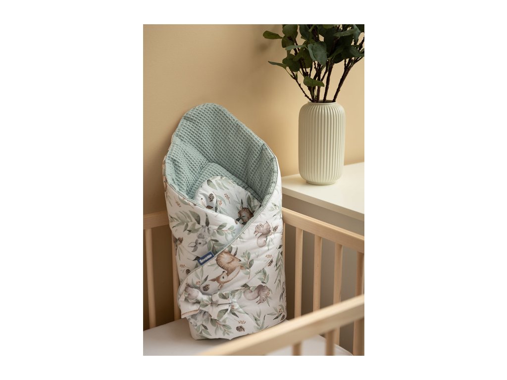 Oboustranný dětský kužel Wafel byl vytvořen pro novorozence a kojence. Velcro upevnění vám umožní pohodlně držet dítě při krmení a spánku. Po rozvinutí lze kužel úspěšně použít jako přikrývku pro dětskou postýlku nebo kočárek. Může být také použit jako hrací podložka. Je vyroben ze 100% bavlny. Na jedné straně má potisk, na druhé straně strukturu destičky. Výplň kužele je načechraná silikonová netkaná textilie.