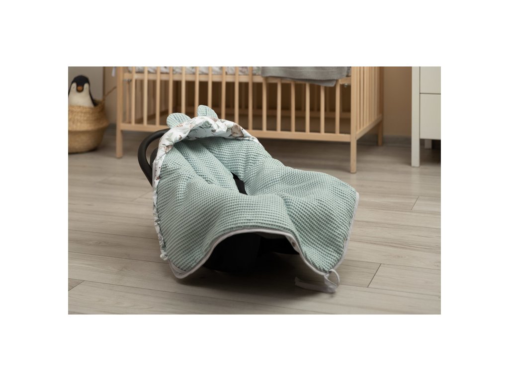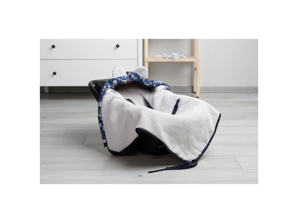Otulacz został stworzony z myślą o najmłodszych dzieciach. Jest wygodny, a do tego bardzo praktyczny podczas podróży. Jest to alternatywa dla ciepłej odzieży dziecięcej. Dzięki otworom na pasy 3-punktowe jest bardzo funkcjonalny – nie trzeba rozpinać pasów, aby odkryć dziecko w nosidełku. Otulacz posiada regulowany kapturek z uroczymi uszami. Uszyty jest ze 100% bawełny