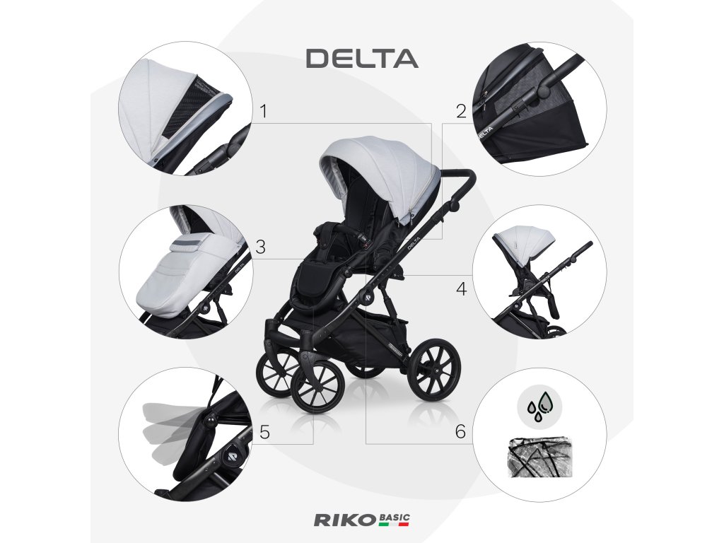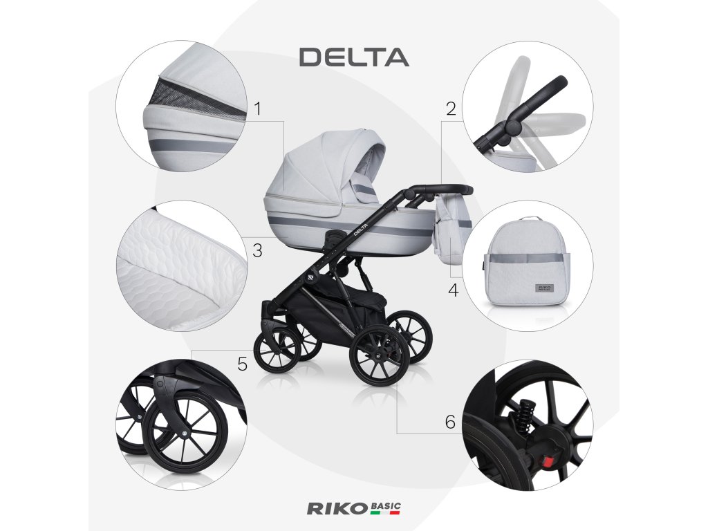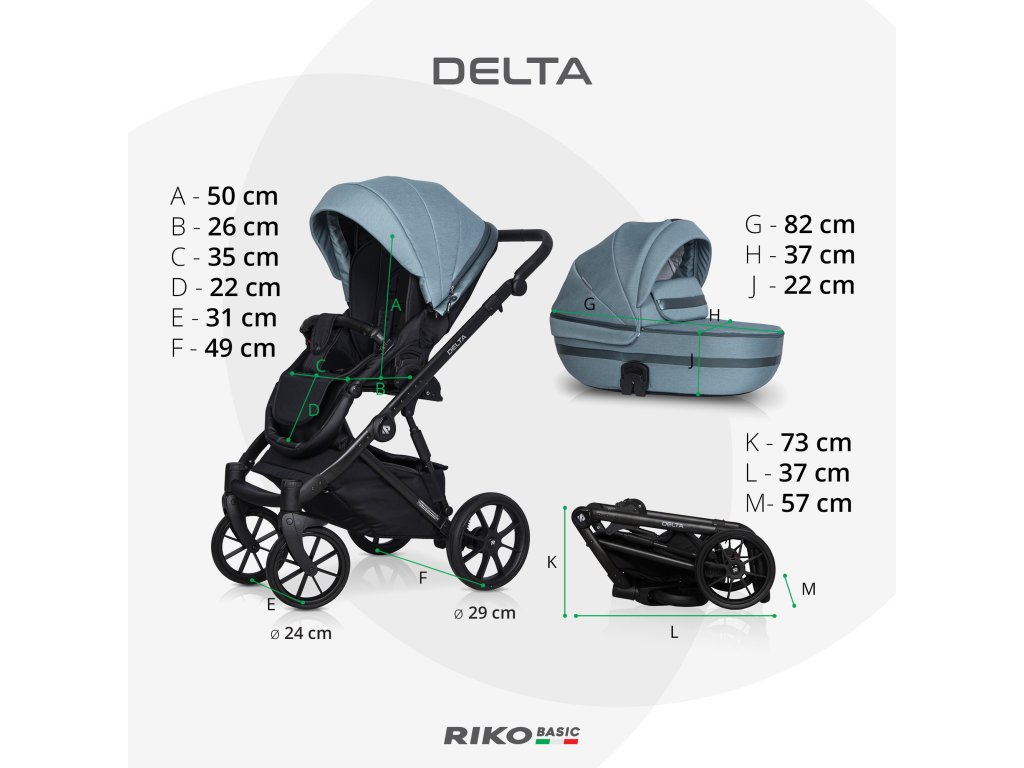 Wózek dziecięcy 2w1 lub 3w1 DELTA marki RIKO BASIC W odpowiedzi na potrzeby klientów i zmieniające się trendy zakupowe związane z rosnącą popularnością zakupów przez Internet, renomowany Polski producent wózków dziecięcych RIKO wprowadził nową podmarkę o nazwie RIKO BASIC. Jest to seria wózków dziecięcych 2w1 i 3w1 wyprodukowanych w Polsce i przeznaczonych głównie na potrzeby sprzedaży wysyłkowej e-commerce. Wózki z serii RIKO BASIC są tańsze od standardowej oferty marki RIKO dzięki zastosowaniu niższych marż hurtowych i detalicznych. W przeciwieństwie do standardowej oferty, wózki dziecięce RIKO BASIC dostępne są niemalże „od ręki”, co jest przecież tak ważne dla Państwa, gdy decydujecie się na zakup przez Internet. Regularną dostępność i szybki czas realizacji zamówień udało się uzyskać dzięki optymalizacji procesu produkcyjnego. Nie szukaj wózków RIKO BASIC w salonach sprzedaży i pamiętaj, że dokonując zakupu przez Internet masz prawo zwrotu nieużywanego wózka w terminie 14 dni bez podawania przyczyny. Zakup przez Internet jest również bezpieczniejszy ze względu na elektroniczny zapis historii zamówienia. Wózek wielofunkcyjny DELTA marki RIKO BASIC to nowoczesny wózek dziecięcy charakteryzujący się wysoką jakością wykonania oraz doskonałą amortyzacją. DELTA posiada aż 3 systemy amortyzacji, z czego 2 posiadają mechanizm umożliwiający regulację twardości. Oprócz standardowej amortyzacji kół przednich i kół tylnych, wózek posiada również dodatkową amortyzację gondoli i siedziska. Posiada ona 2 ustawienia twardości: miękkie dedykowane dla gondoli, gdy Twoje dziecko jest jeszcze malutkie i waży do 9 kg oraz twardsze dla siedziska spacerowego przeznaczone dla dzieci o wadze do 22 kg. Koła w modelu DELTA posiadają lekkie elastyczne opony z poliuretanu. Poliuretan jest najlepszym tworzywem stosowanym w produkcji opon do wózków dziecięcych. Jest lekki i odporny na różnice temperatur. Dzięki bardzo dużej odporności na ścieranie opony wystarczą na okres dwukrotnie dłuższy niż opony wykonane z gumy i trzykrotnie dłuższy niż tak zwane opony piankowe. Duża gondola z tworzywa sztucznego doskonale sprawdzi się zarówno latem jak i zimą. Posiada system wentylacji oraz regulację oparcia, która doskonale sprawdzi się na przykład gdy zjeżdżasz z wzniesienia i chcesz uniknąć sytuacji, w której główka dziecka jest poniżej linii tułowia lub gdy u dziecka występuje efekt ulewania po posiłku. Wnętrze gondoli oraz materacyk wyściełane są wysokiej jakości bawełną. Materacyk wykonany jest z włókien kokosowych, które charakteryzują się właściwą twardością oraz zapobiegają rozwojowi grzybów i pleśni jednocześnie zapewniając optymalną wentylację. Siedzisko jest przekładane, więc gdy dziecko jest jeszcze malutkie i często zasypia w wózku, możesz ustawić je przodem do siebie i mieć ciągłą kontrolę nad swoim maleństwem. Gdy już trochę podrośnie i będzie bardziej ciekawe świata, obróć siedzisko przodem do kierunku jazdy. Dodatkowy komfort zapewni specjalna wkładka z miękkiej dzianiny. Na chłodne dni producent zadbał o ciepły pokrowiec na nóżki. Duży zamykany koszt na zakupy pod wózkiem i praktyczna torba zawieszana na rączce pomieszczą wszystkie niezbędne podczas spaceru drobiazgi. Nad bezpieczeństwem dziecka czuwają 5-punktowe pasy bezpieczeństwa. Wózek posiada raport z godności z normą EN 1888-1-2:2018 i przeszedł szereg dodatkowych testów wytrzymałościowych. Mimo atrakcyjnej ceny, masz pewność, że kupujesz produkt bezpieczny od renomowanego polskiego producenta. Do wózka możesz zamontować fotelik samochodowy RIKO BASIC za pomocą dołączonych do fotelika adapterów lub zakupić osobno adaptery uniwersalne do fotelików samochodowych innych marek. SPECYFIKACJA WóZKA: - dodatkowa amortyzacja gondoli i siedziska zapewniająca maksymalny komfort, - nowoczesny wózek wielofunkcyjny z możliwością montażu fotelika samochodowego, - lekki aluminiowy stelaż, - duża wygodna gondola z bawełnianą wyściółką i regulacją oparcia, - materacyk kokosowy, - siedzisko w wersji spacerowej z możliwością montażu przodem i tyłem do kierunku jazdy, - regulacja podnóżka, - regulacja oparcia siedziska łącznie z pozycją leżącą, - regulacja budki siedziska, - pokrowiec na nóżki dziecka, - 5-punktowe pasy bezpieczeństwa, - dodatkowy materacyk na siedzisku wykonany z miękkiej dzianiny, - dodatkowy pas krokowy mocowany do barierki bezpieczeństwa, - barierka bezpieczeństwa z możliwością odchylenia na bok, - barierka obszyta praktyczną skórą ekologiczną, - prowadnica wózka obszyta praktyczną skórą ekologiczną, - regulacja wysokości prowadnicy, - duży kosz na zakupy, - łatwy dostęp do kosza na zakupy, - duży praktyczny plecak mocowany na prowadnicy wózka, - pokrowiec przeciwdeszczowy pasujący zarówno do gondoli jak i do siedziska, - moskitiera do gondoli, - innowacyjne łożyskowane koła z oponami z poliuretanu, - system regulacji twardości zawieszenia HDA (Heavy Duty Absorption), - system szybkiego demontażu przednich kół QRS (Quick Release System), - przednie koła samonastawne z możliwością blokady do jazdy prosto, - centralny hamulec postojowy. DANE TECHNICZNE: Rozłożony stelaż z kołami: 59 x 122 x 93 cm Złożony stelaż z kołami: 59 x 86 x 37 cm Zakres regulacji rączki (od ziemi): 65-112 cm Wewnętrzny wymiar gondoli: 20 x 77 x 34 cm Szerokość siedziska: 31 cm Wysokość oparcia: 49 cm Głębokość siedziska: 25 cm Długość podnóżka: 22 cm Średnica kół (przód/tył): 24 / 29 cm Waga stelaż z kołami: 9,00 kg Gondola: 5,80 kg Siedzisko: 5,80 kg Fotelik samochodowy: 3,00 kgDoplňkové parametry