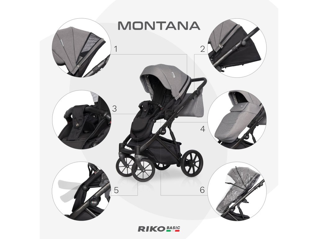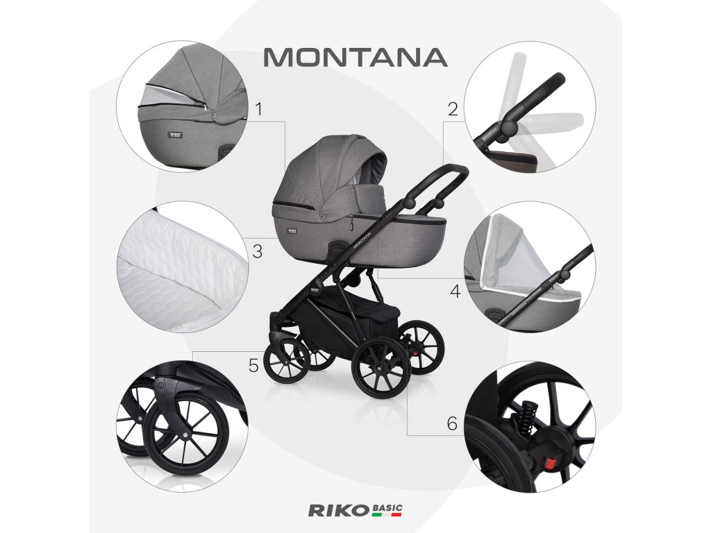 Riko Basic Montana 04 Onyx sada kočárku 3 v 1