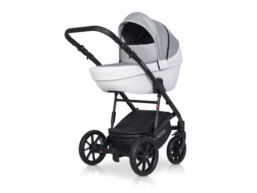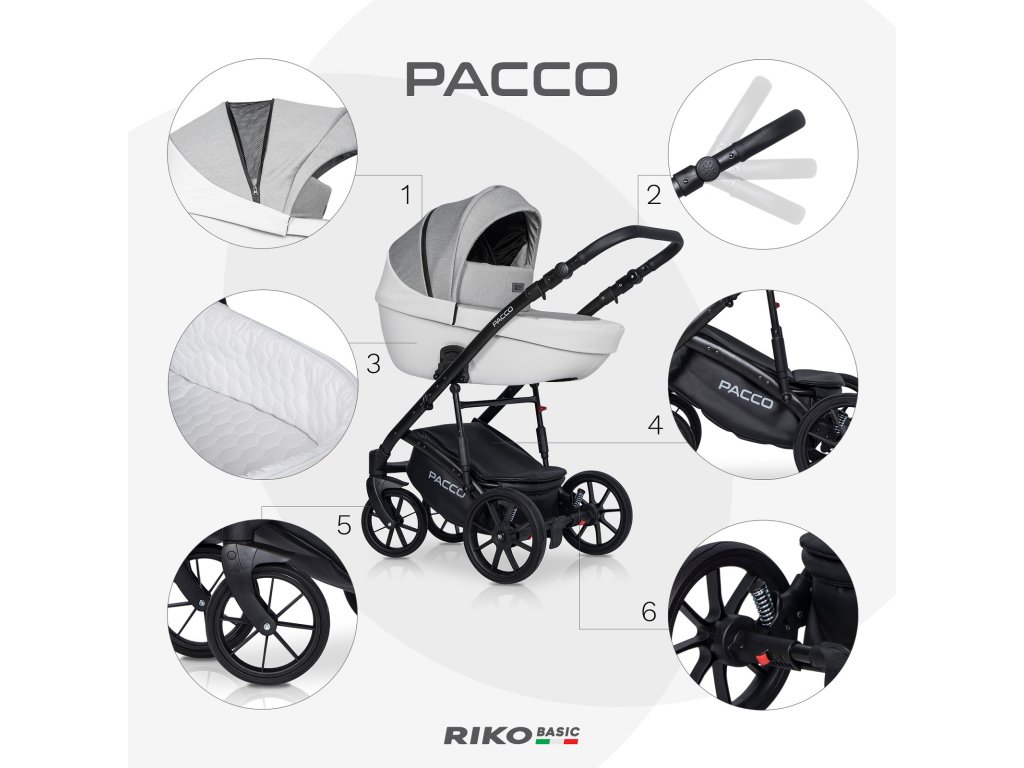 Wózek dziecięcy 2w1 lub 3w1 PACCO marki RIKO BASIC W odpowiedzi na potrzeby klientów i zmieniające się trendy zakupowe związane z rosnącą popularnością zakupów przez Internet, renomowany Polski producent wózków dziecięcych RIKO wprowadził nową podmarkę o nazwie RIKO BASIC. Jest to seria wózków dziecięcych 2w1 i 3w1 wyprodukowanych w Polsce i przeznaczonych głównie na potrzeby sprzedaży wysyłkowej e-commerce. Wózki z serii RIKO BASIC są tańsze od standardowej oferty marki RIKO dzięki zastosowaniu niższych marż hurtowych i detalicznych. W przeciwieństwie do standardowej oferty, wózki dziecięce RIKO BASIC dostępne są niemalże „od ręki”, co jest przecież tak ważne dla Państwa, gdy decydujecie się na zakup przez Internet. Regularną dostępność i szybki czas realizacji zamówień udało się uzyskać dzięki optymalizacji procesu produkcyjnego. Nie szukaj wózków RIKO BASIC w salonach sprzedaży i pamiętaj, że dokonując zakupu przez Internet masz prawo zwrotu nieużywanego wózka w terminie 14 dni bez podawania przyczyny. Zakup przez Internet jest również bezpieczniejszy ze względu na elektroniczny zapis historii zamówienia. Wózek wielofunkcyjny PACCO marki RIKO BASIC to nowoczesny wózek dziecięcy charakteryzujący się wysoką jakością wykonania oraz doskonałą amortyzacją. PACCO posiada aż 3 systemy amortyzacji, z czego 2 posiadają mechanizm umożliwiający regulację twardości. Oprócz standardowej amortyzacji kół przednich i kół tylnych, wózek posiada również dodatkową amortyzację gondoli i siedziska. Posiada ona 2 ustawienia twardości: miękkie dedykowane dla gondoli, gdy Twoje dziecko jest jeszcze malutkie i waży do 9 kg oraz twardsze dla siedziska spacerowego przeznaczone dla dzieci o wadze do 22 kg. Tapicerka wózka dziecięcego PACCO wykonana została z połączenia skóry ekologicznej i tkaniny melanżowej. Ich rozmieszczenie nie jest przypadkowe. Elementy narażone na zabrudzenia wykonane zostały z praktycznej i łatwej w czyszczeniu skóry ekologicznej, a elementy w strefie dostępu dziecka oraz budki i przykrycia z estetycznej i przyjemnej w dotyku tkaniny melanżowej oraz czarnej tkaniny typu Oxford. Koła w modelu PACCO posiadają lekkie elastyczne opony z poliuretanu. Poliuretan jest najlepszym tworzywem stosowanym w produkcji opon do wózków dziecięcych. Jest lekki i odporny na różnice temperatur. Dzięki bardzo dużej odporności na ścieranie opony wystarczą na okres dwukrotnie dłuższy niż opony wykonane z gumy i trzykrotnie dłuższy niż tak zwane opony piankowe. Duża gondola z tworzywa sztucznego doskonale sprawdzi się zarówno latem jak i zimą. Posiada system wentylacji oraz regulację oparcia, która doskonale sprawdzi się na przykład gdy zjeżdżasz z wzniesienia i chcesz uniknąć sytuacji, w której główka dziecka jest poniżej linii tułowia lub gdy u dziecka występuje efekt ulewania po posiłku. Wnętrze gondoli oraz materacyk wyściełane są wysokiej jakości bawełną. Materacyk wykonany jest z włókien kokosowych, które charakteryzują się właściwą twardością oraz zapobiegają rozwojowi grzybów i pleśni jednocześnie zapewniając optymalną wentylację. Siedzisko jest przekładane, więc gdy dziecko jest jeszcze malutkie i często zasypia w wózku, możesz ustawić je przodem do siebie i mieć ciągłą kontrolę nad swoim maleństwem. Gdy już trochę podrośnie i będzie bardziej ciekawe świata, obróć siedzisko przodem do kierunku jazdy. Dodatkowy komfort zapewni specjalna wkładka z miękkiej dzianiny. Na chłodne dni producent zadbał o ciepły pokrowiec na nóżki. Duży zamykany koszt na zakupy pod wózkiem i praktyczna torba zawieszana na rączce pomieszczą wszystkie niezbędne podczas spaceru drobiazgi. Nad bezpieczeństwem dziecka czuwają 5-punktowe pasy bezpieczeństwa. Wózek posiada raport z godności z normą EN 1888-1-2:2018 i przeszedł szereg dodatkowych testów wytrzymałościowych. Mimo atrakcyjnej ceny, masz pewność, że kupujesz produkt bezpieczny od renomowanego polskiego producenta. Do wózka możesz zamontować fotelik samochodowy RIKO BASIC za pomocą dołączonych do fotelika adapterów lub zakupić osobno adaptery uniwersalne do fotelików samochodowych innych marek. SPECYFIKACJA WóZKA: - dodatkowa amortyzacja gondoli i siedziska zapewniająca maksymalny komfort, - nowoczesny wózek wielofunkcyjny z możliwością montażu fotelika samochodowego, - lekki aluminiowy stelaż, - duża wygodna gondola z bawełnianą wyściółką i regulacją oparcia, - siedzisko w wersji spacerowej z możliwością montażu przodem i tyłem do kierunku jazdy, - regulacja podnóżka, - regulacja oparcia siedziska łącznie z pozycją leżącą, - regulacja budki siedziska, - pokrowiec na nóżki dziecka, - 5-punktowe pasy bezpieczeństwa, - dodatkowy pas krokowy mocowany do barierki bezpieczeństwa, - barierka bezpieczeństwa z możliwością odchylenia na bok, - barierka obszyta praktyczną skórą ekologiczną, - prowadnica wózka obszyta praktyczną skórą ekologiczną, - regulacja wysokości prowadnicy, - duży kosz na zakupy, - łatwy dostęp do kosza na zakupy, - duży praktyczny plecak mocowany na prowadnicy wózka, - pokrowiec przeciwdeszczowy pasujący zarówno do gondoli jak i do siedziska, - moskitiera do gondoli, - innowacyjne łożyskowane koła z oponami z poliuretanu, - system regulacji twardości zawieszenia HDA (Heavy Duty Absorption), - system szybkiego demontażu przednich kół QRS (Quick Release System), - przednie koła samonastawne z możliwością blokady do jazdy prosto, - centralny hamulec postojowy. DANE TECHNICZNE: Rozłożony stelaż z kołami: 58 x 117 x 104 cm Złożony stelaż z kołami: 58 x 87 x 37 cm Zakres regulacji rączki (od ziemi): 74-117 cm Wewnętrzny wymiar gondoli: 20 x 77 x 34 cm Szerokość siedziska: 31 cm Wysokość oparcia: 49 cm Głębokość siedziska: 25 cm Długość podnóżka: 22 cm Średnic